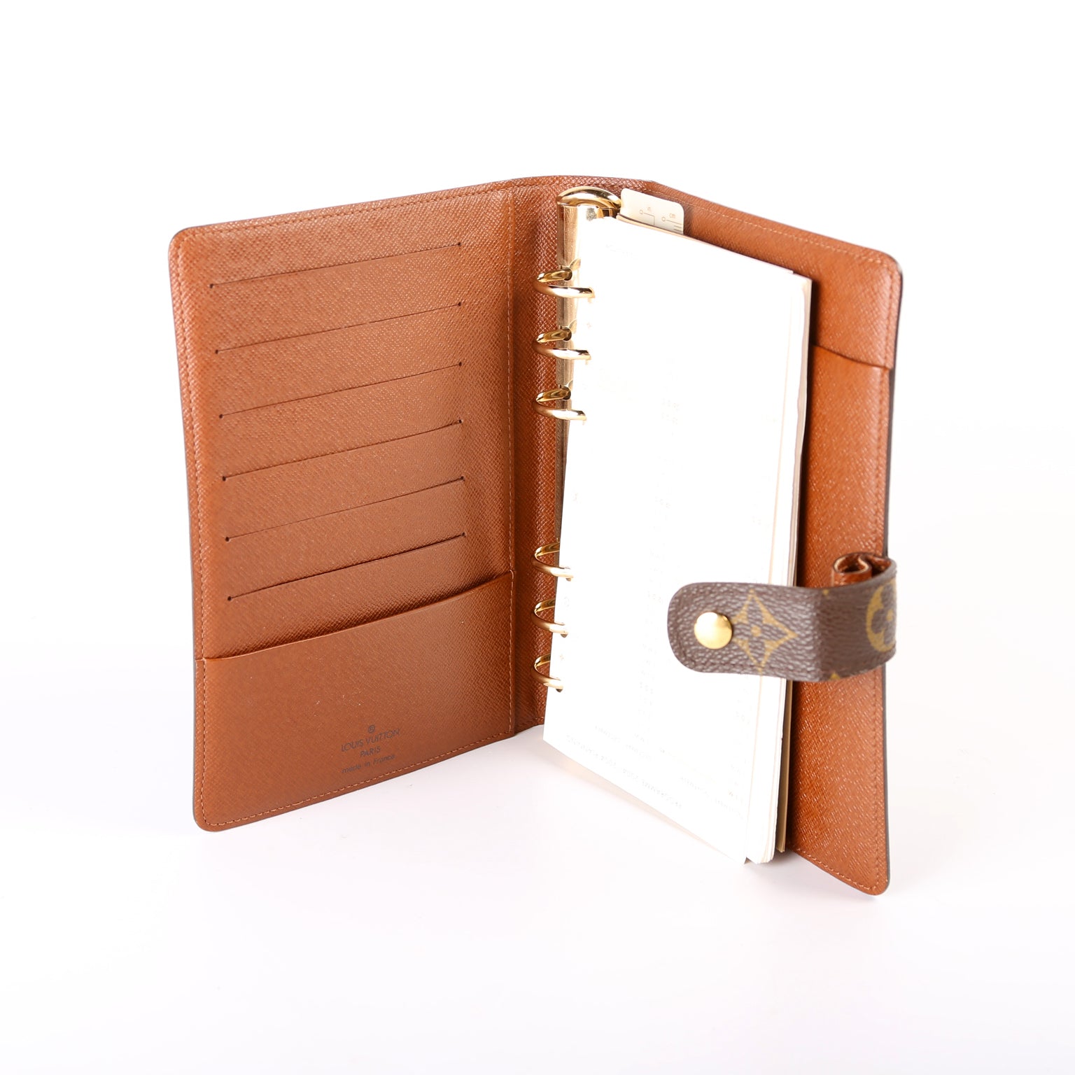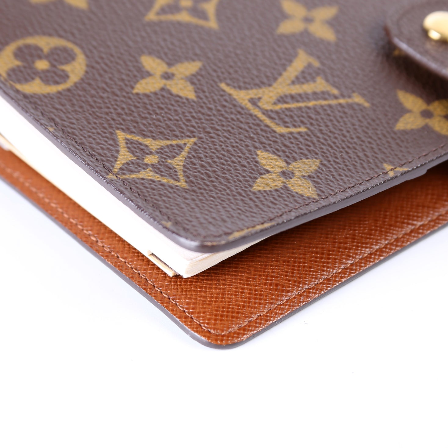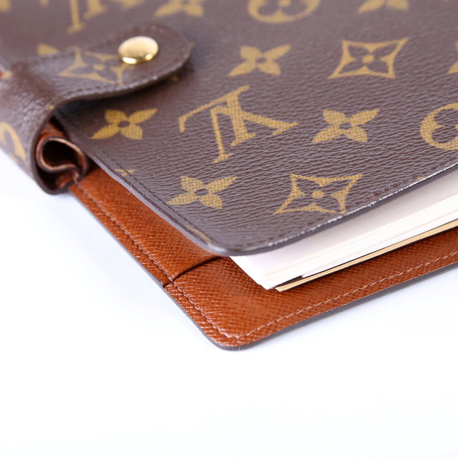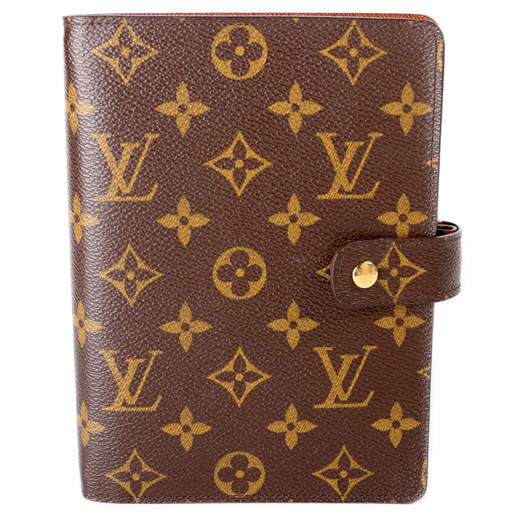 This pre-owned Louis Vuitton Agenda Medium Ring is guaranteed 100% authentic. The exterior is in the classic monogram canvas.