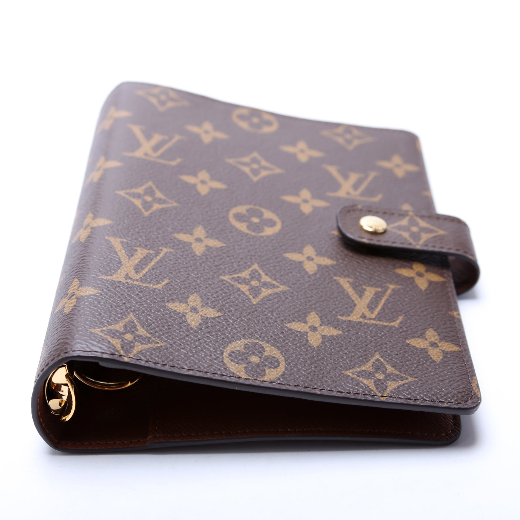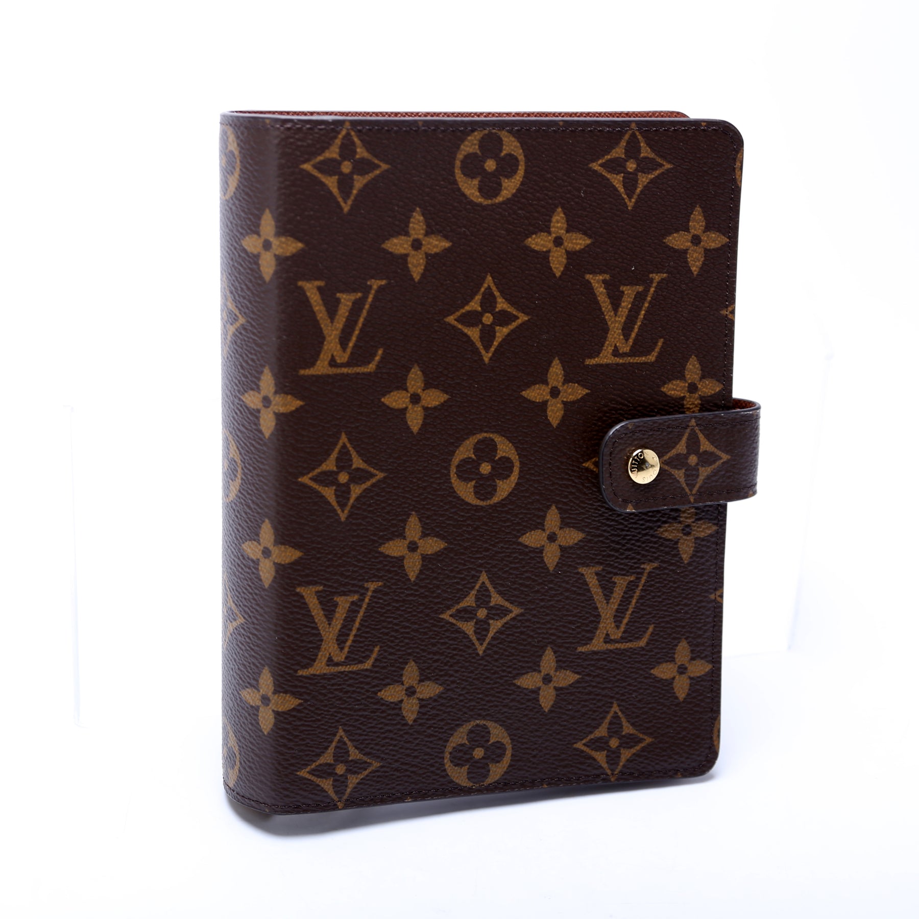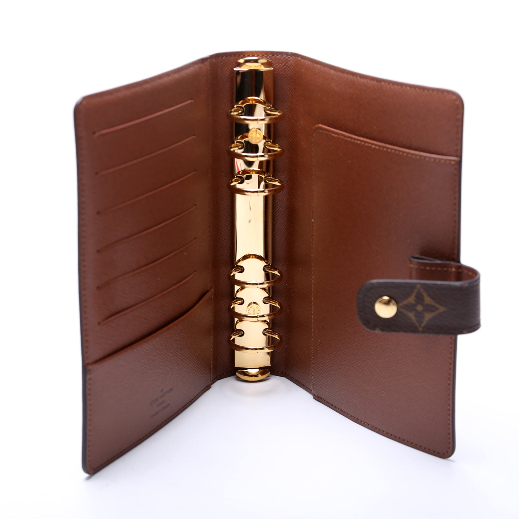 This pre-owned Louis Vuitton Agenda Medium Ring is guaranteed 100% authentic. The exterior is in the classic monogram canvas.