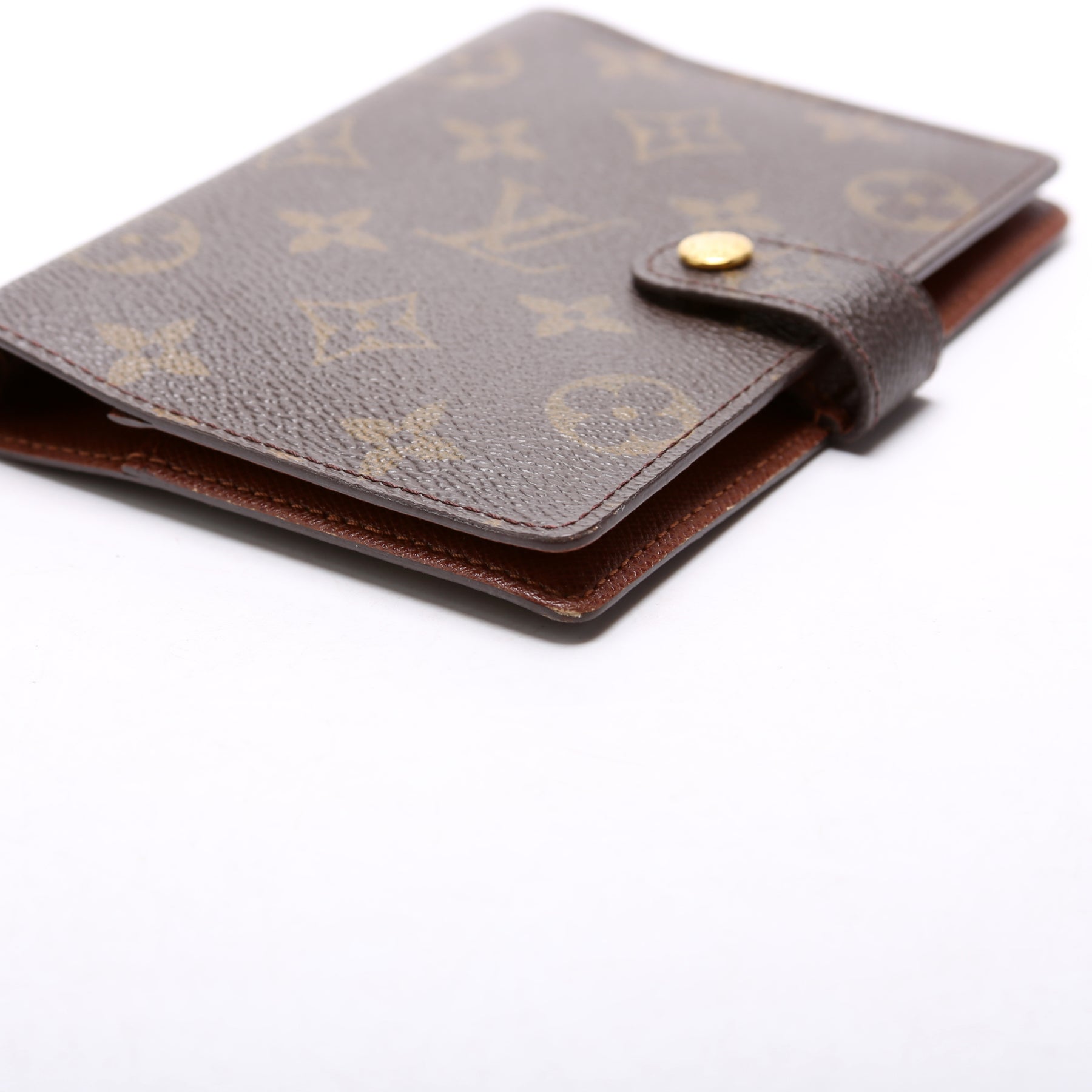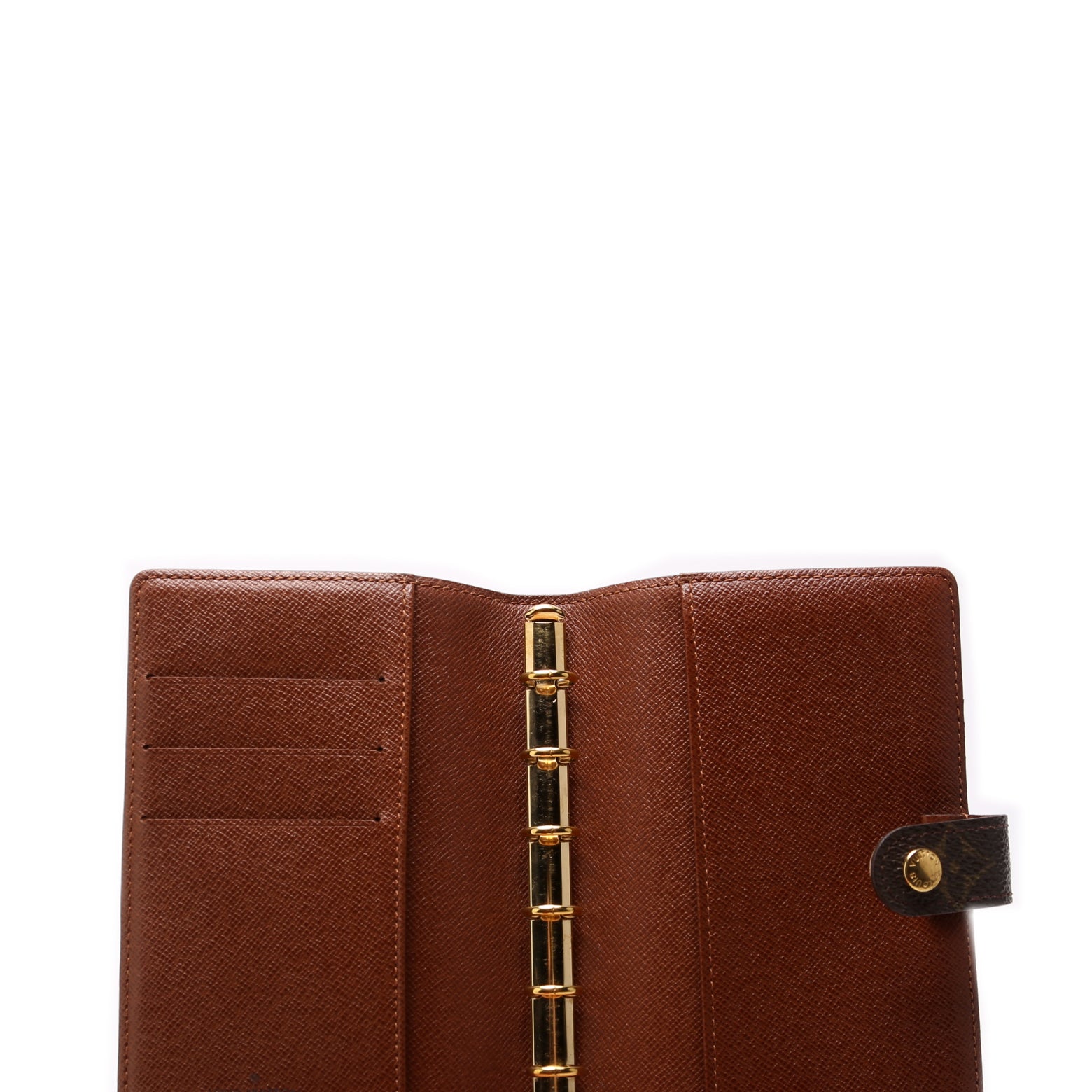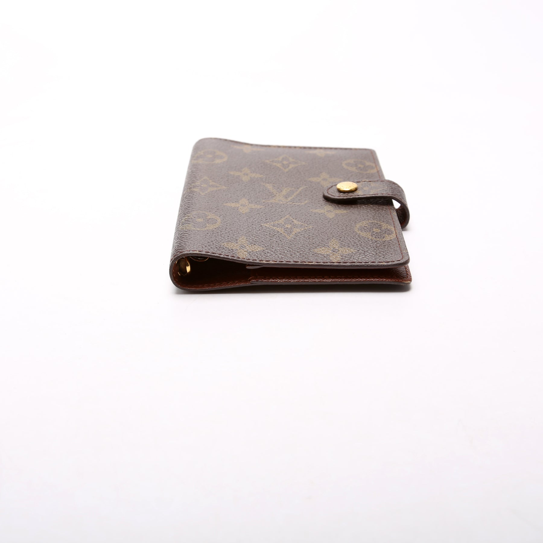 This pre-owned Louis Vuitton Agenda Small Ring is guaranteed 100% authentic. The exterior is in the classic Monogram coated canvas.