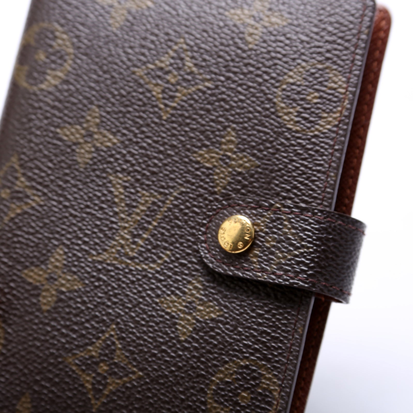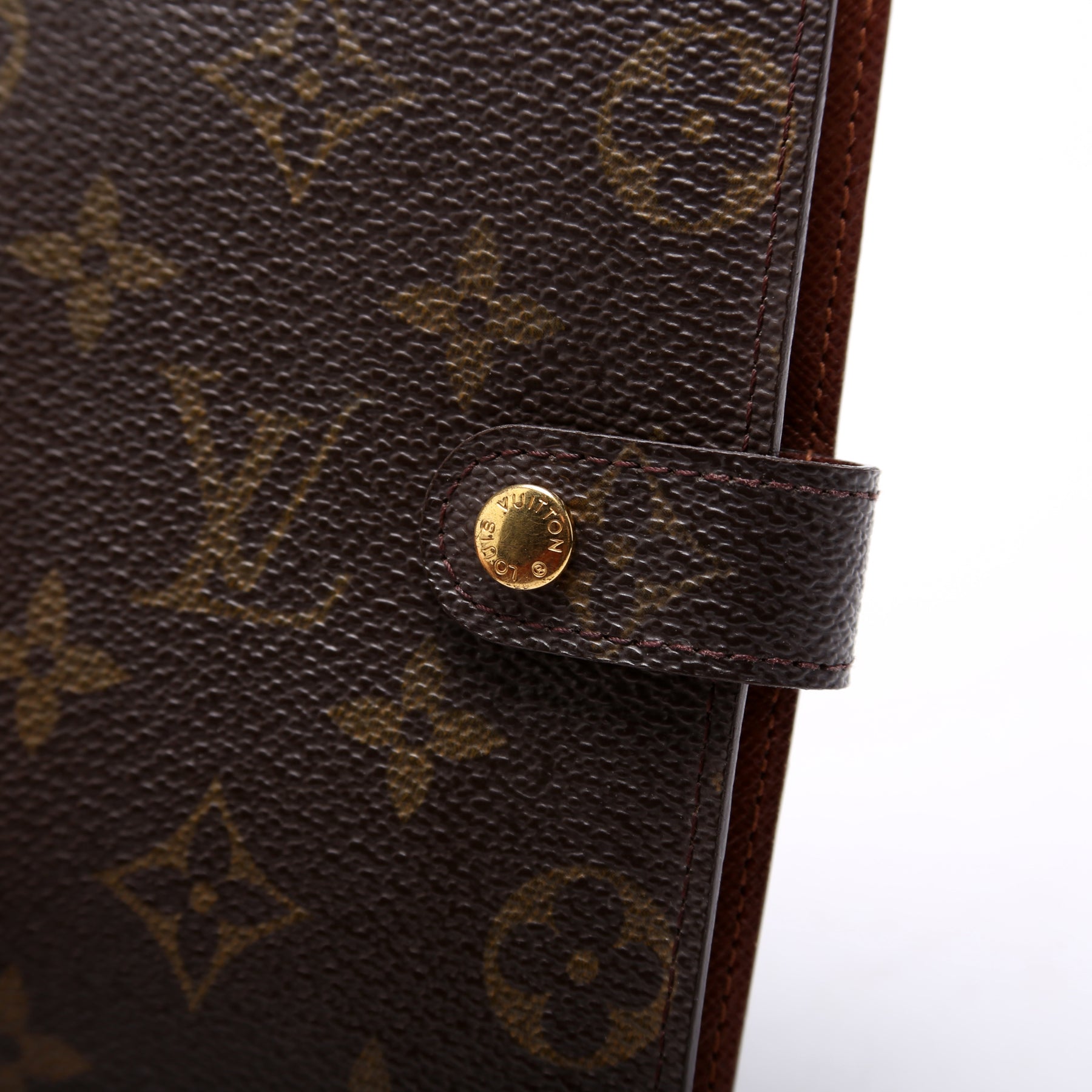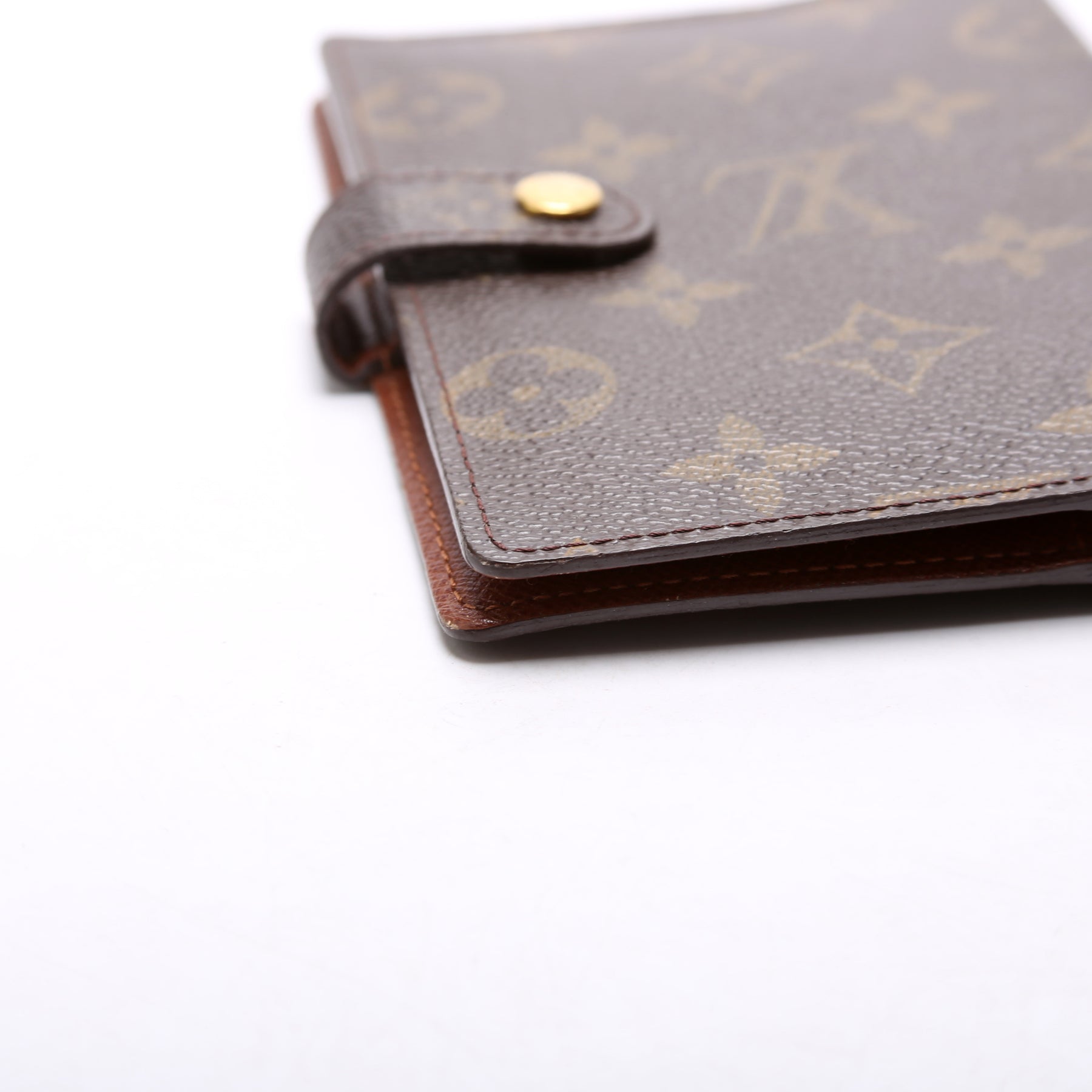 This pre-owned Louis Vuitton Agenda Small Ring is guaranteed 100% authentic. The exterior is in the classic Monogram coated canvas.