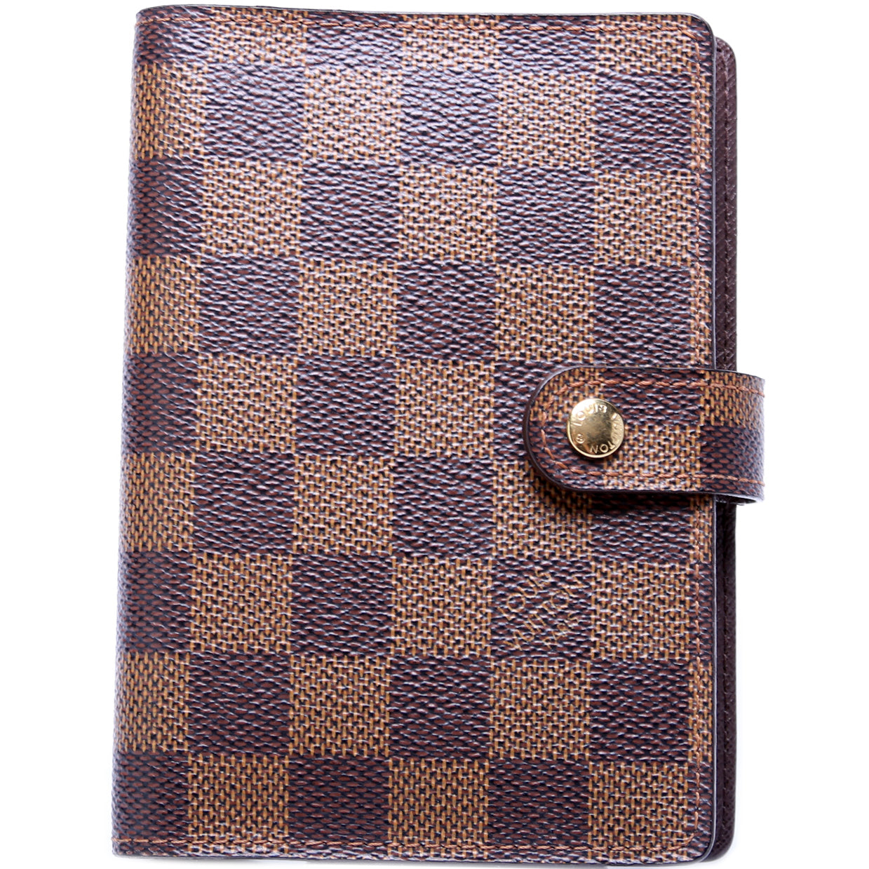 This pre-owned Louis Vuitton Agenda Small Ring is guaranteed 100% authentic. The exterior is in the classic Monogram coated canvas.