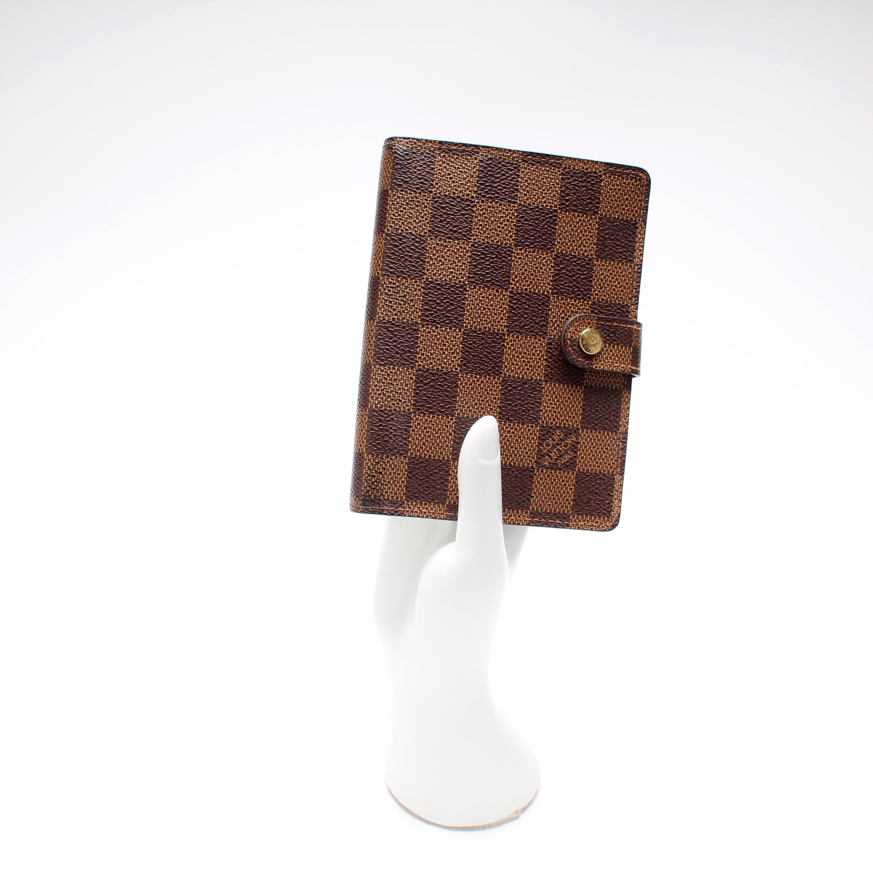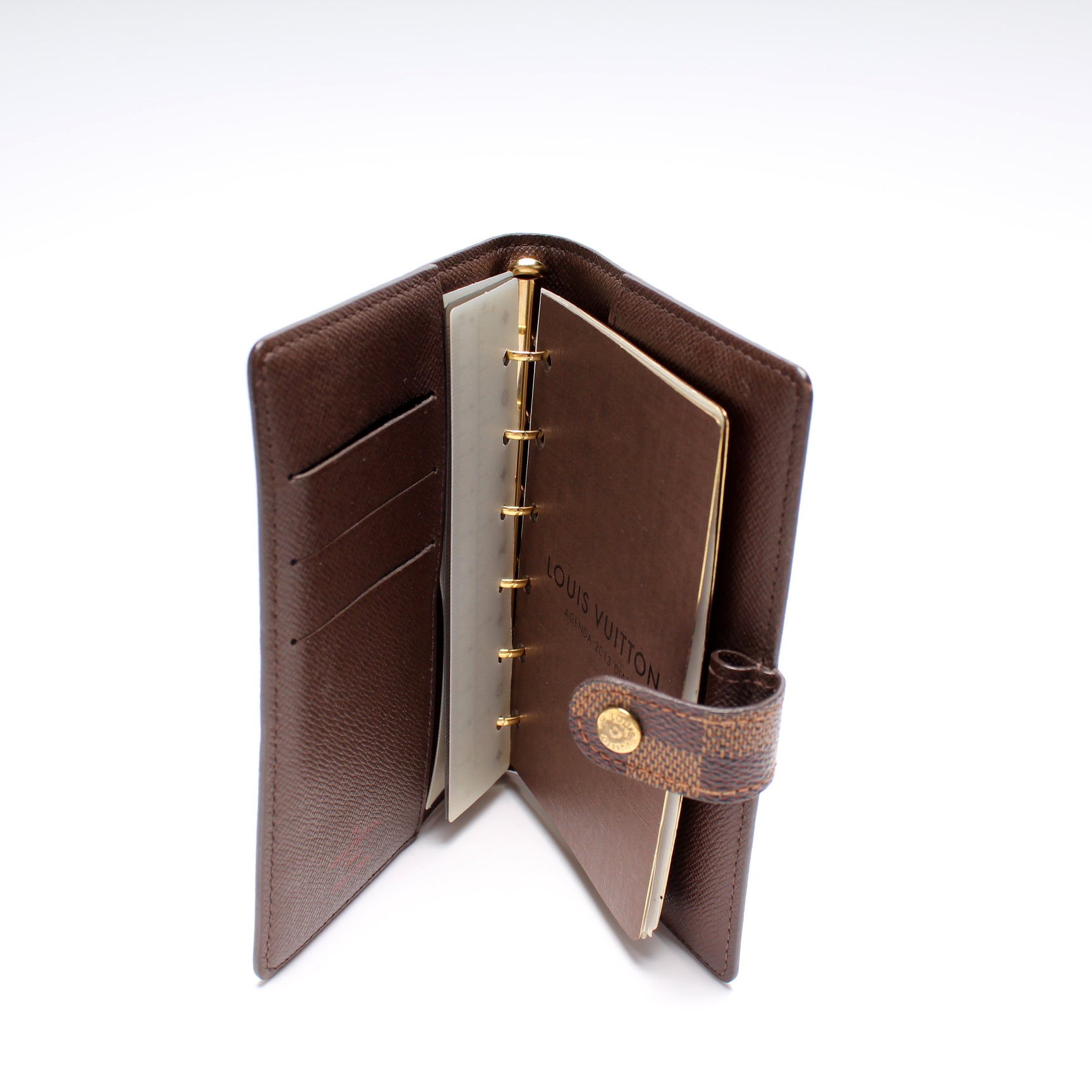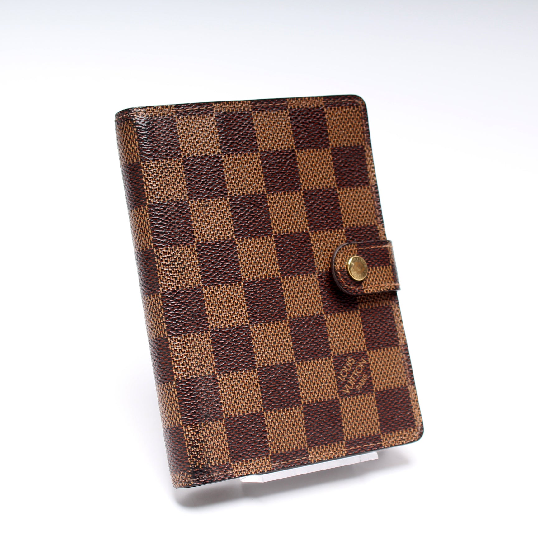 This pre-owned Louis Vuitton Agenda Small Ring is guaranteed 100% authentic. The exterior is in the classic Monogram coated canvas.
