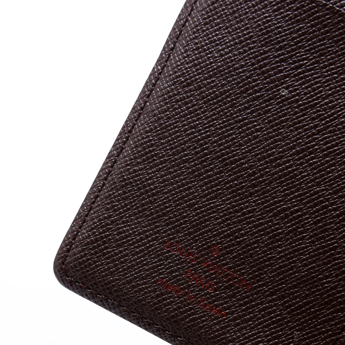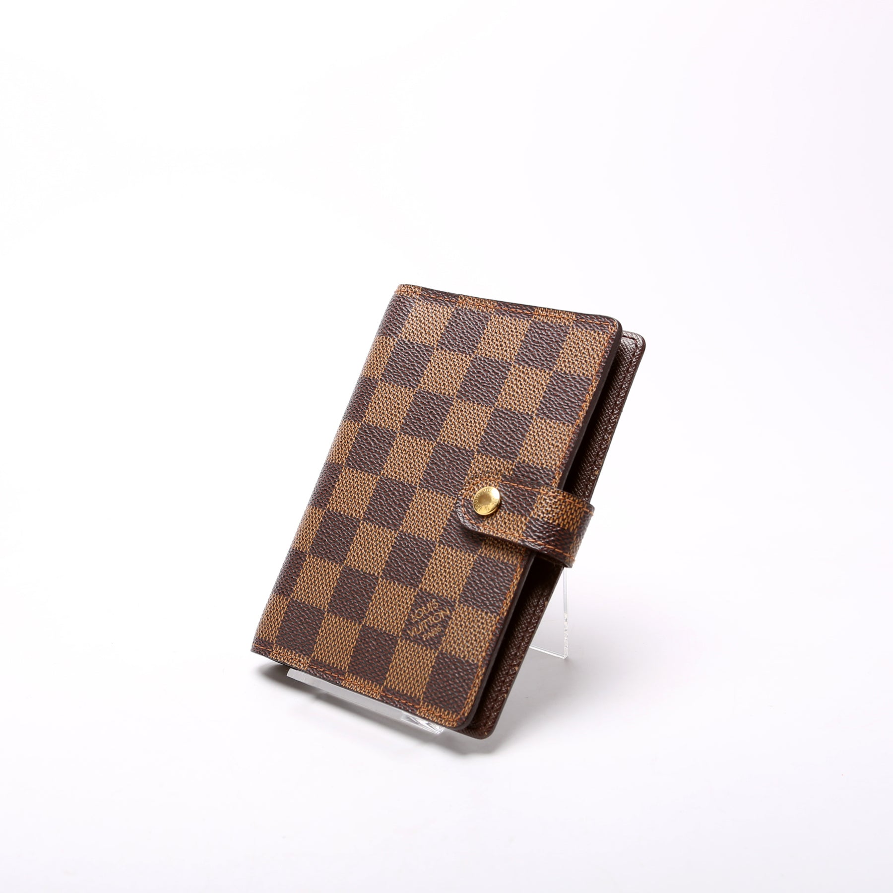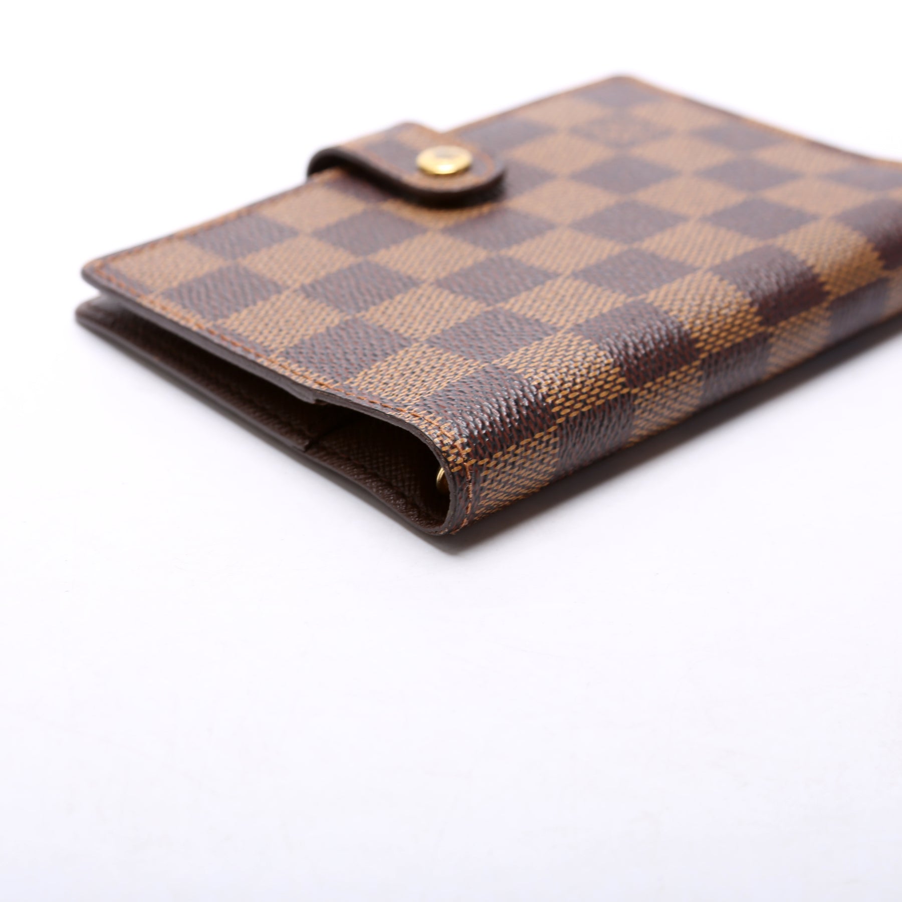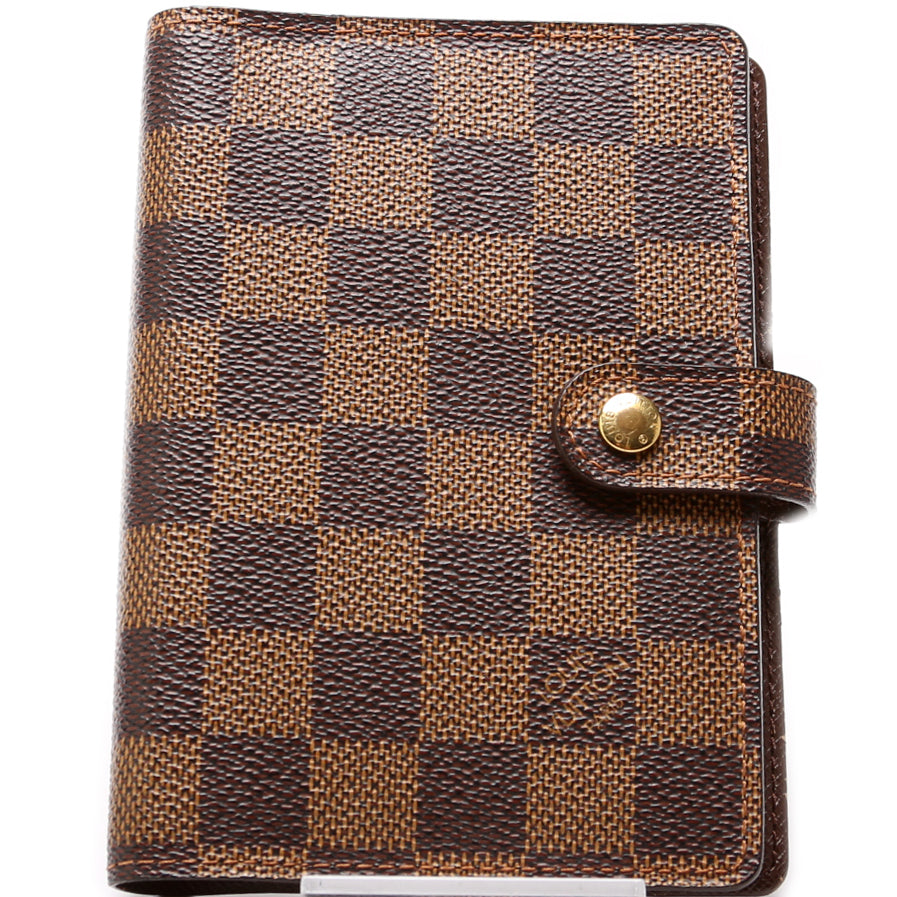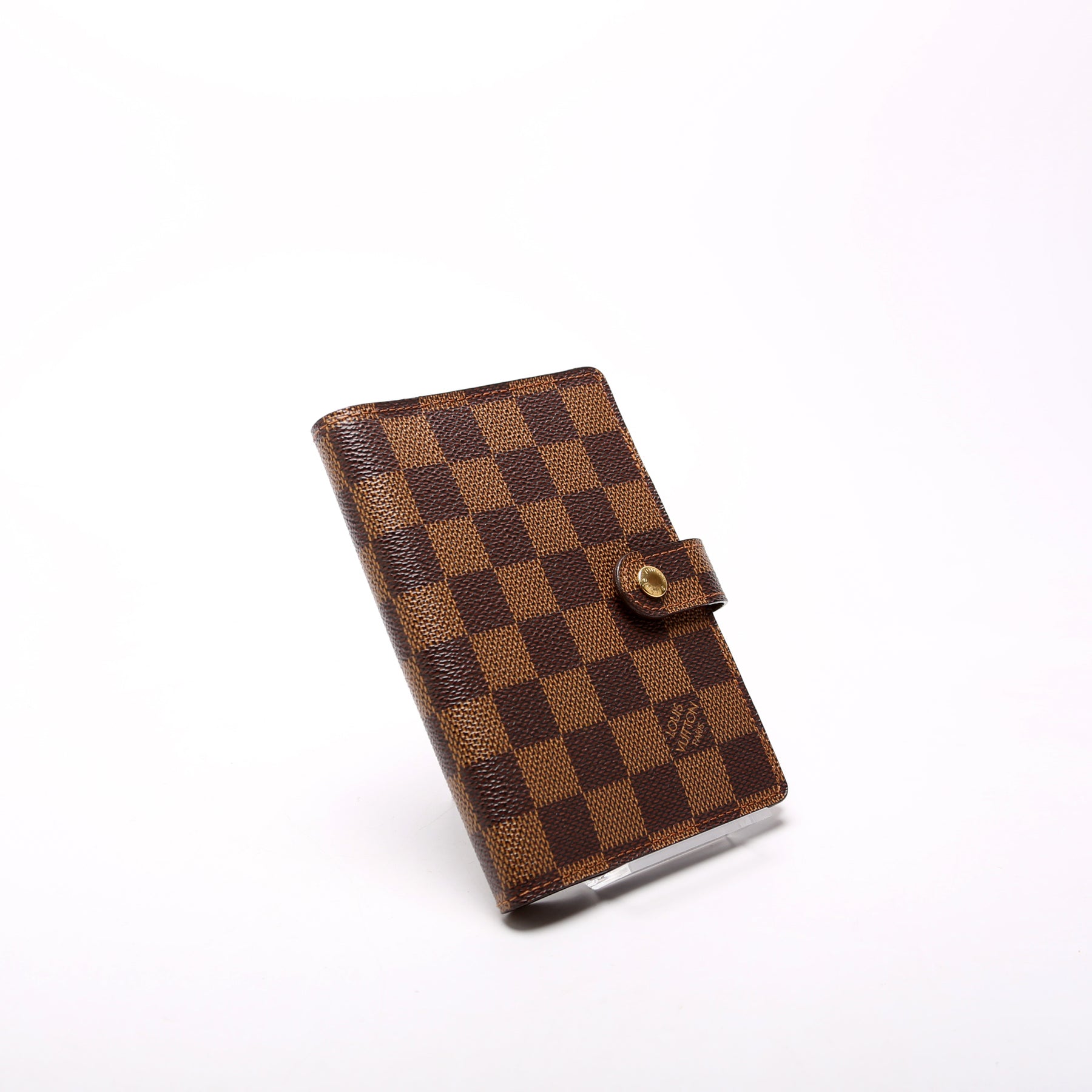 This pre-owned Louis Vuitton Agenda Small Ring is guaranteed 100% authentic. The exterior is in the classic Damier Ebene coated canvas.