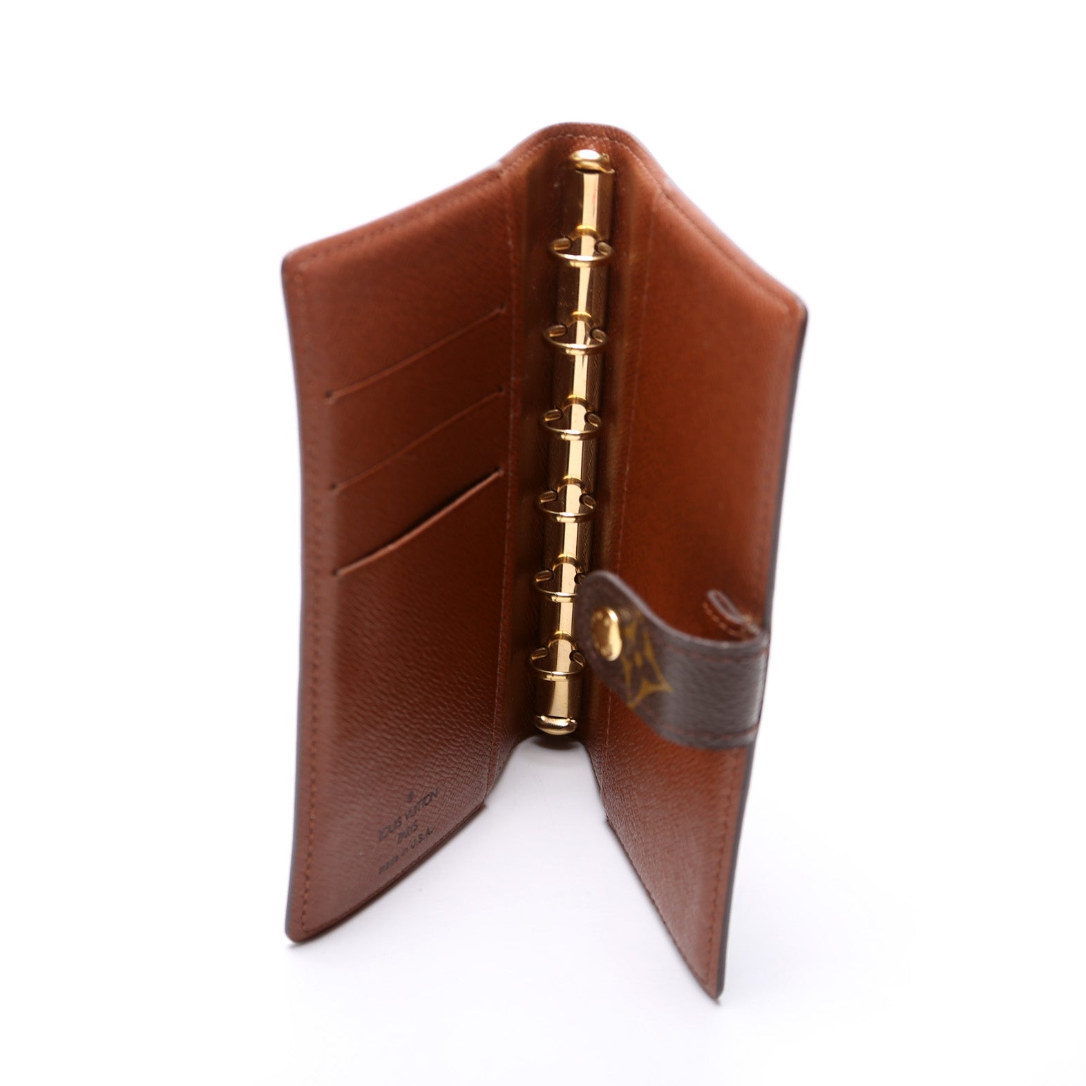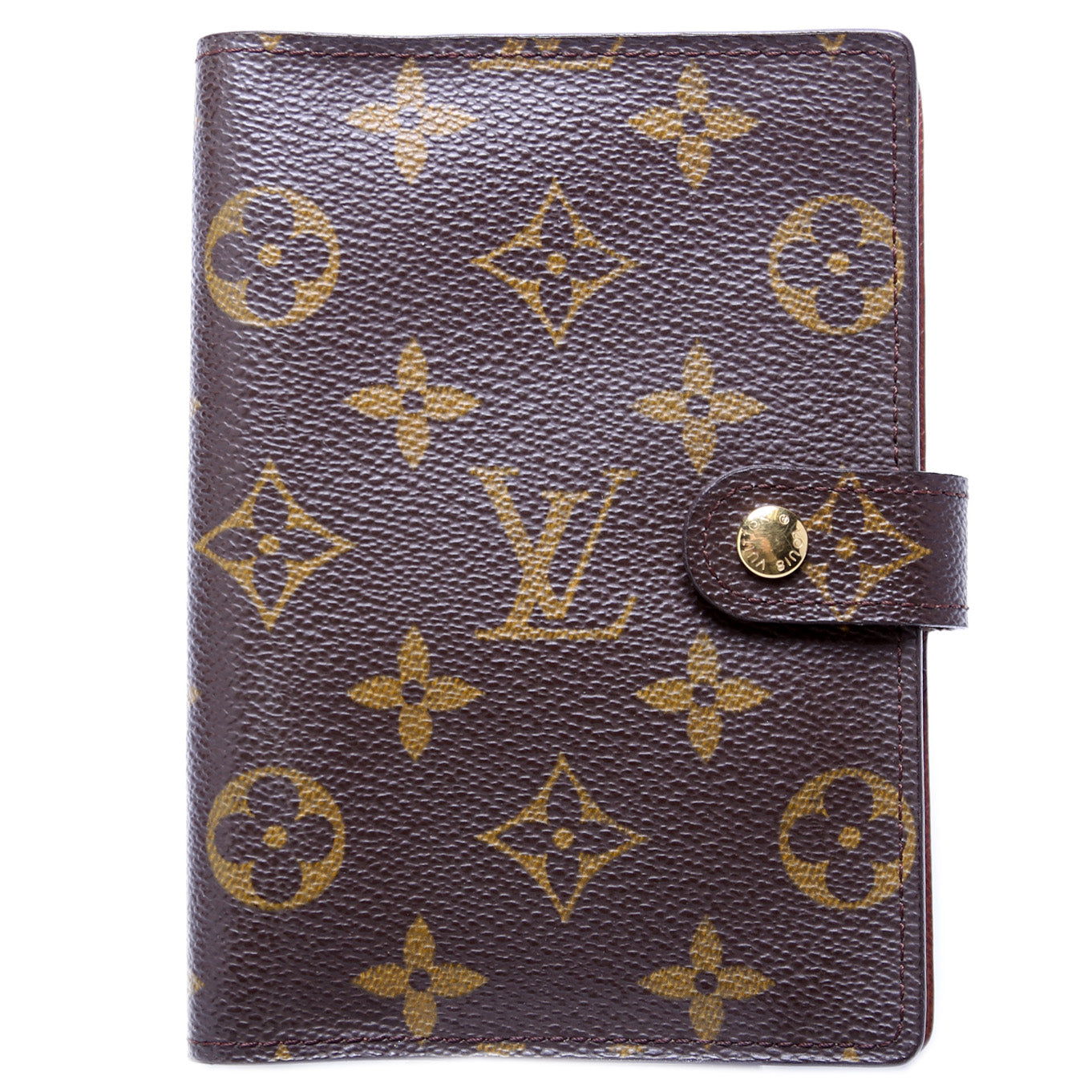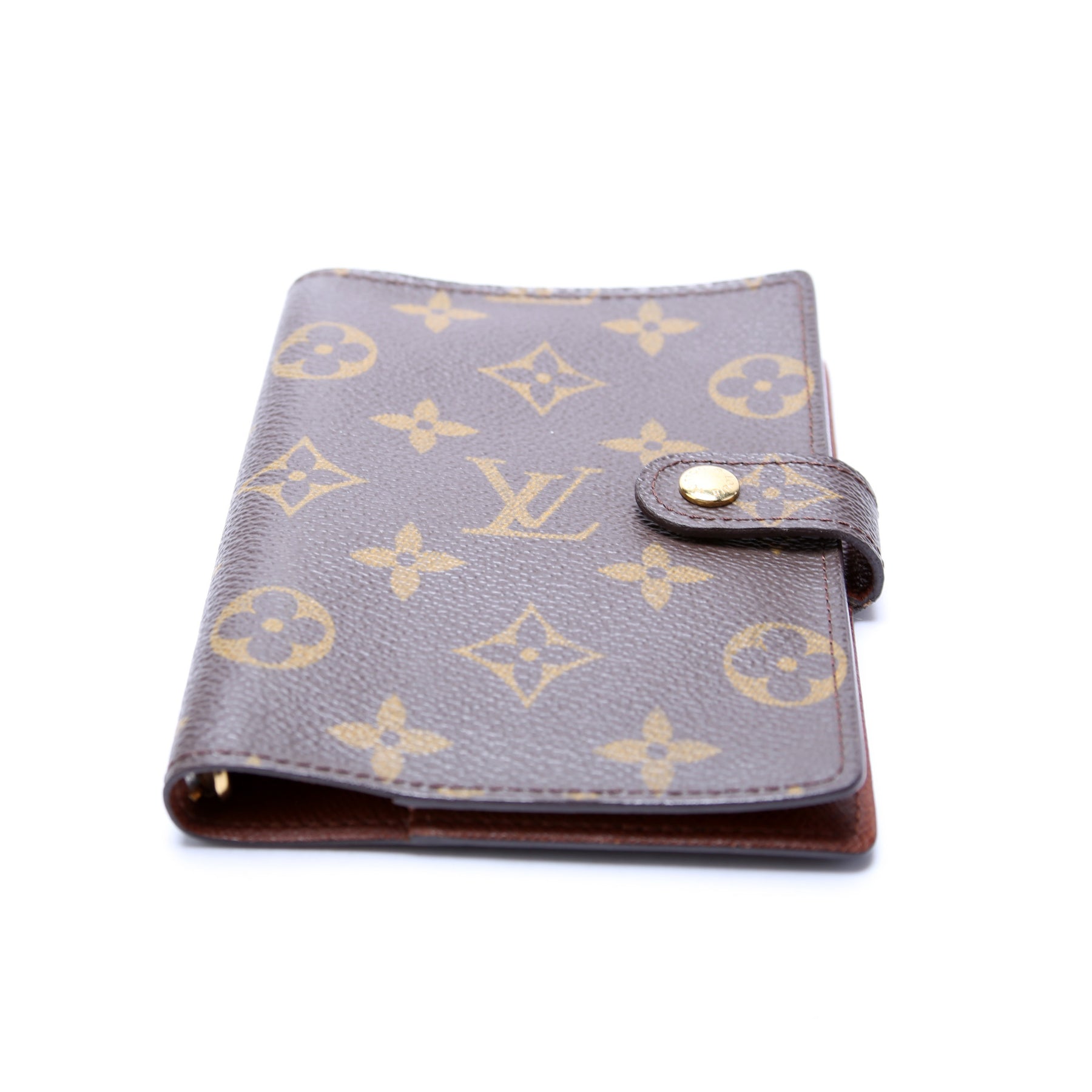 This pre-owned Louis Vuitton Agenda Small Ring is guaranteed 100% authentic. The exterior is in the classic Monogram coated canvas.