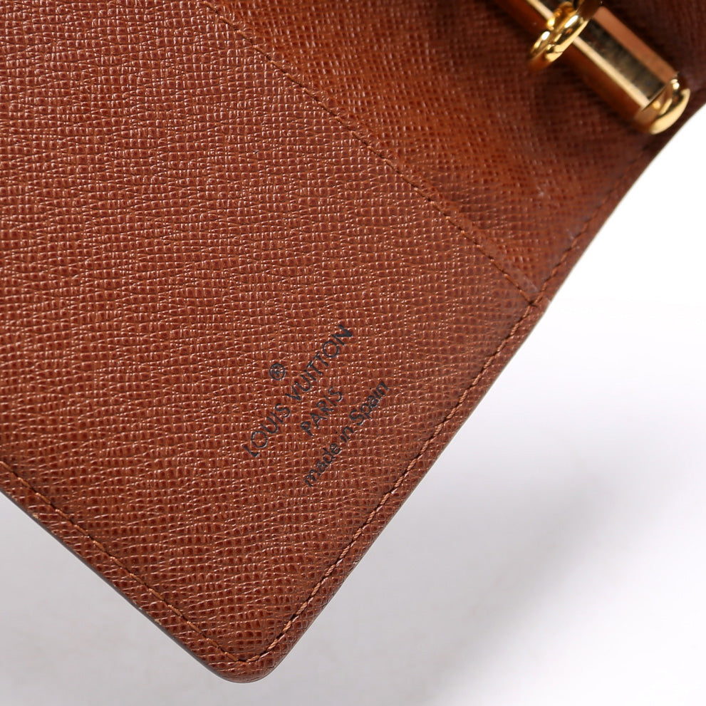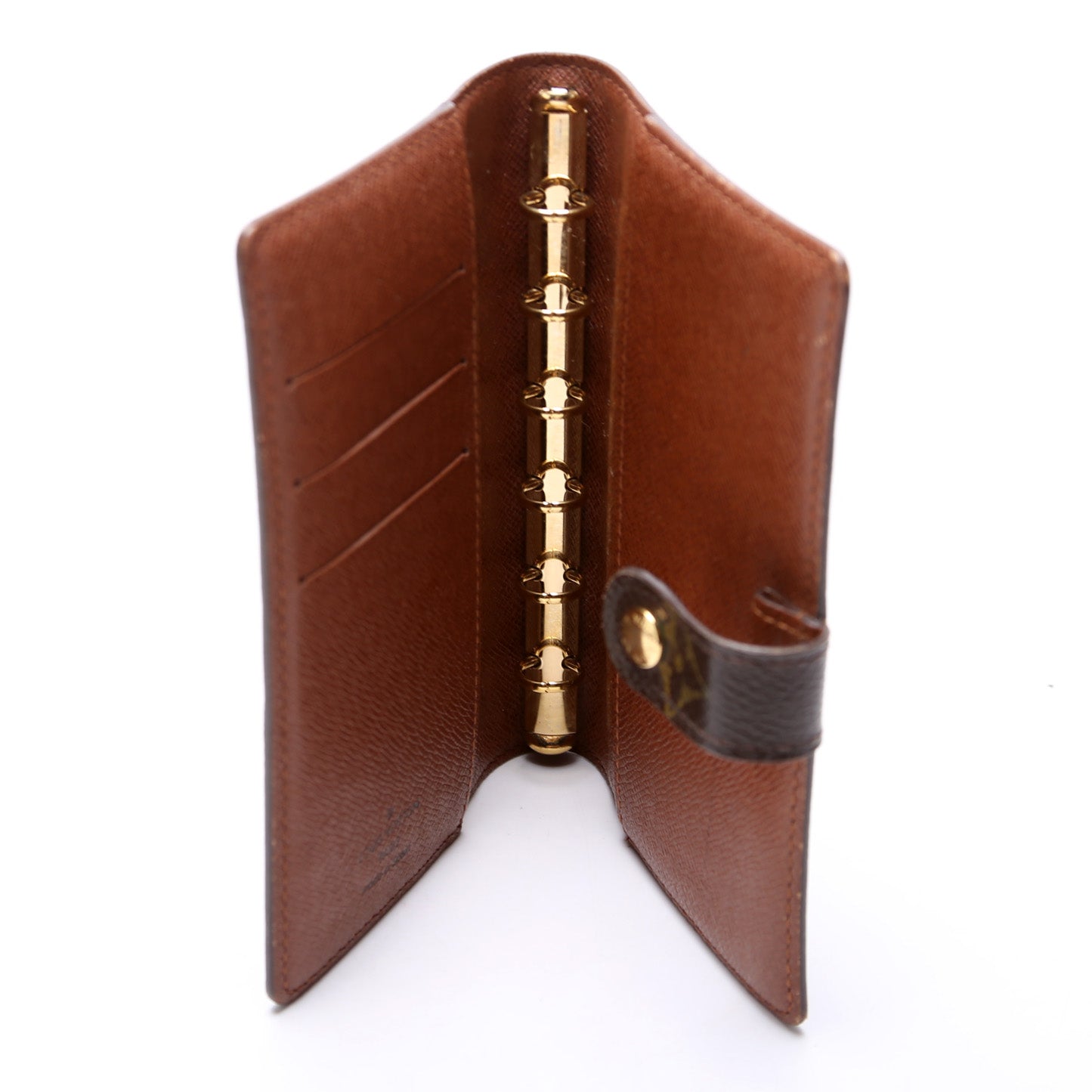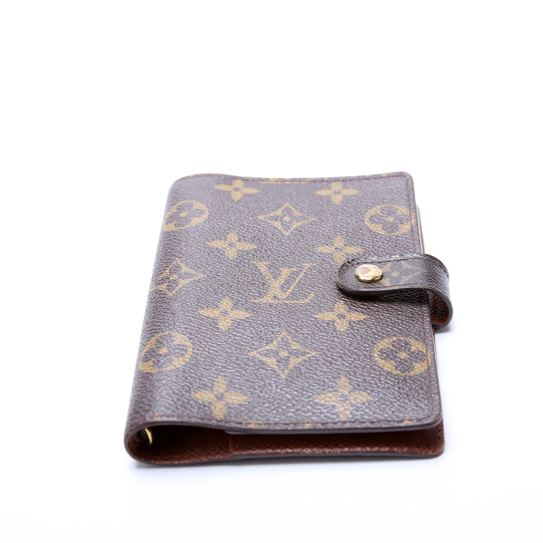 This pre-owned Louis Vuitton Agenda Small Ring is guaranteed 100% authentic. The exterior is in the classic Louis Vuitton Monogram coated canvas.