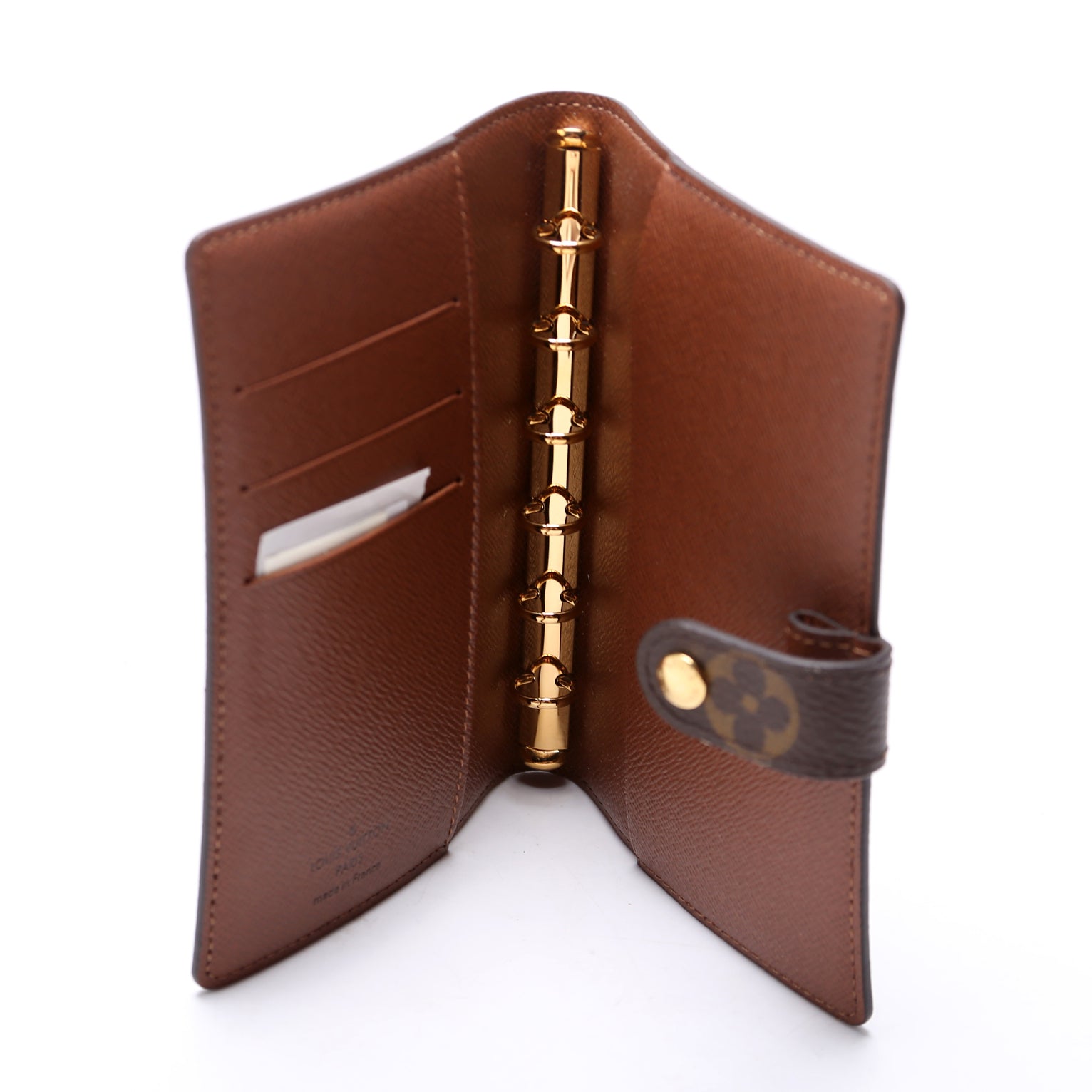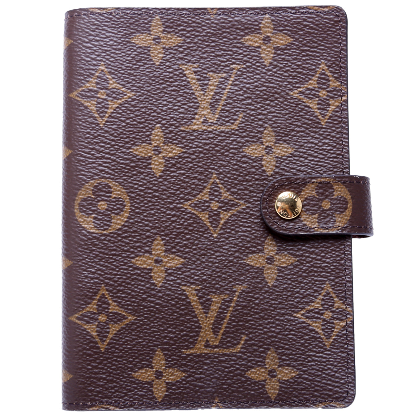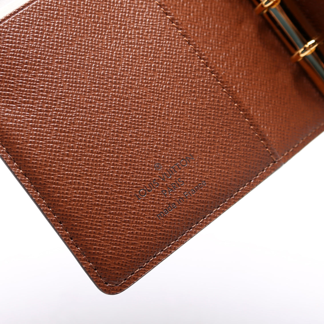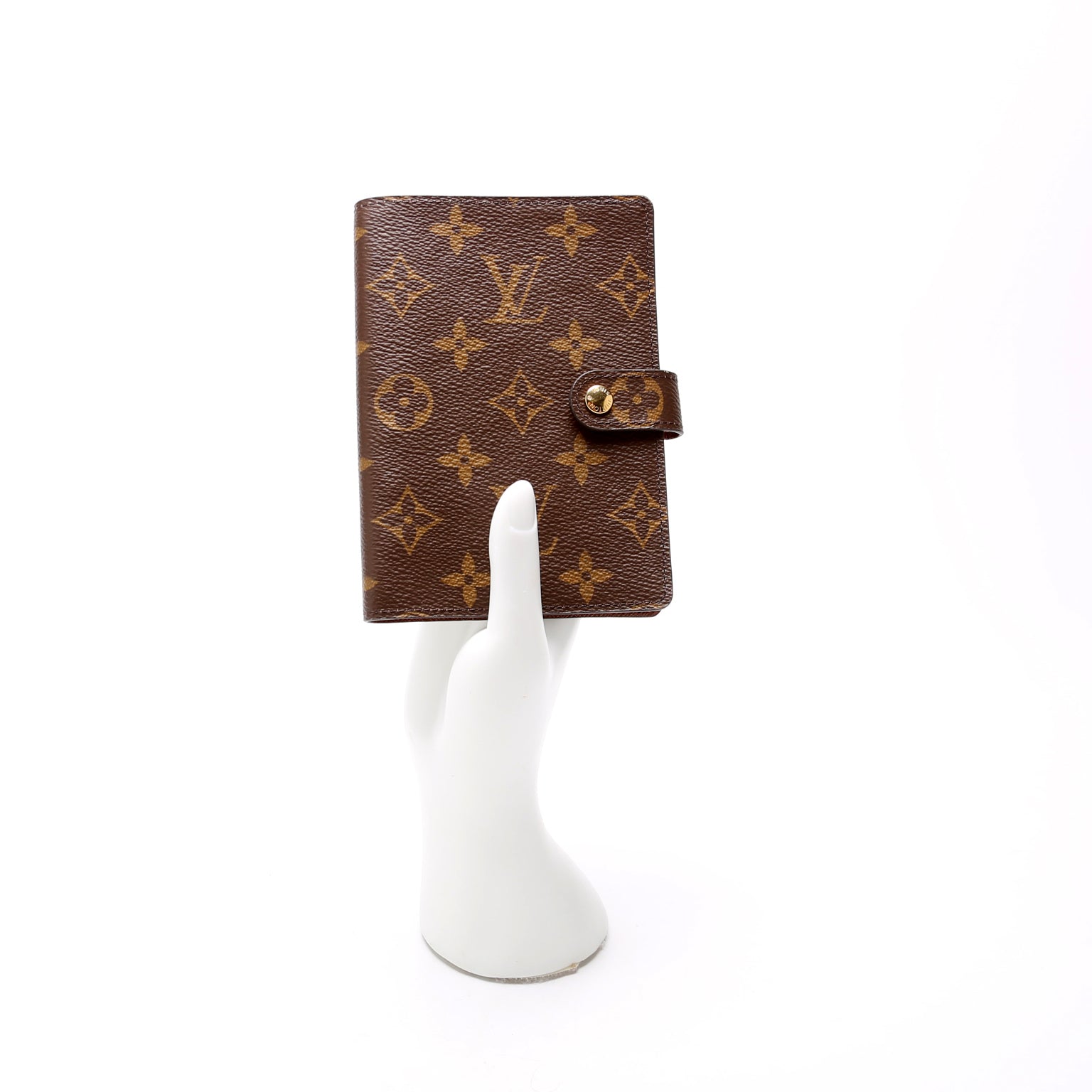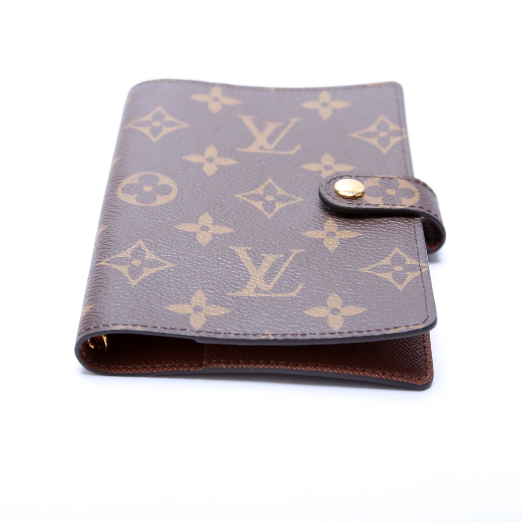 This pre-owned Louis Vuitton Agenda Small Ring is guaranteed 100% authentic. The exterior is in the classic Monogram coated canvas.