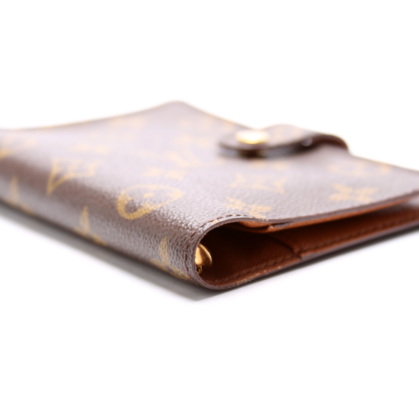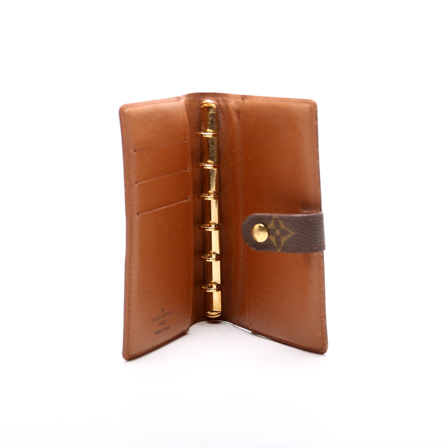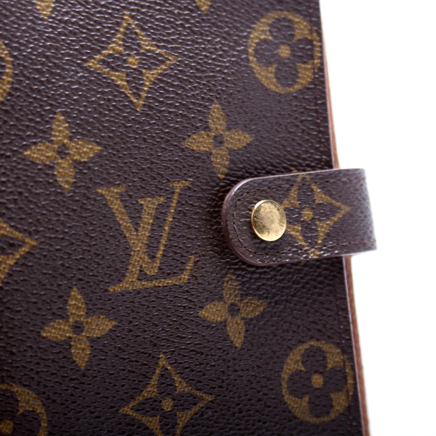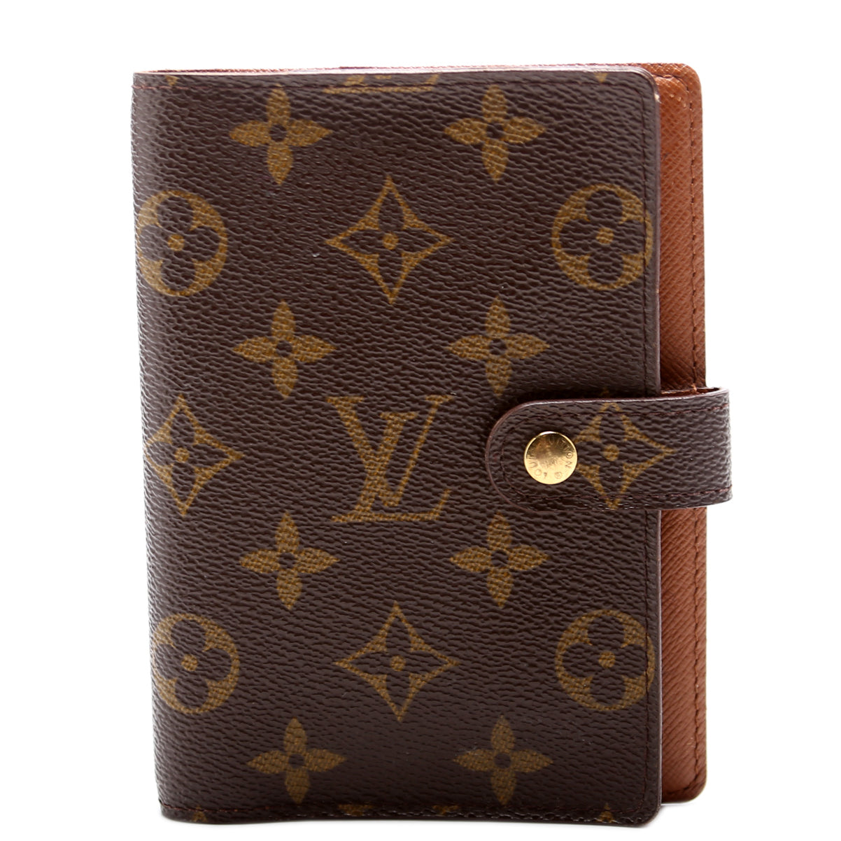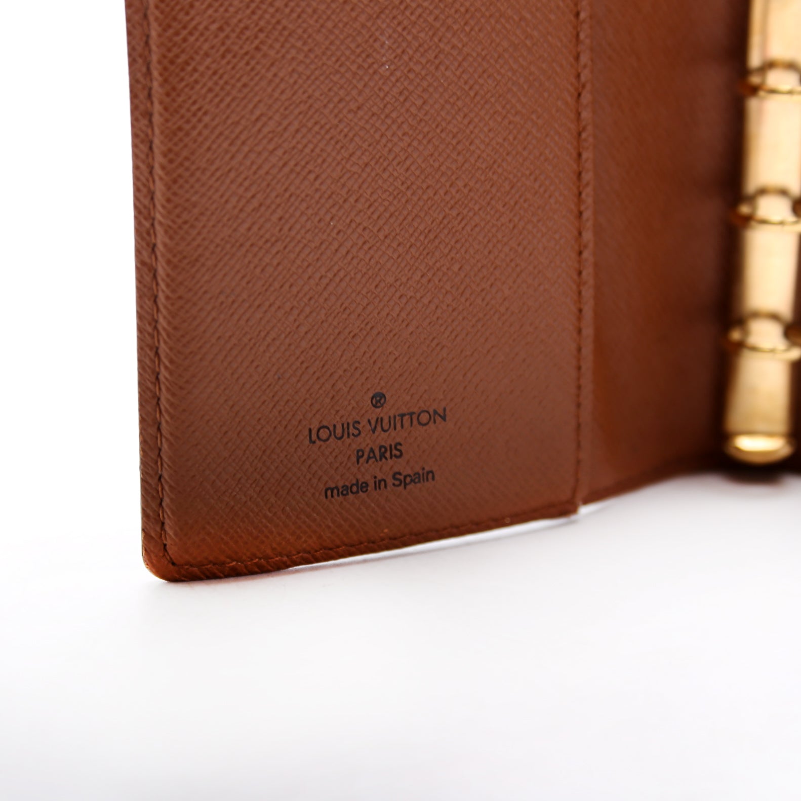This pre-owned Louis Vuitton Agenda Small Ring is guaranteed 100% authentic. The exterior is in the classic Louis Vuitton Monogram coated canvas.