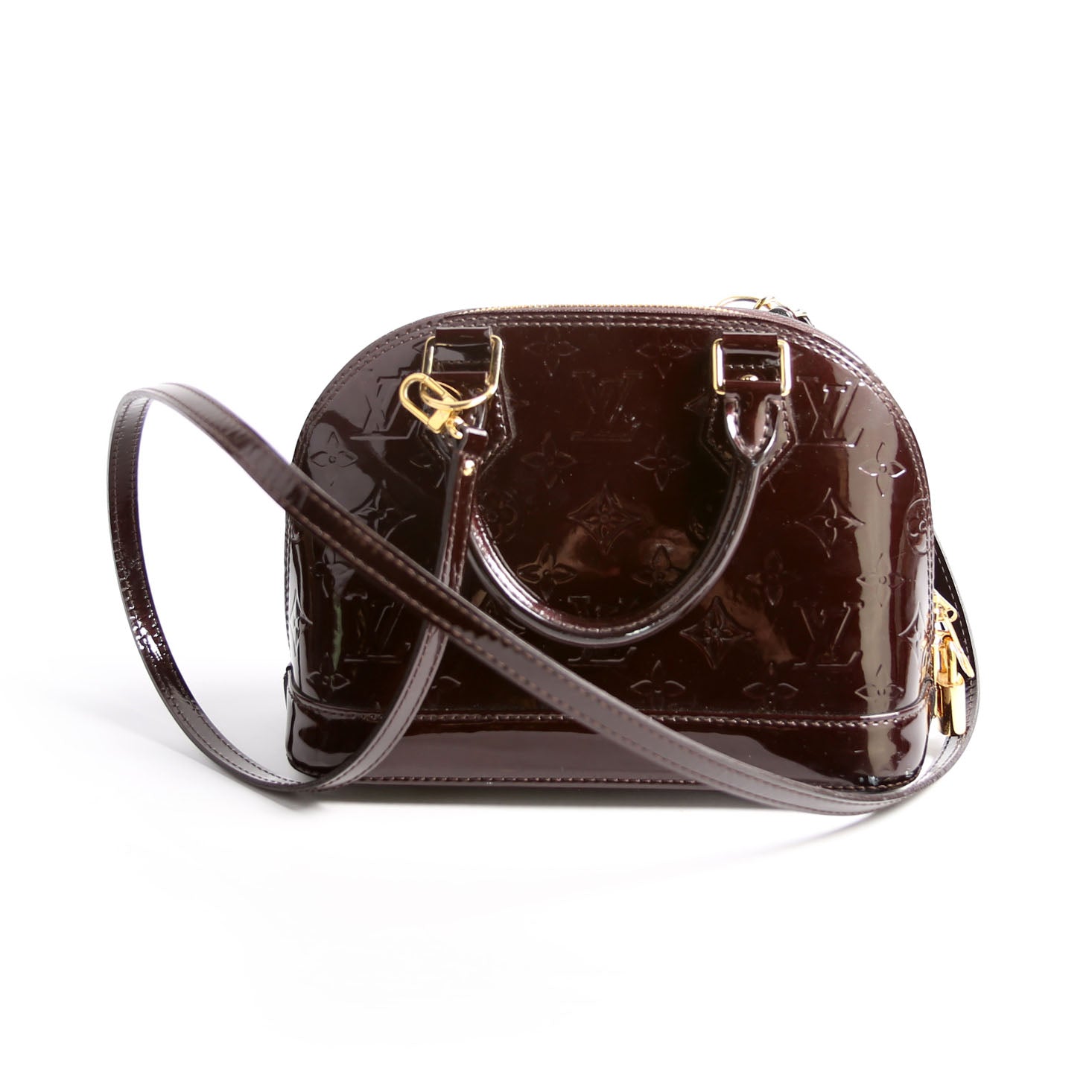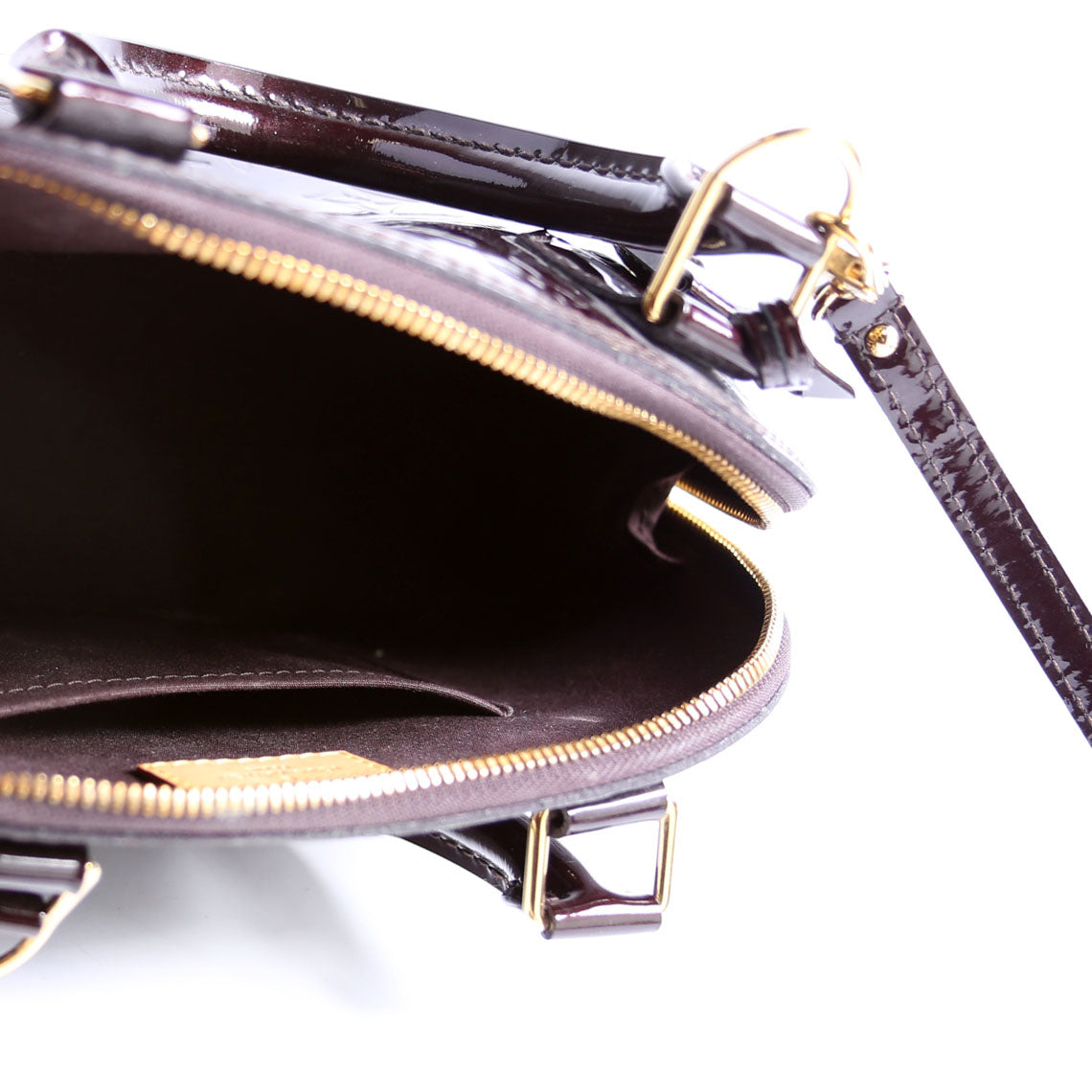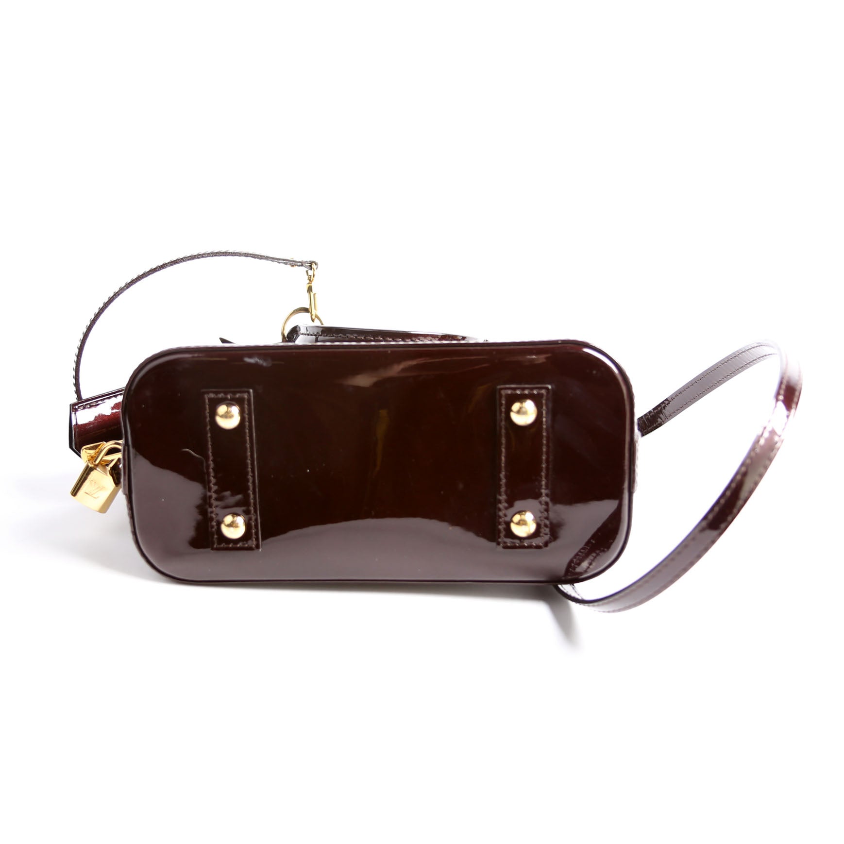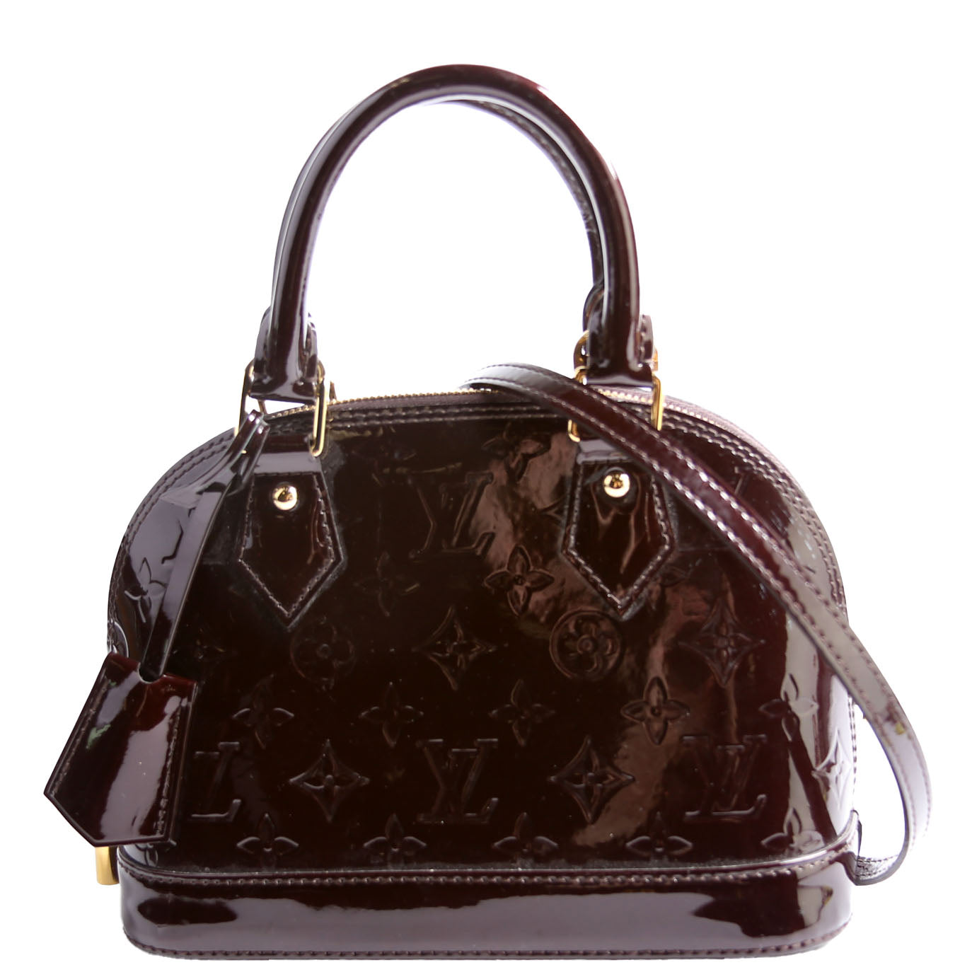 This pre-owned Louis Vuitton Alma BB Vernis is guaranteed 100% authentic. The exterior is in the classic Louis Vuitton patent material.