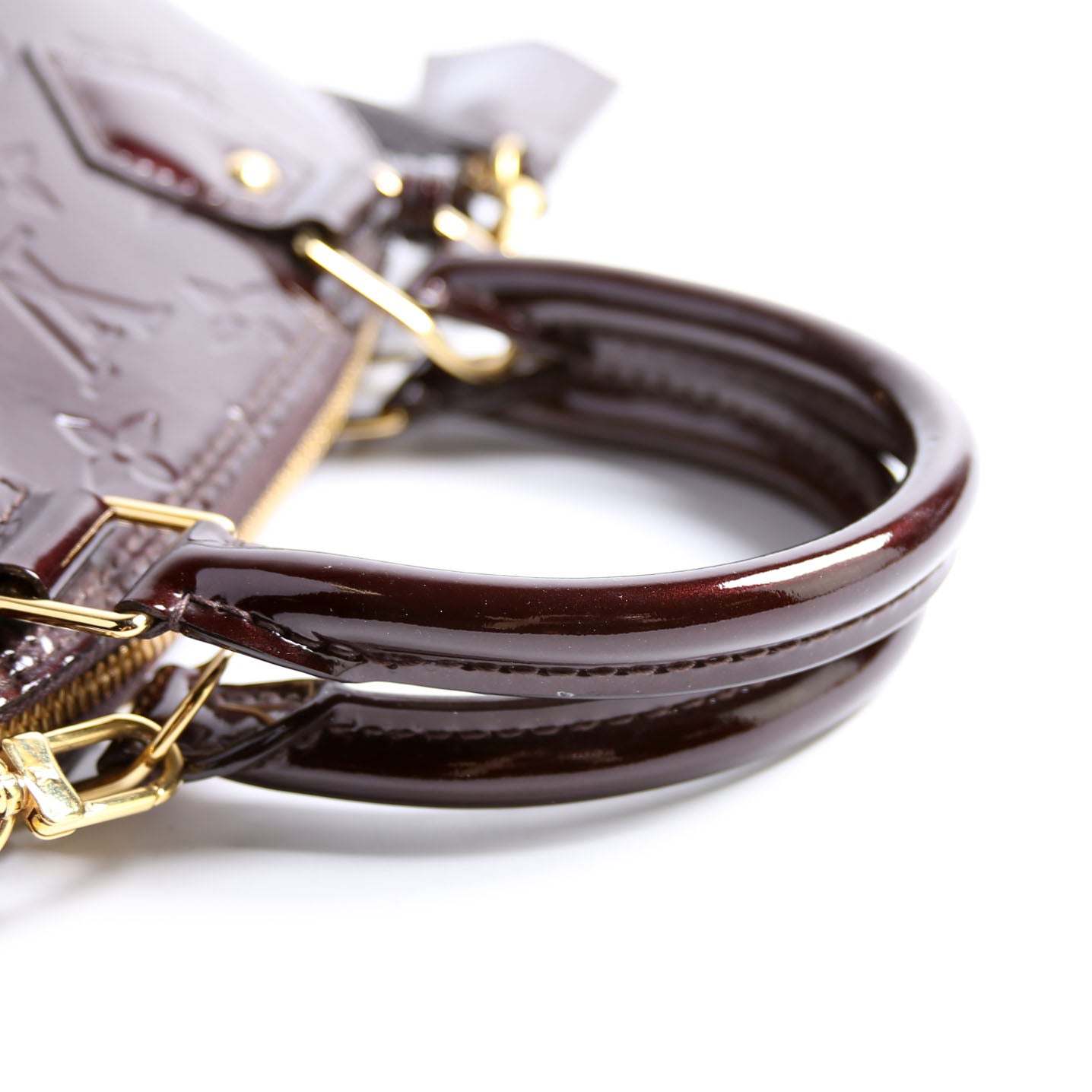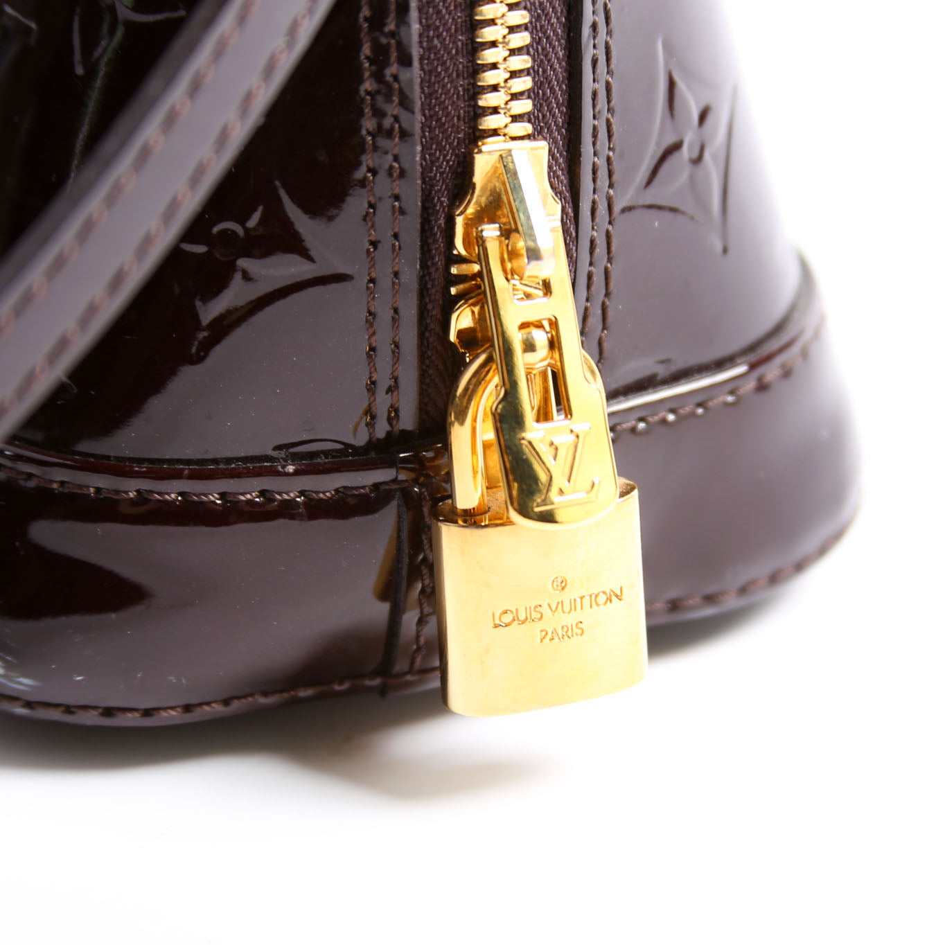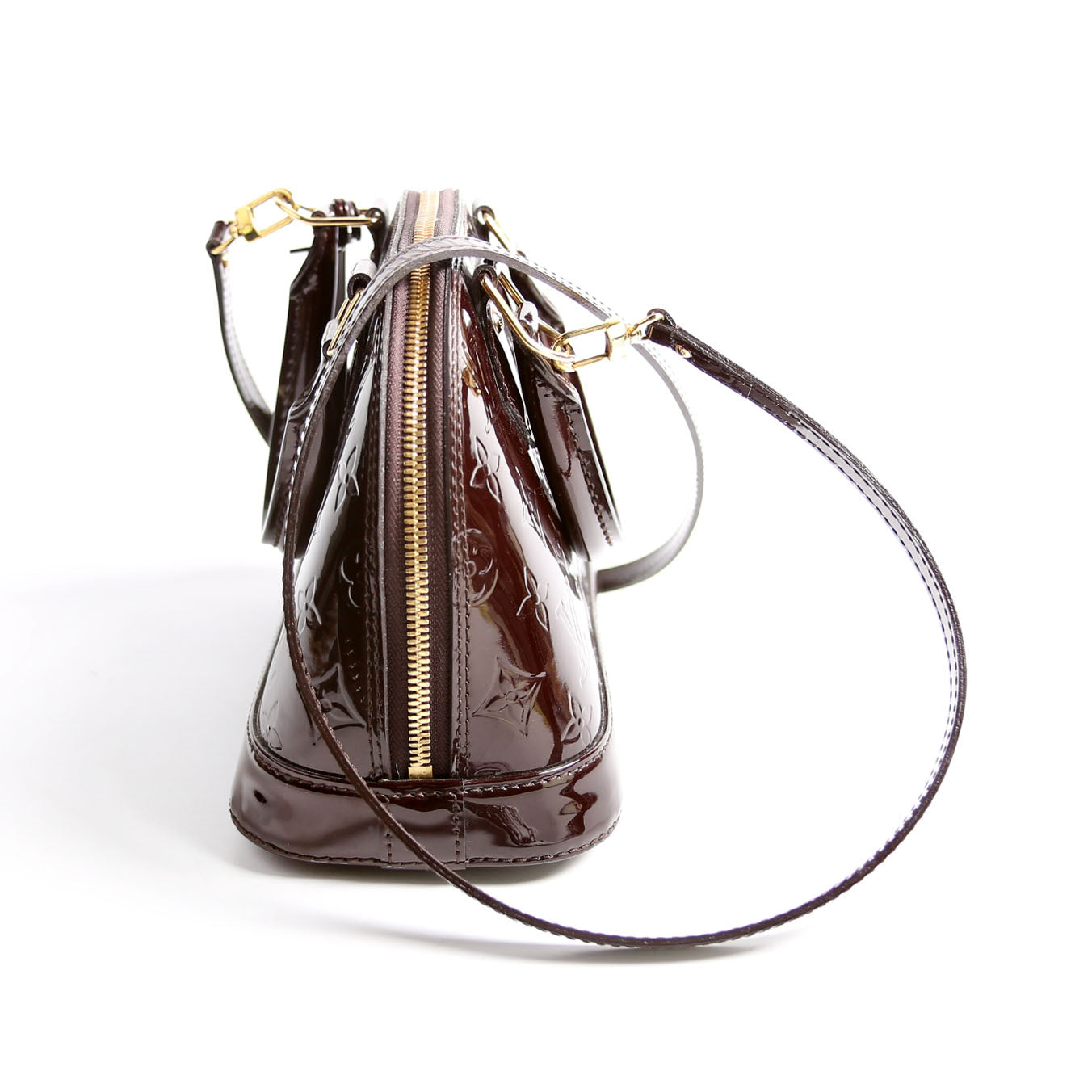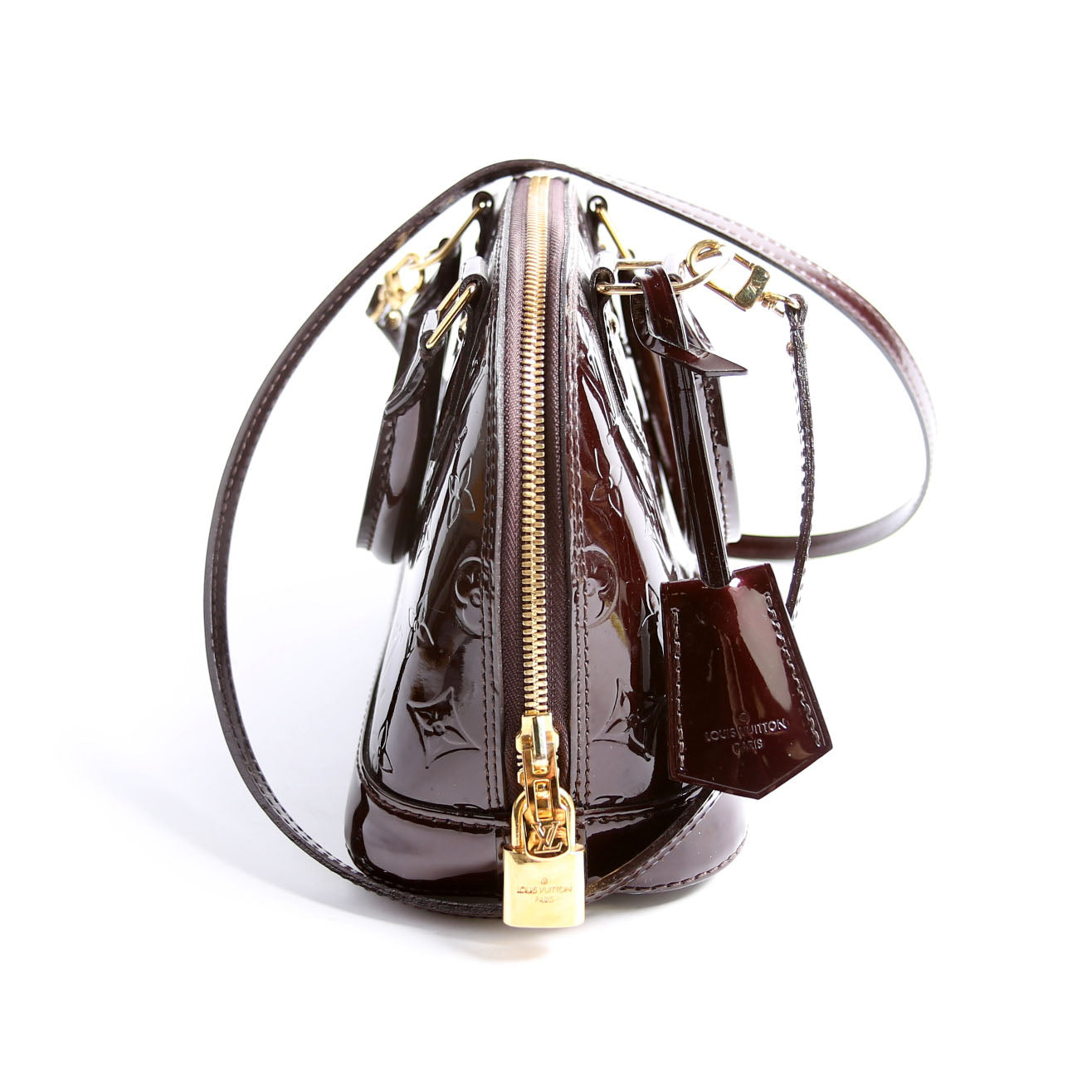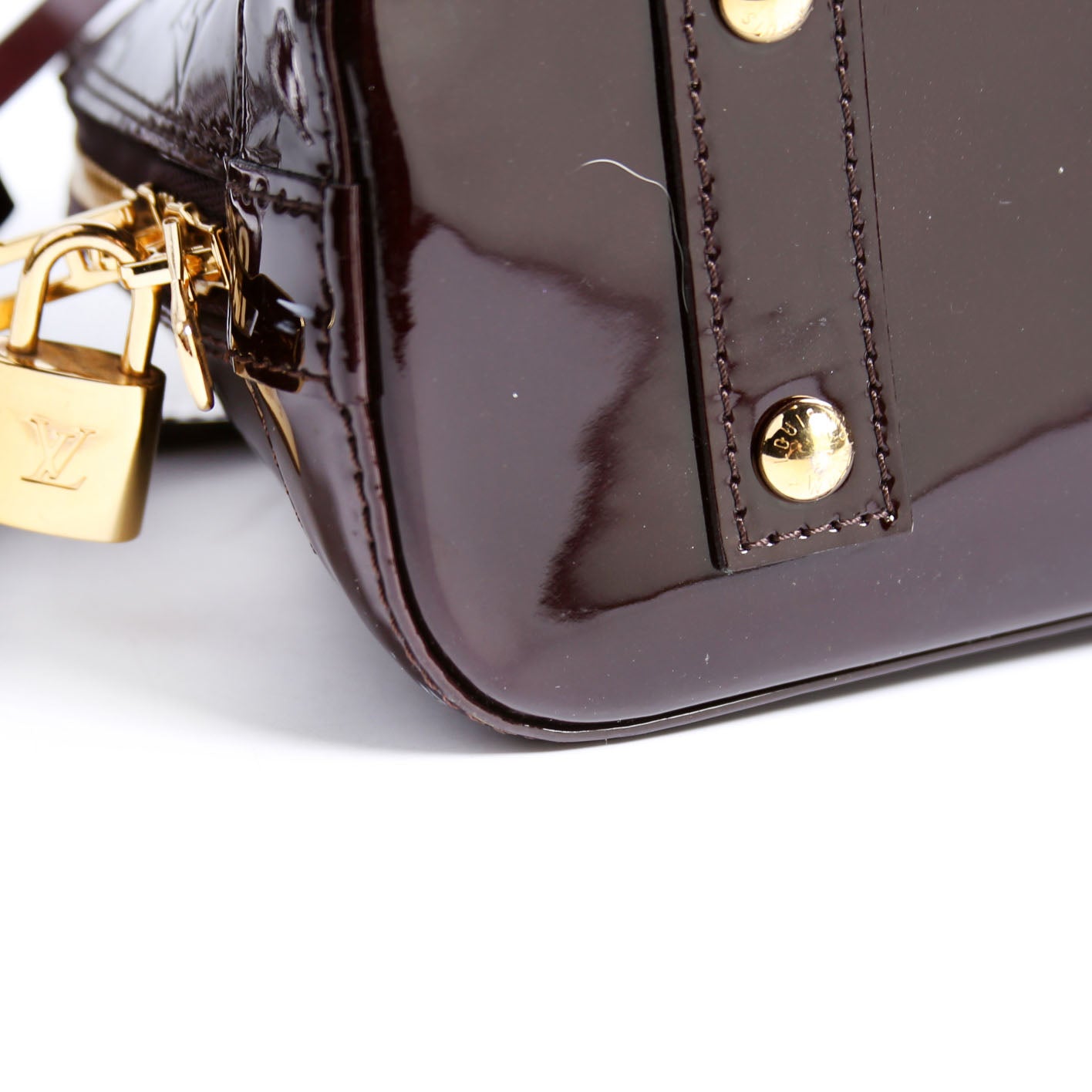 This pre-owned Louis Vuitton Alma BB Vernis is guaranteed 100% authentic. The exterior is in the classic Louis Vuitton patent material.