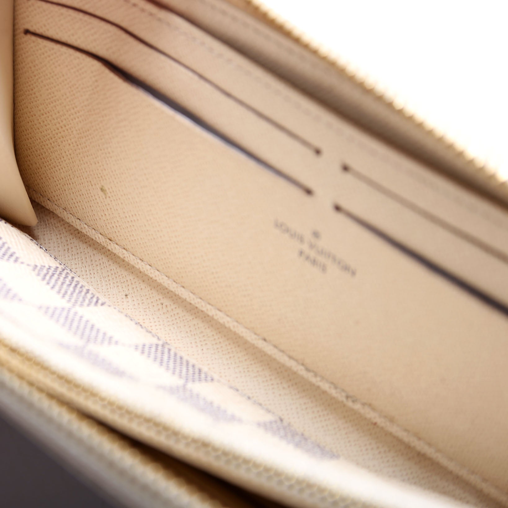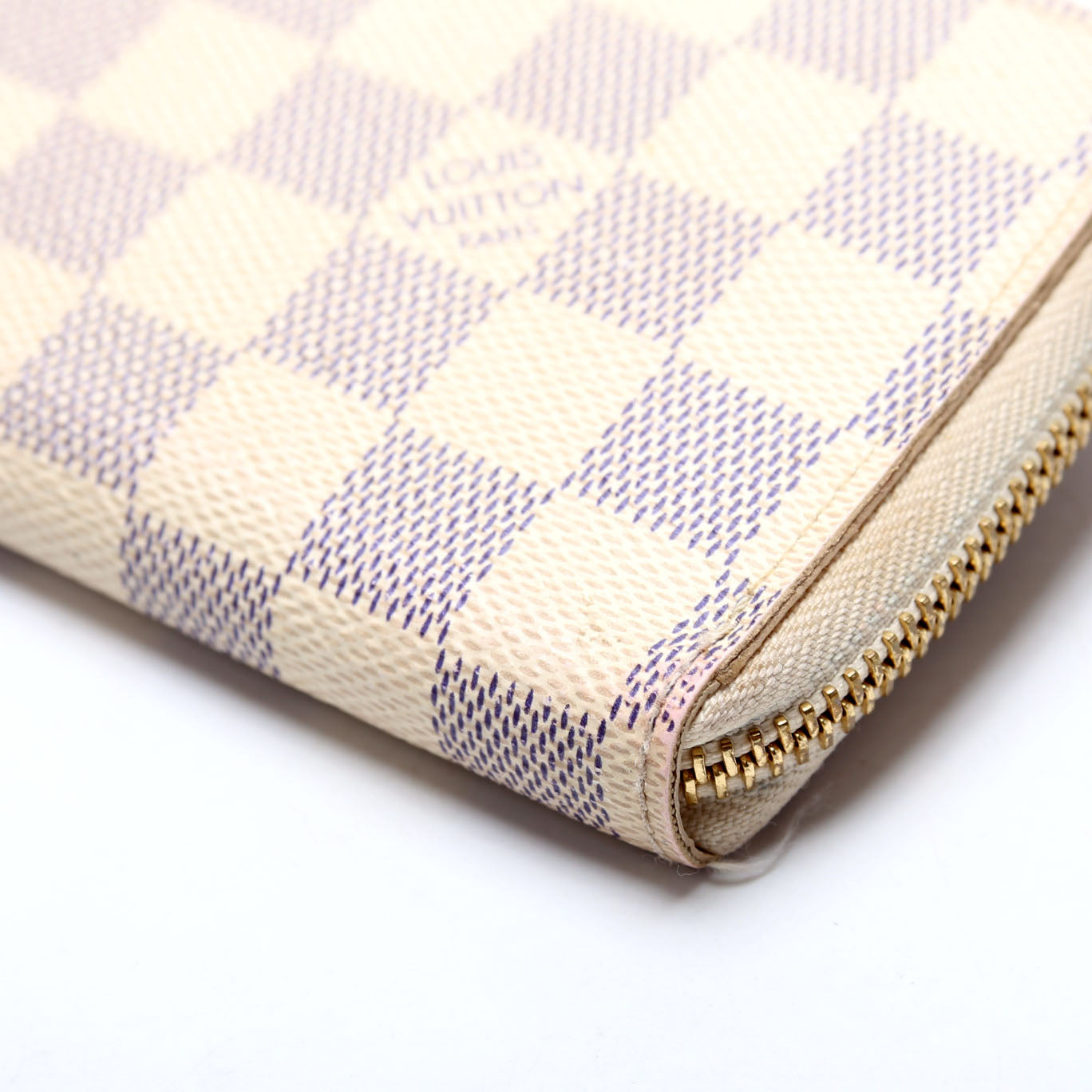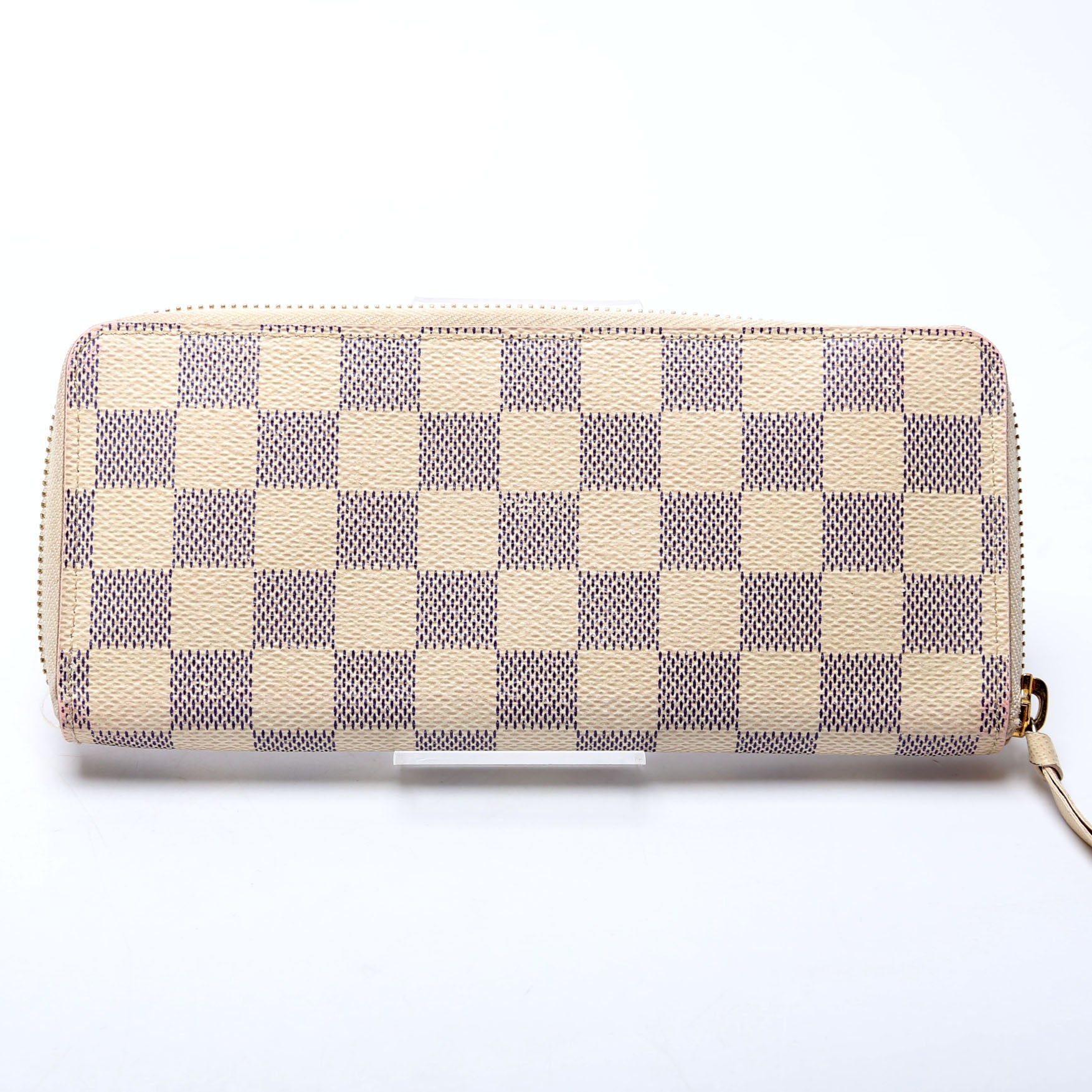 This pre-owned Louis Vuitton Clemence Wallet is guaranteed 100% authentic. The exterior is in the classic Louis Vuitton Damier Azur coated canvas.
