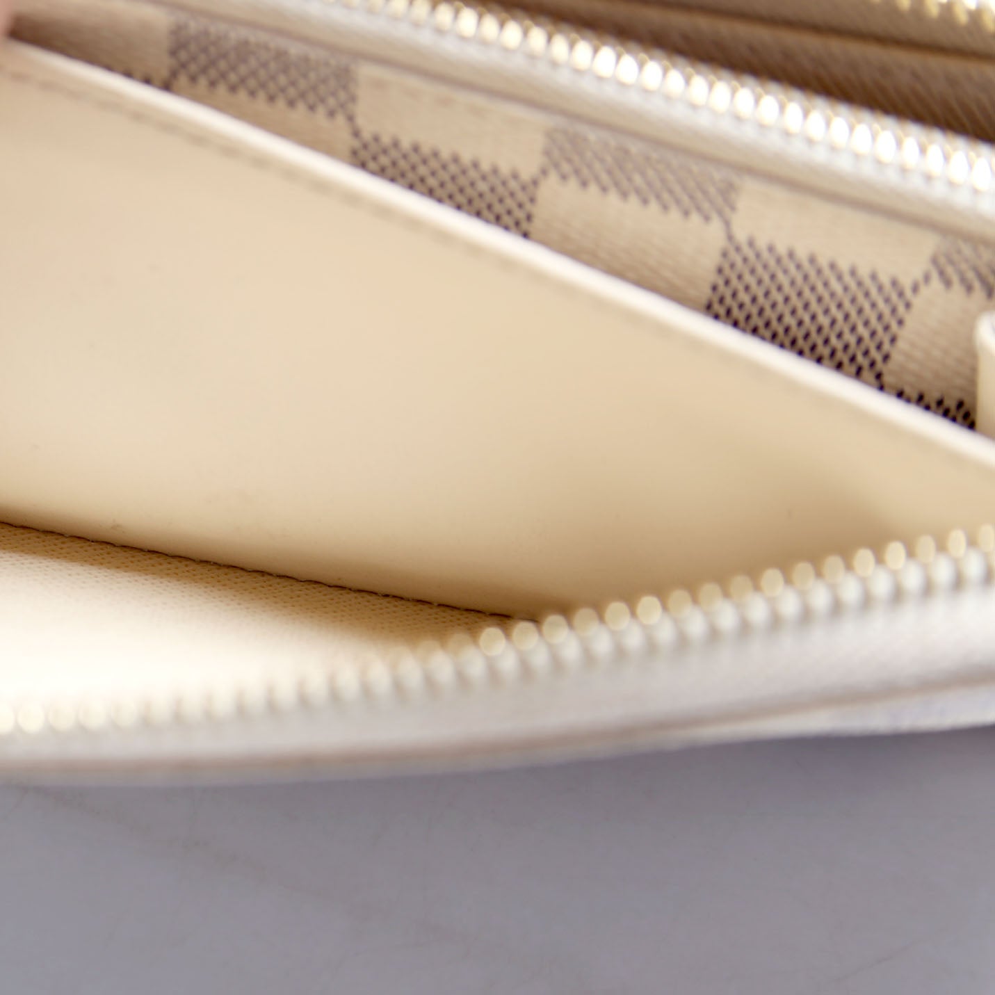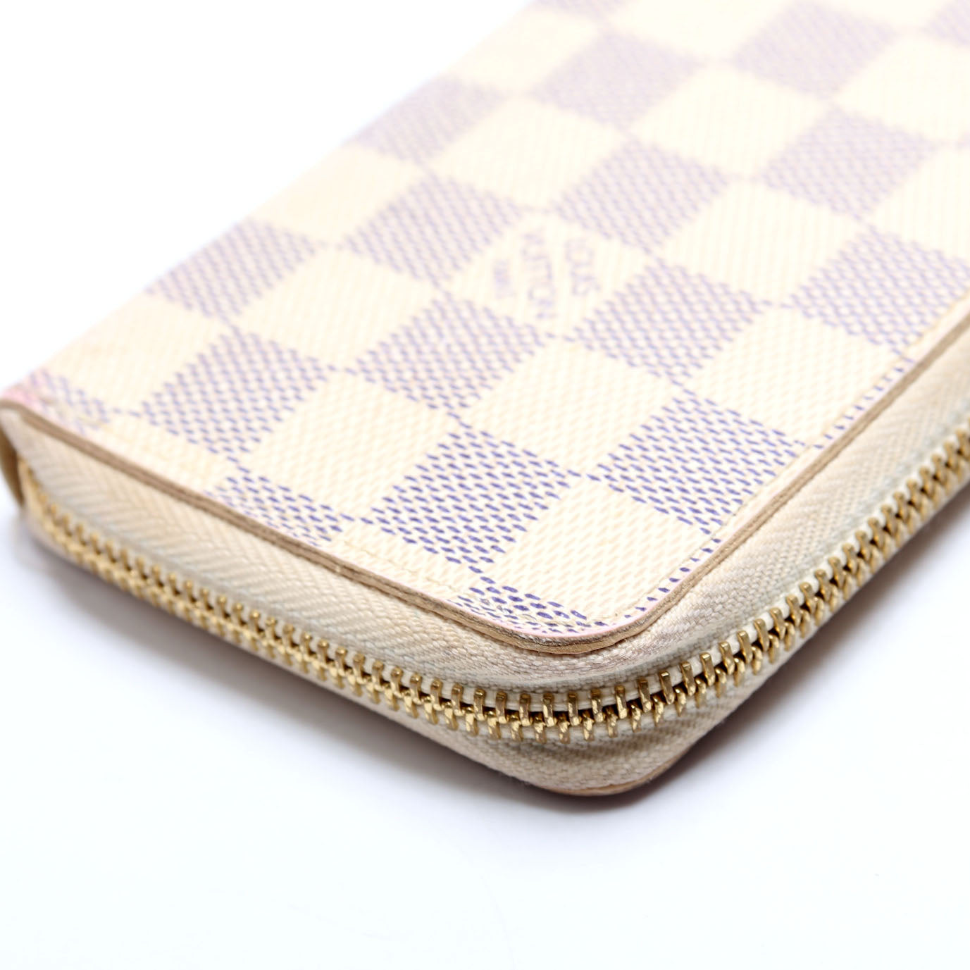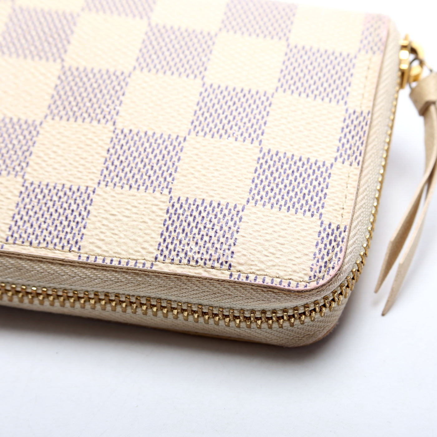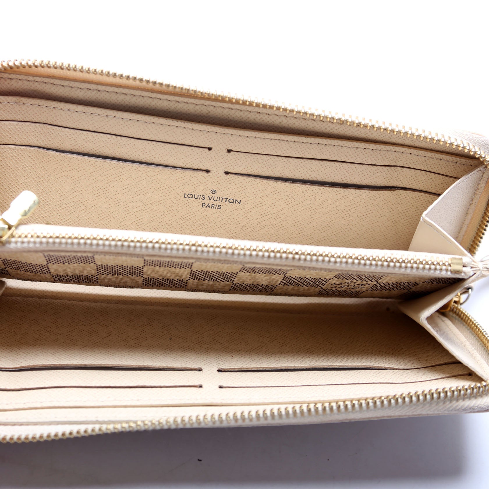 This pre-owned Louis Vuitton Clemence Wallet is guaranteed 100% authentic. The exterior is in the classic Louis Vuitton Damier Azur coated canvas.