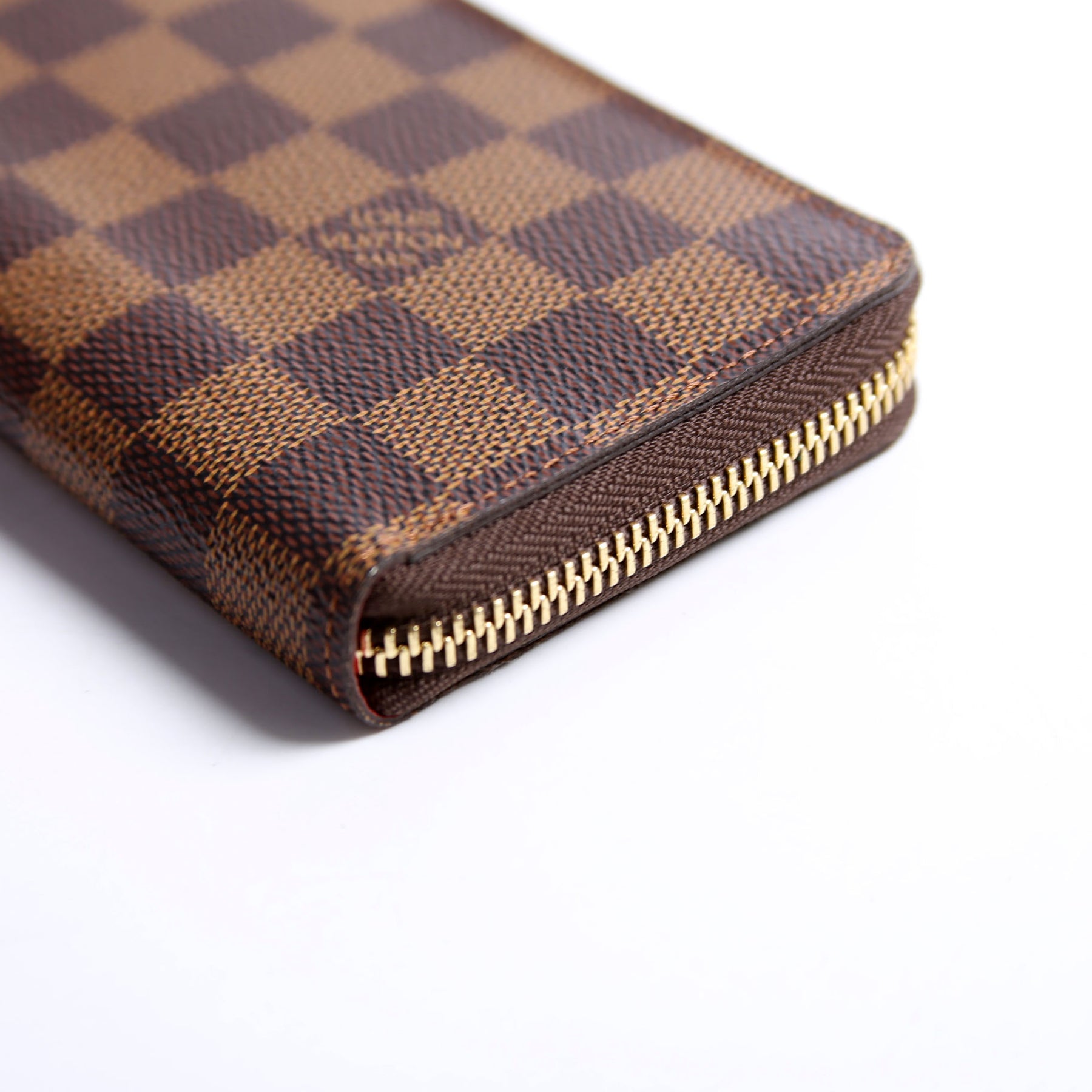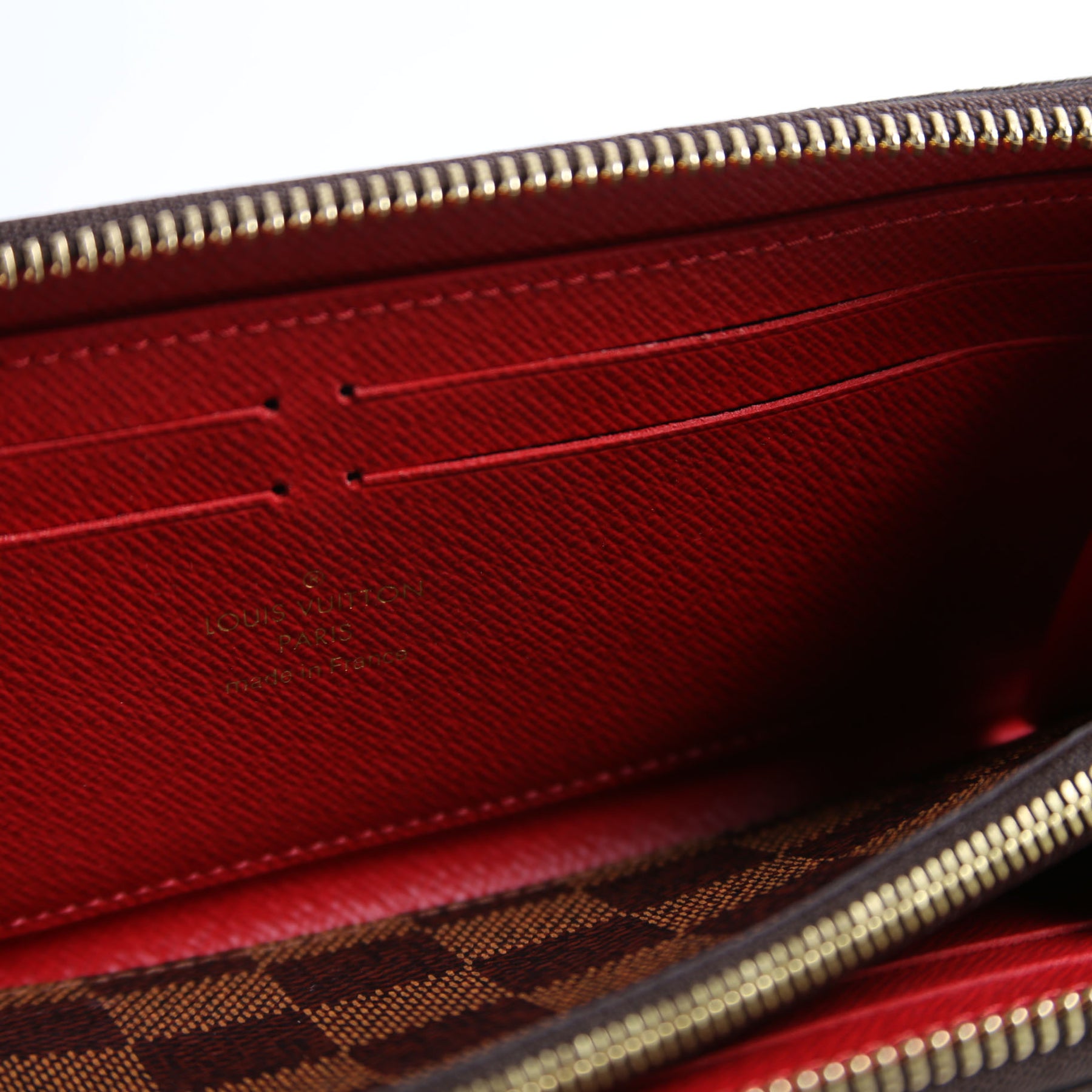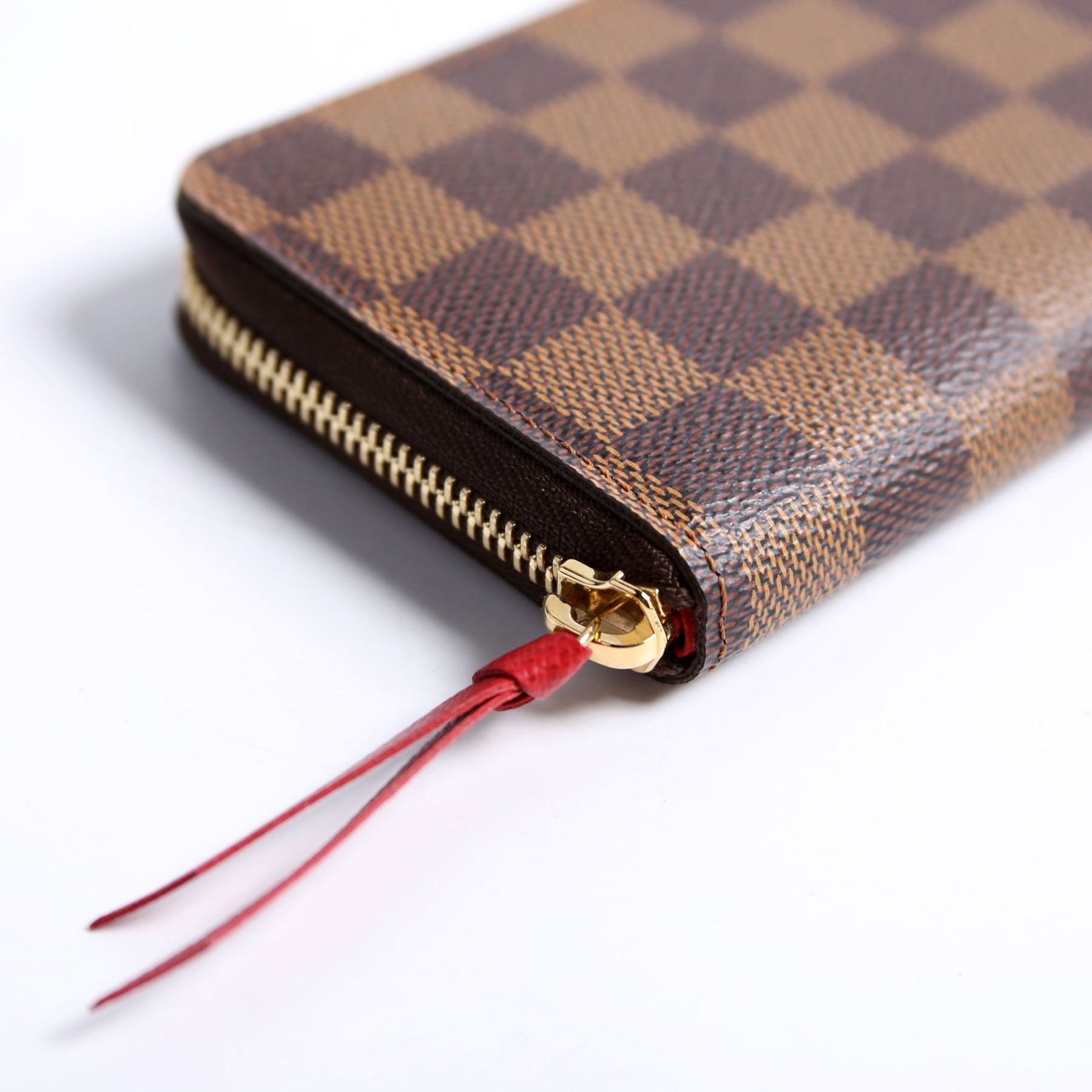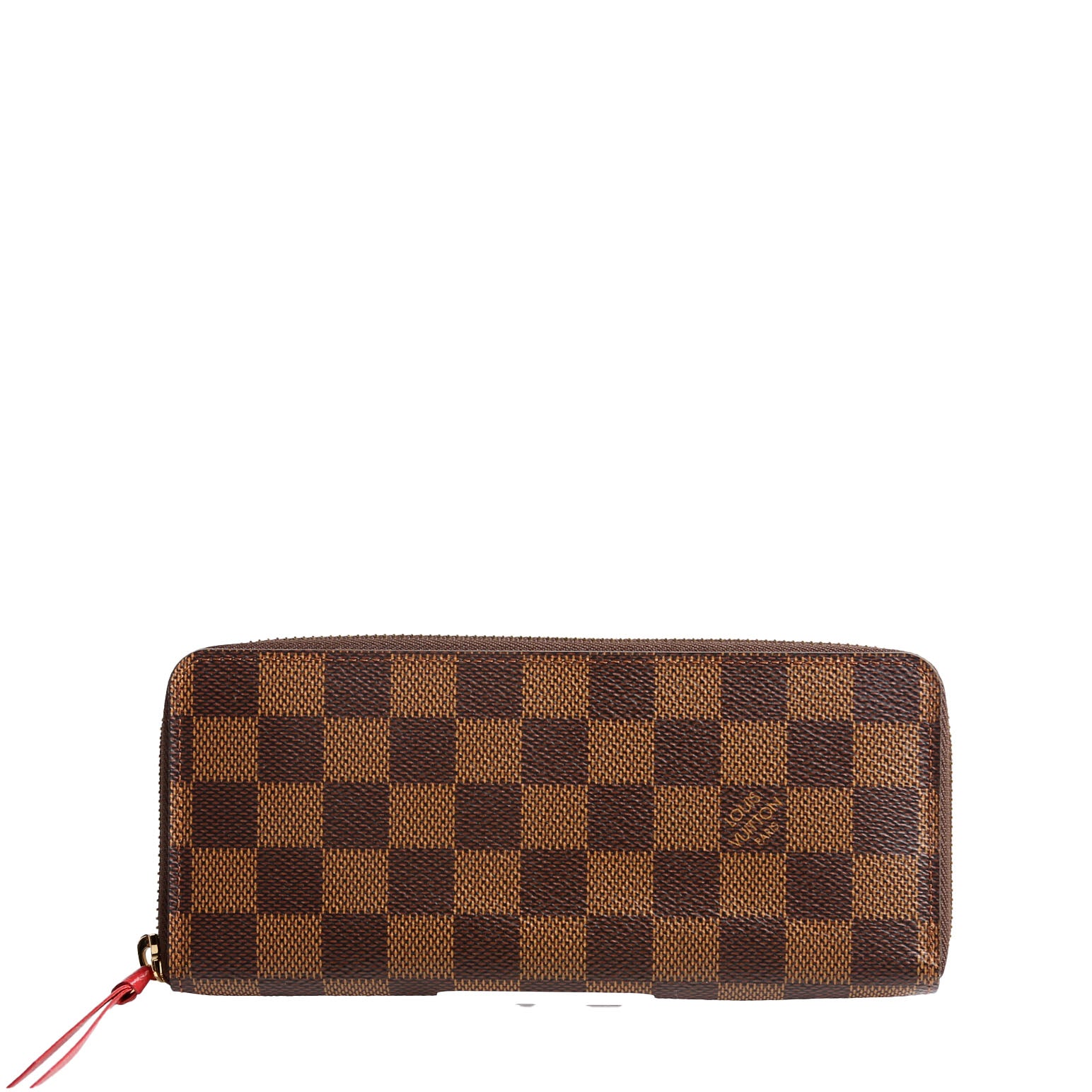 This pre-owned Louis Vuitton Clemence Wallet is guaranteed 100% authentic. The exterior is in the classic Louis Vuitton Damier Ebene coated canvas.