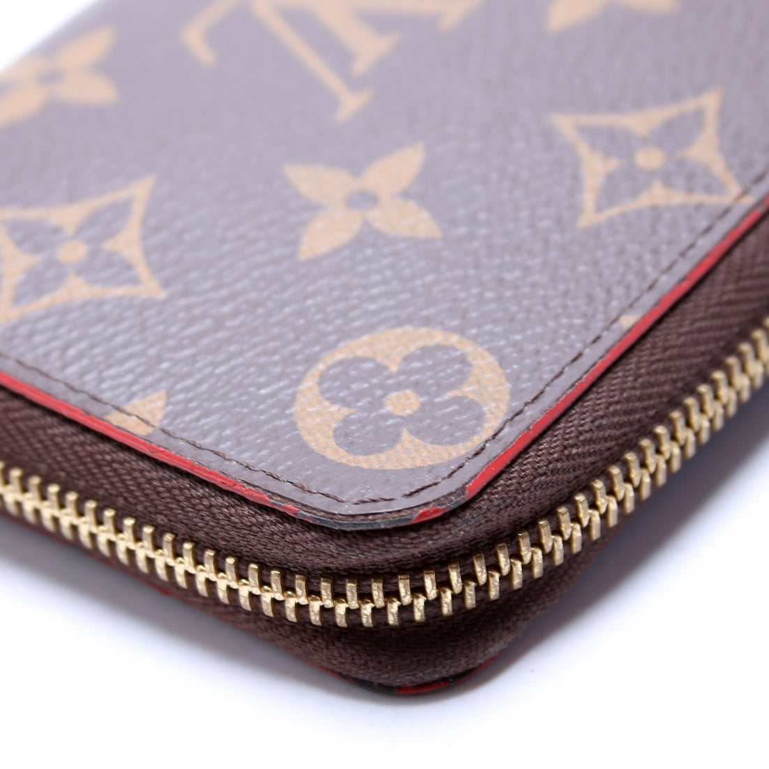 This pre-owned Louis Vuitton Clemence Wallet Flower is guaranteed 100% authentic. The exterior is in the classic Louis Vuitton Monogram coated canvas.