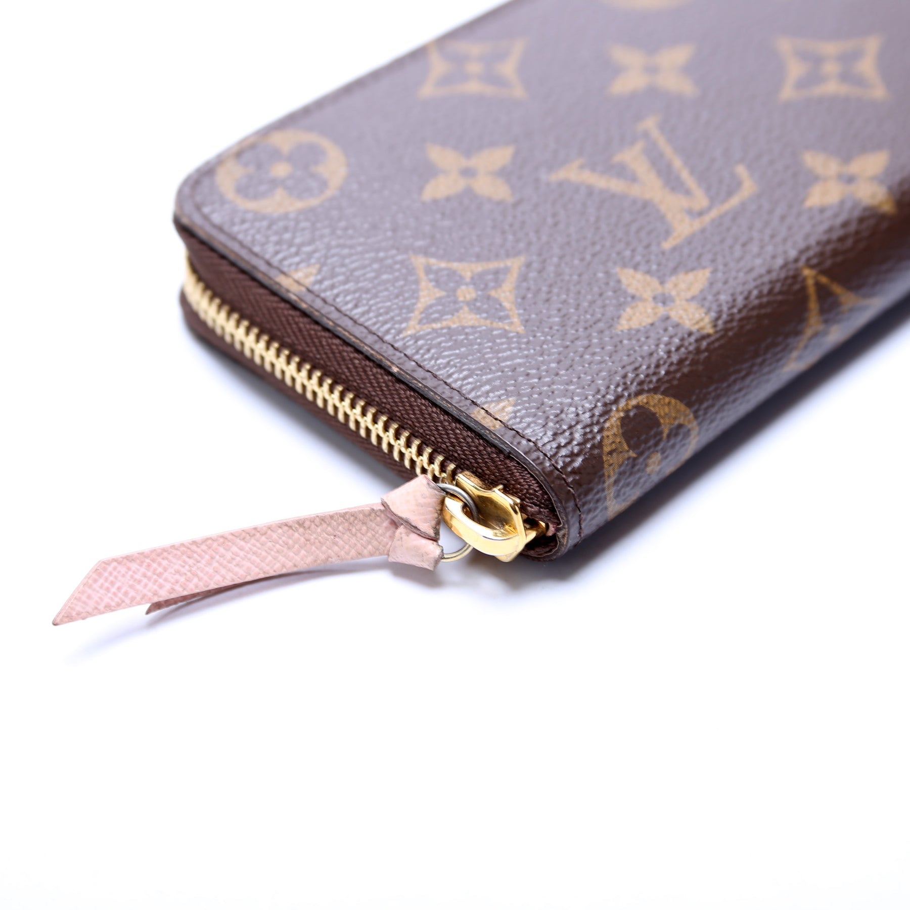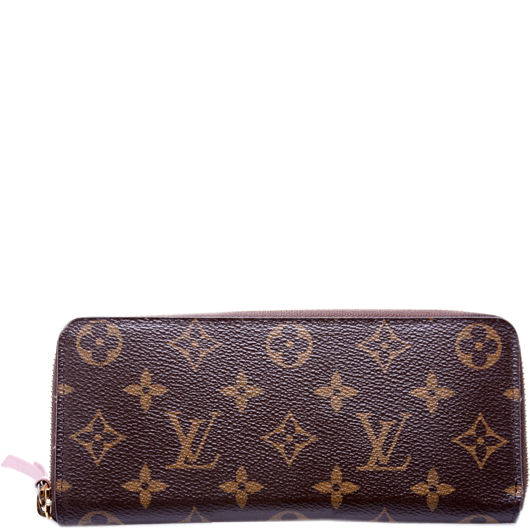This pre-owned Louis Vuitton Clemence Wallet is guaranteed 100% authentic. The exterior is in the classic Louis Vuitton Monogram coated canvas.