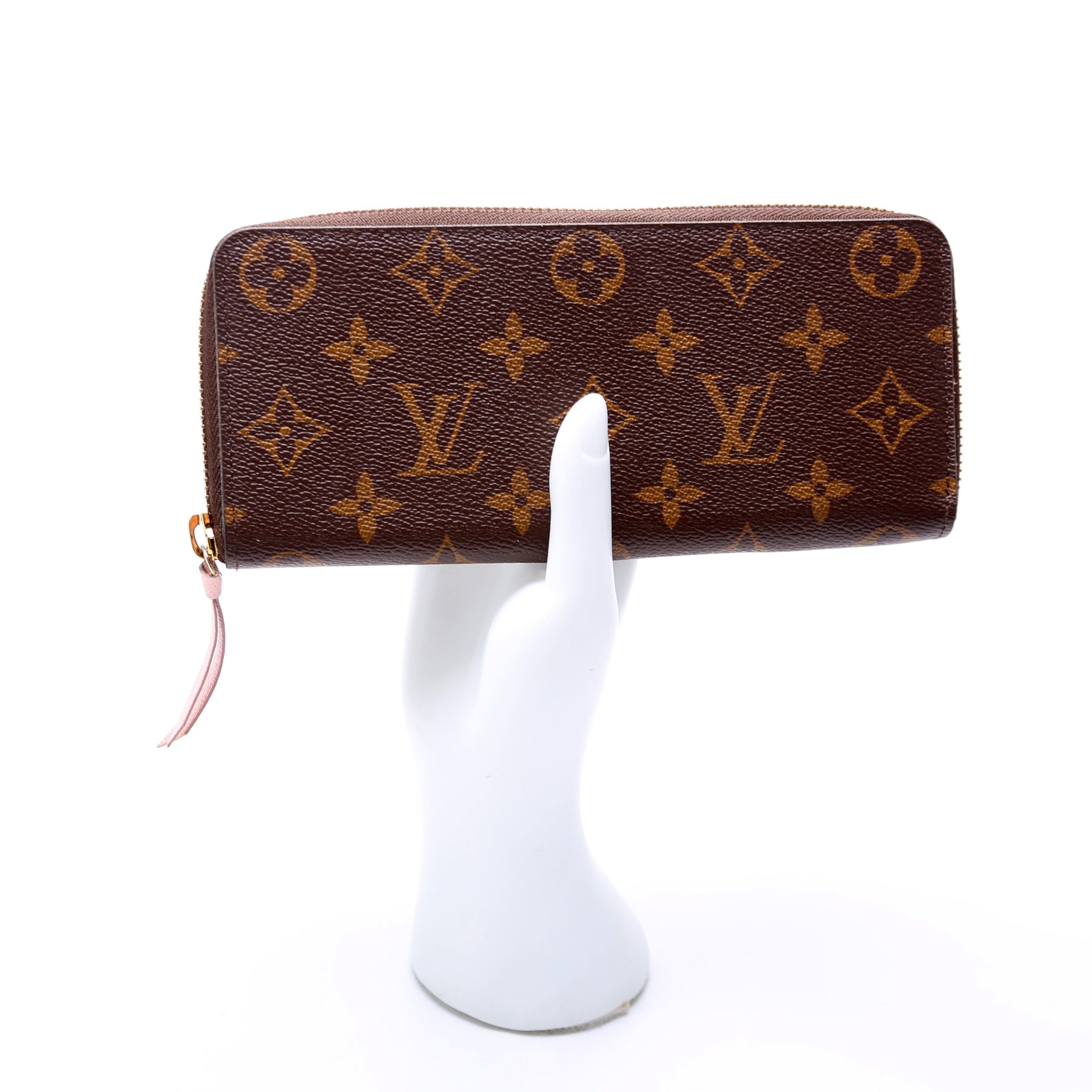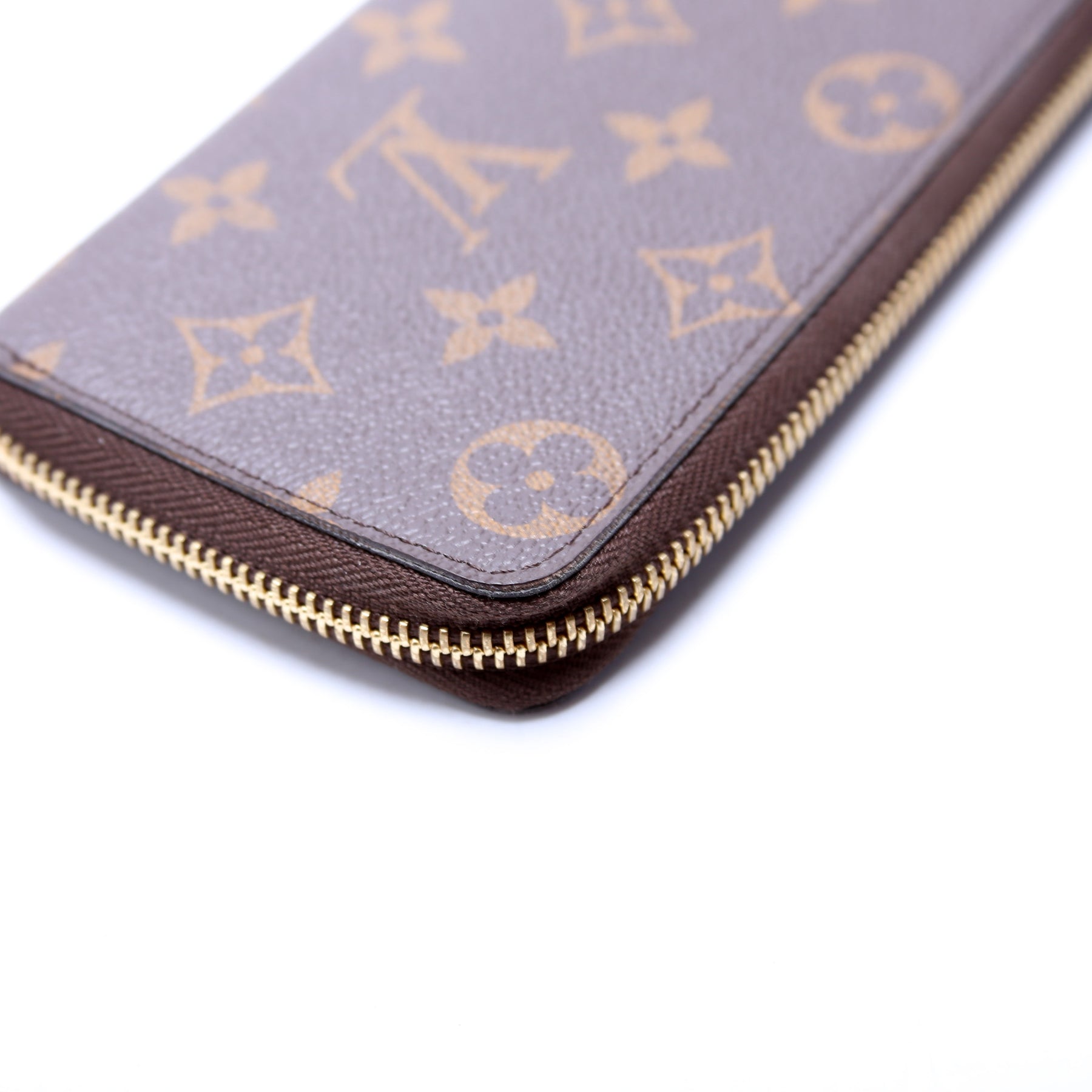 This pre-owned Louis Vuitton Clemence Wallet is guaranteed 100% authentic. The exterior is in the classic Louis Vuitton Monogram coated canvas.