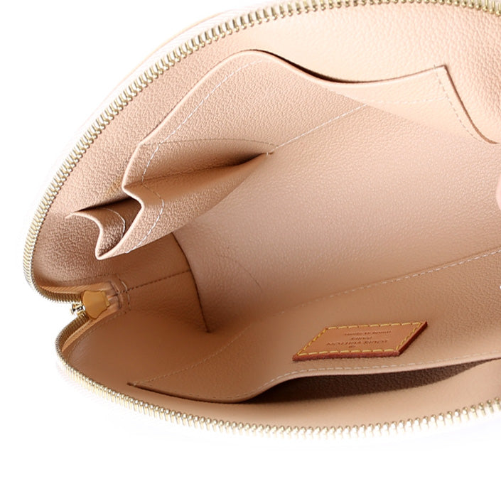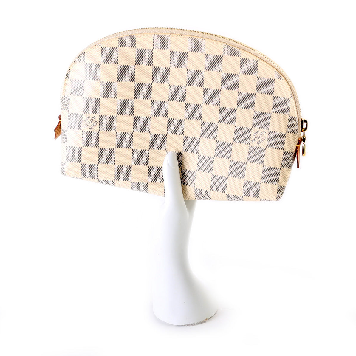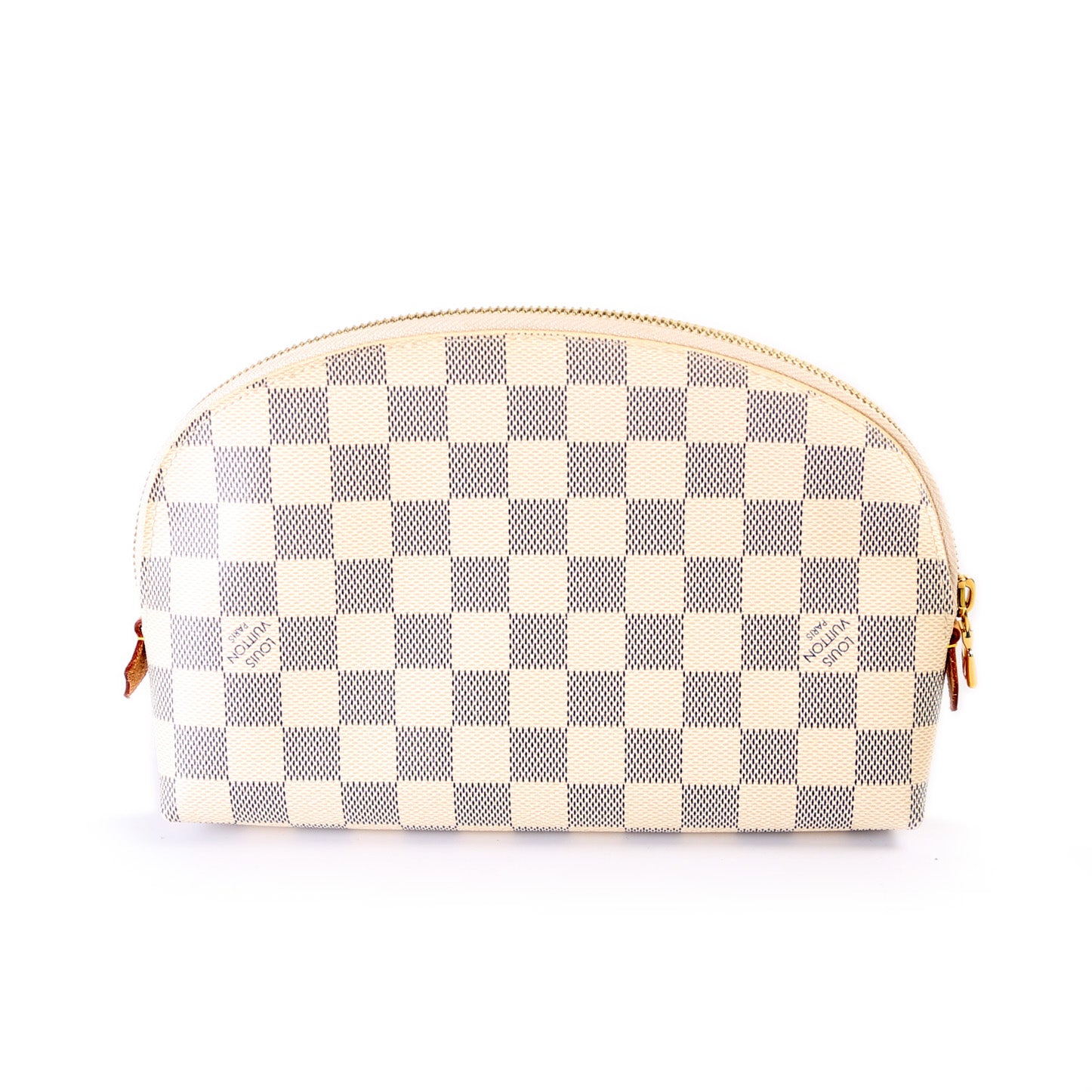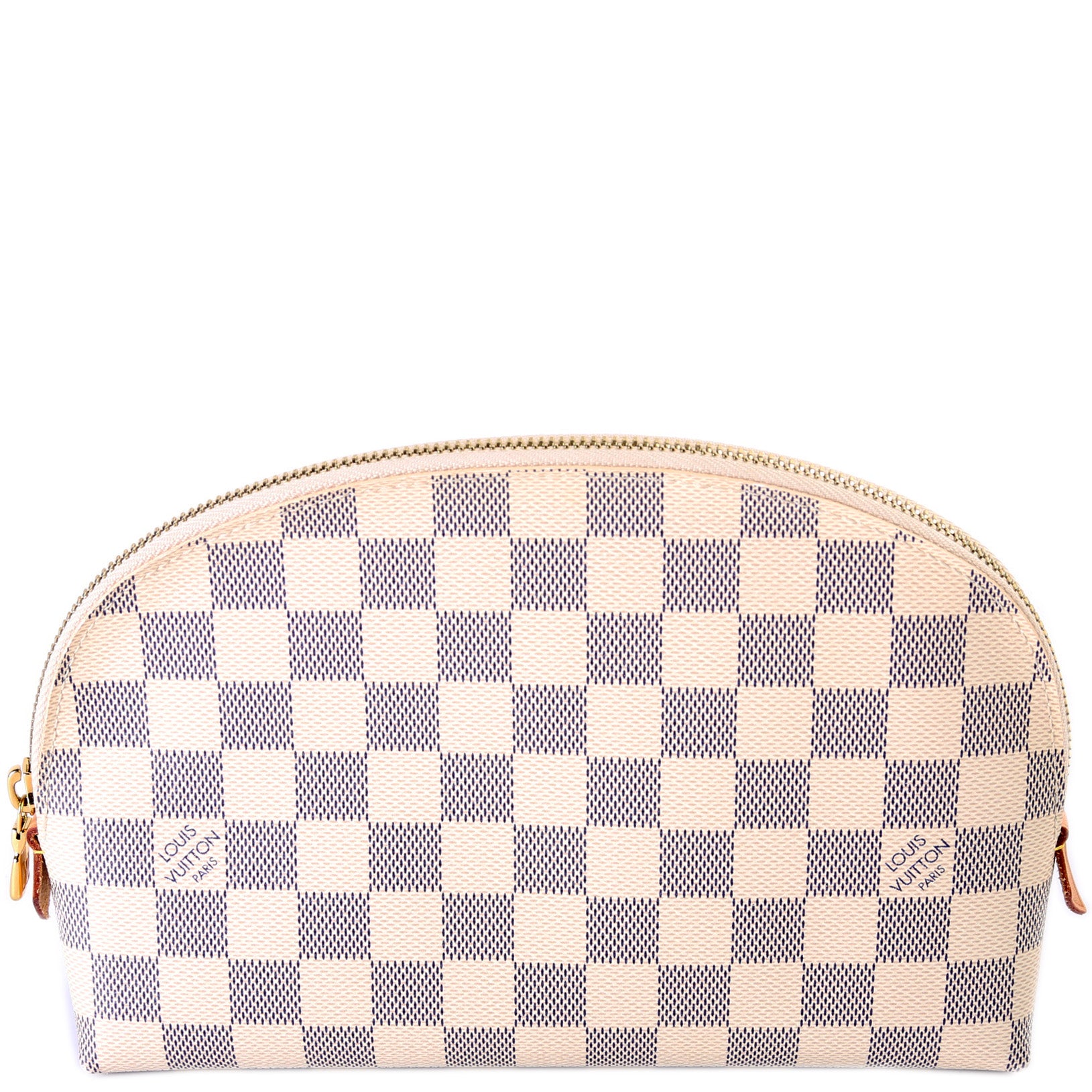 This pre-owned Louis Vuitton Cosmetic Pouch GM is guaranteed 100% authentic. The exterior is in the classic Damier Azur coated canvas.