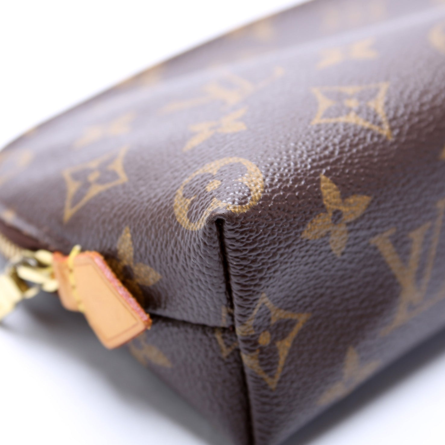 This pre-owned Louis Vuitton Cosmetic Pouch PM is guaranteed 100% authentic. The exterior is in the classic Louis Vuitton Monogram coated canvas.