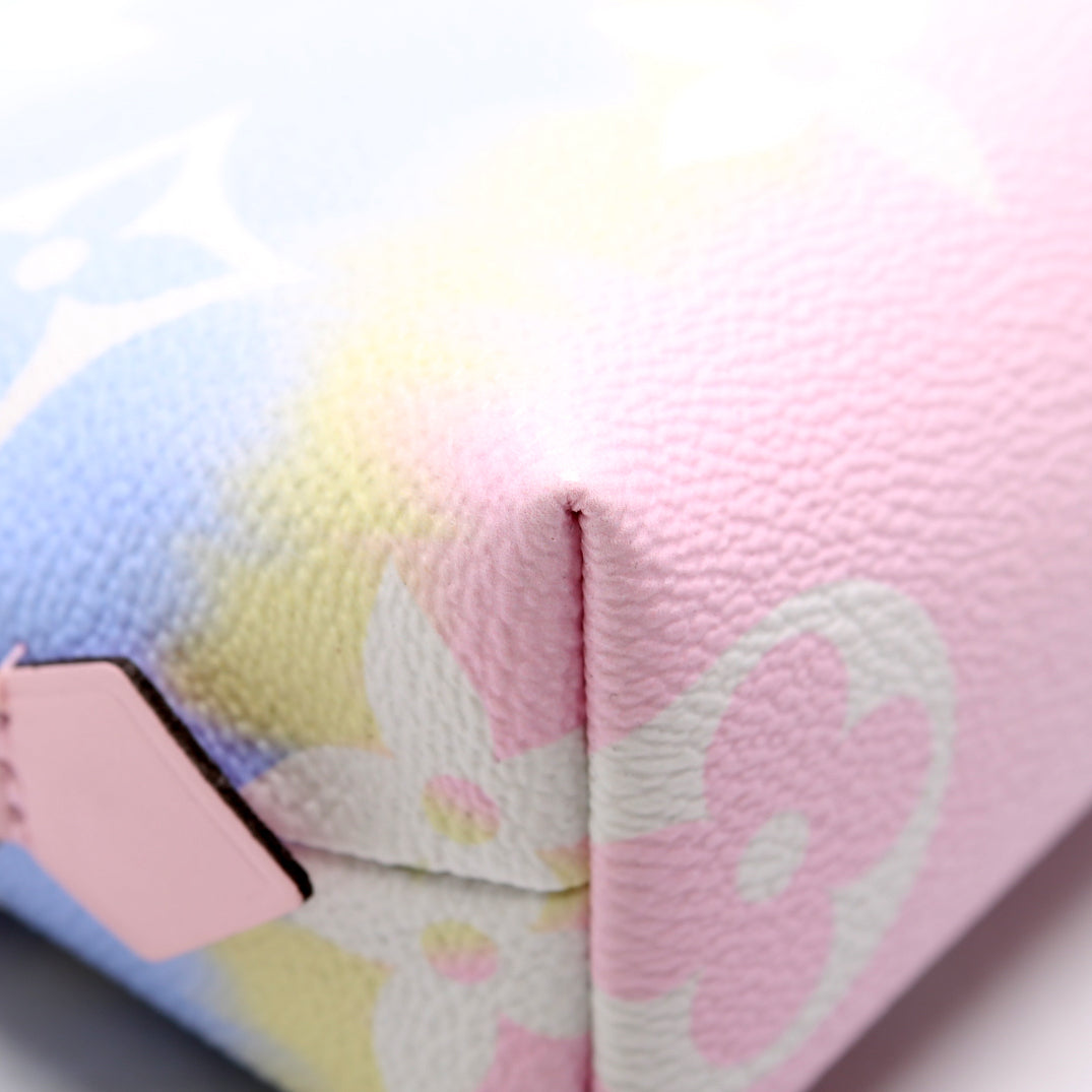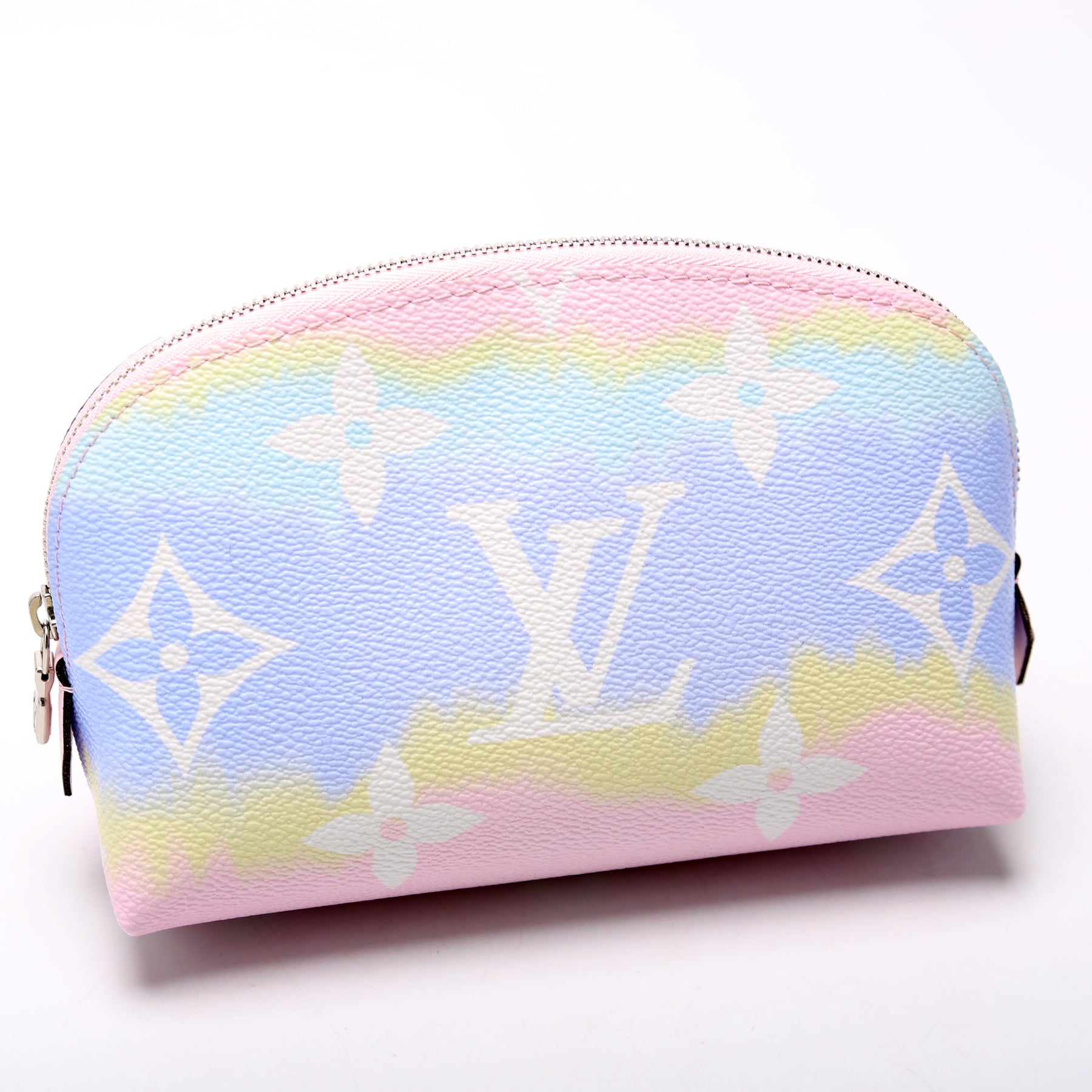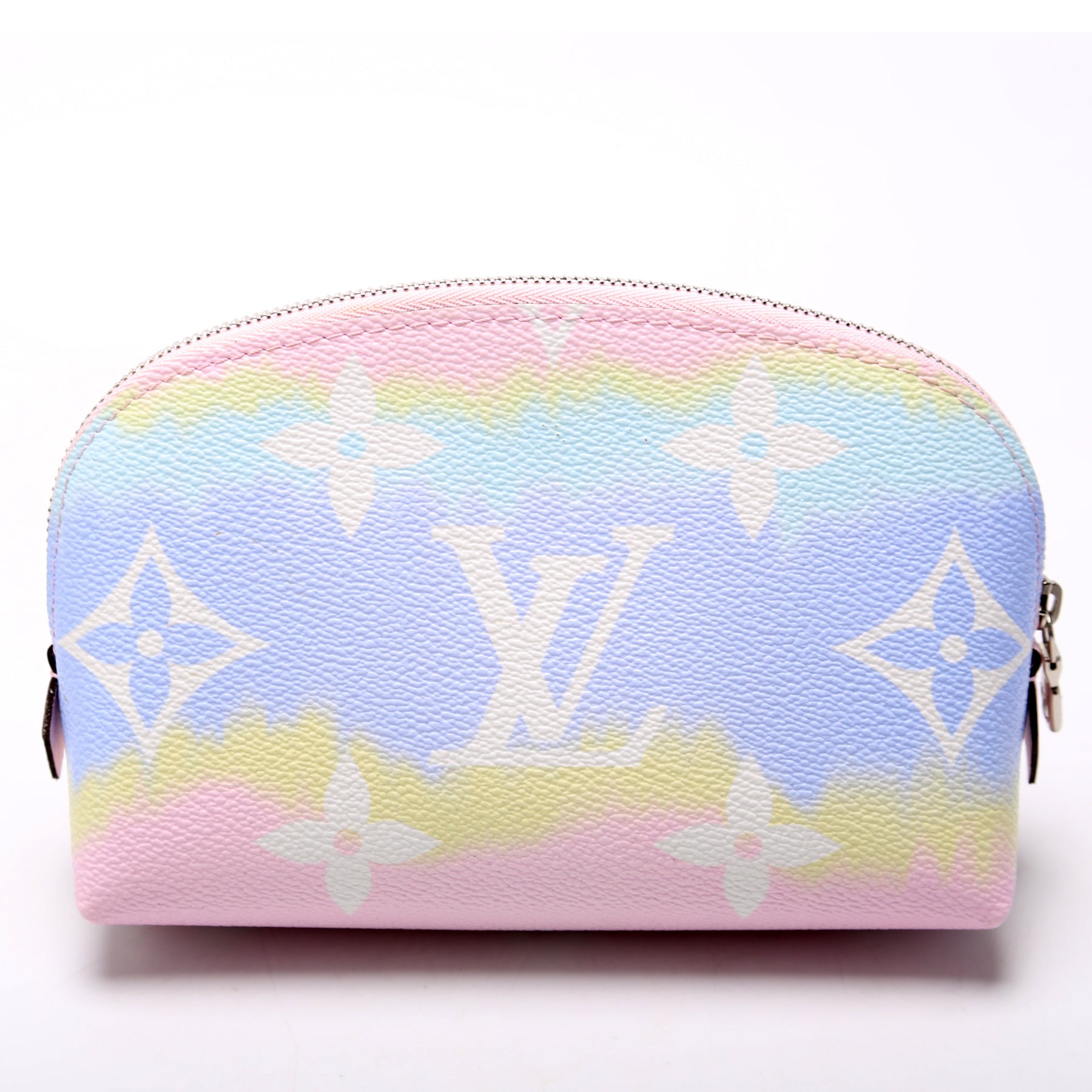 This pre-owned Louis Vuitton Cosmetic Pouch PM is guaranteed 100% authentic. The exterior is in the classic Louis Vuitton Escale coated canvas.