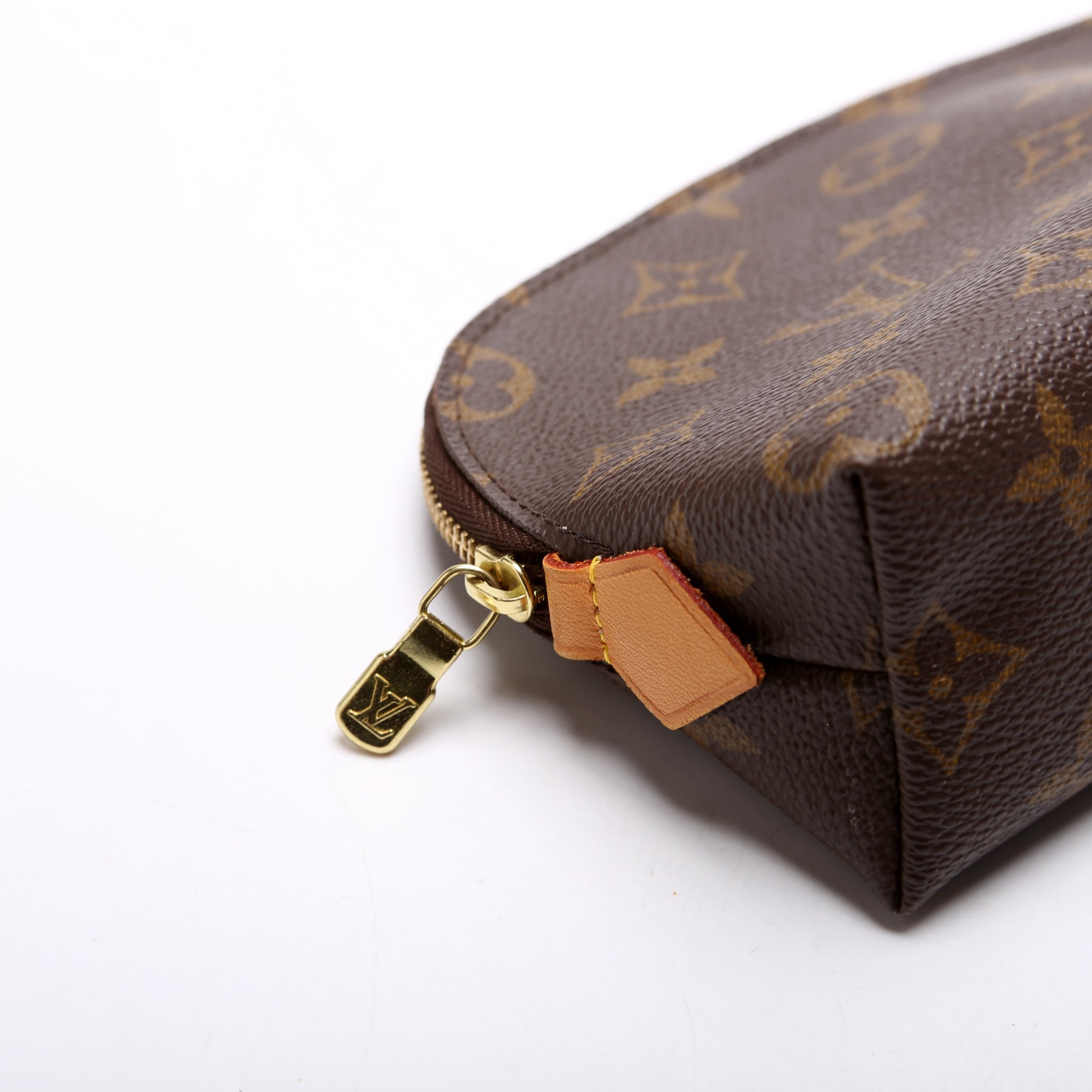 This pre-owned Louis Vuitton Cosmetic Pouch PM is guaranteed 100% authentic. The exterior is in the classic Louis Vuitton Monogram coated canvas.