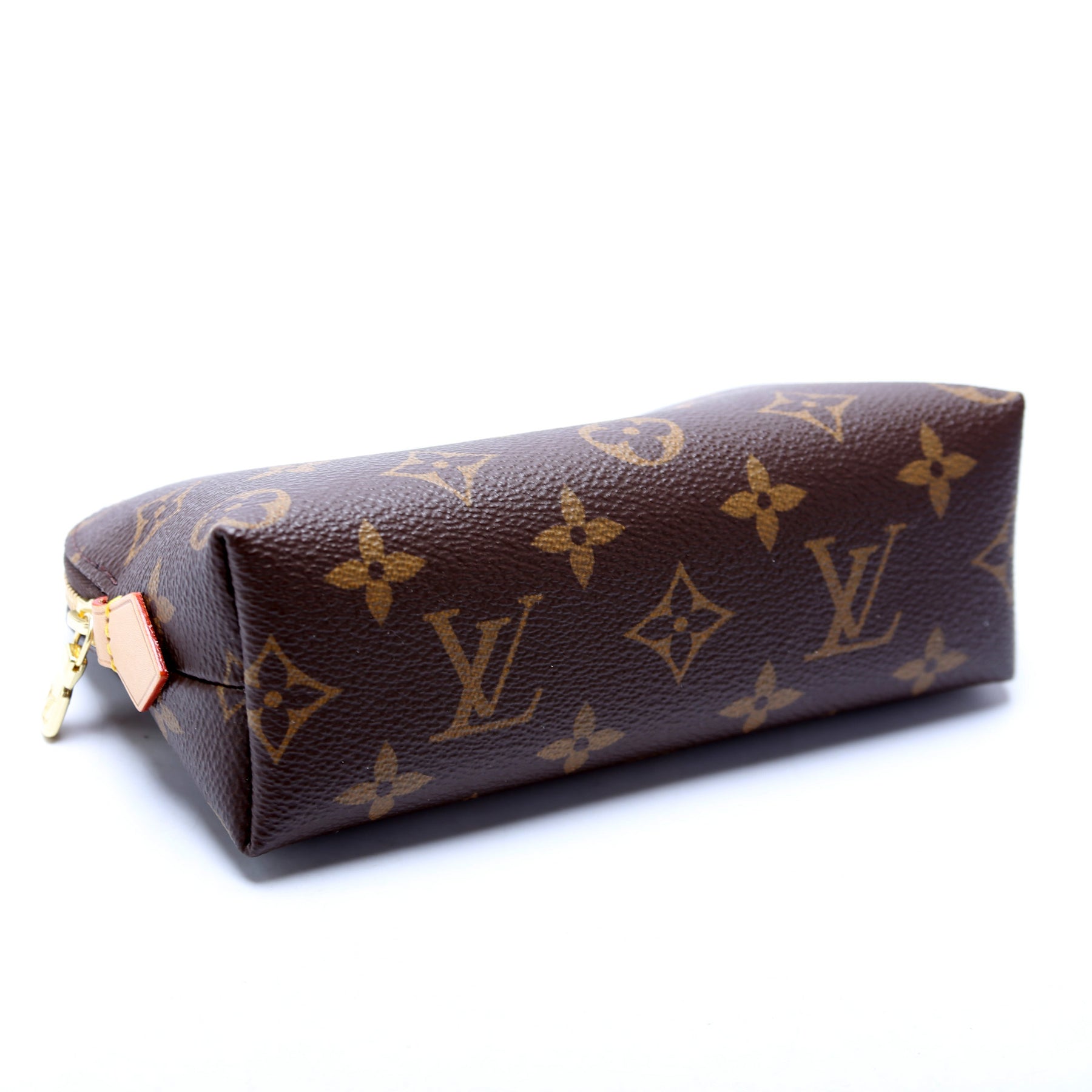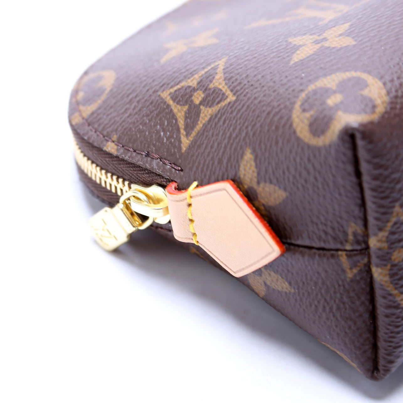 This pre-owned Louis Vuitton Cosmetic Pouch PM is guaranteed 100% authentic. The exterior is in the classic Louis Vuitton Monogram coated canvas.