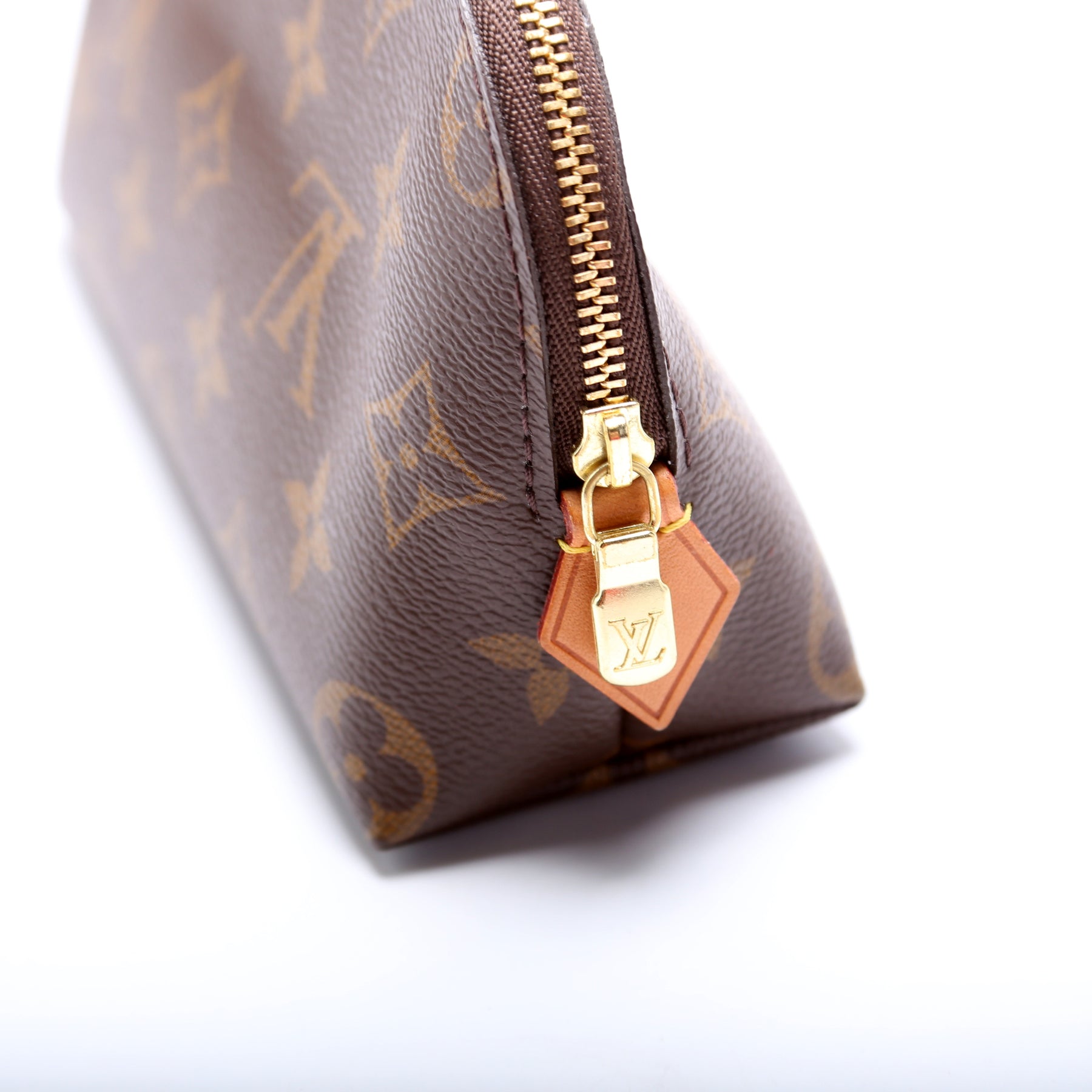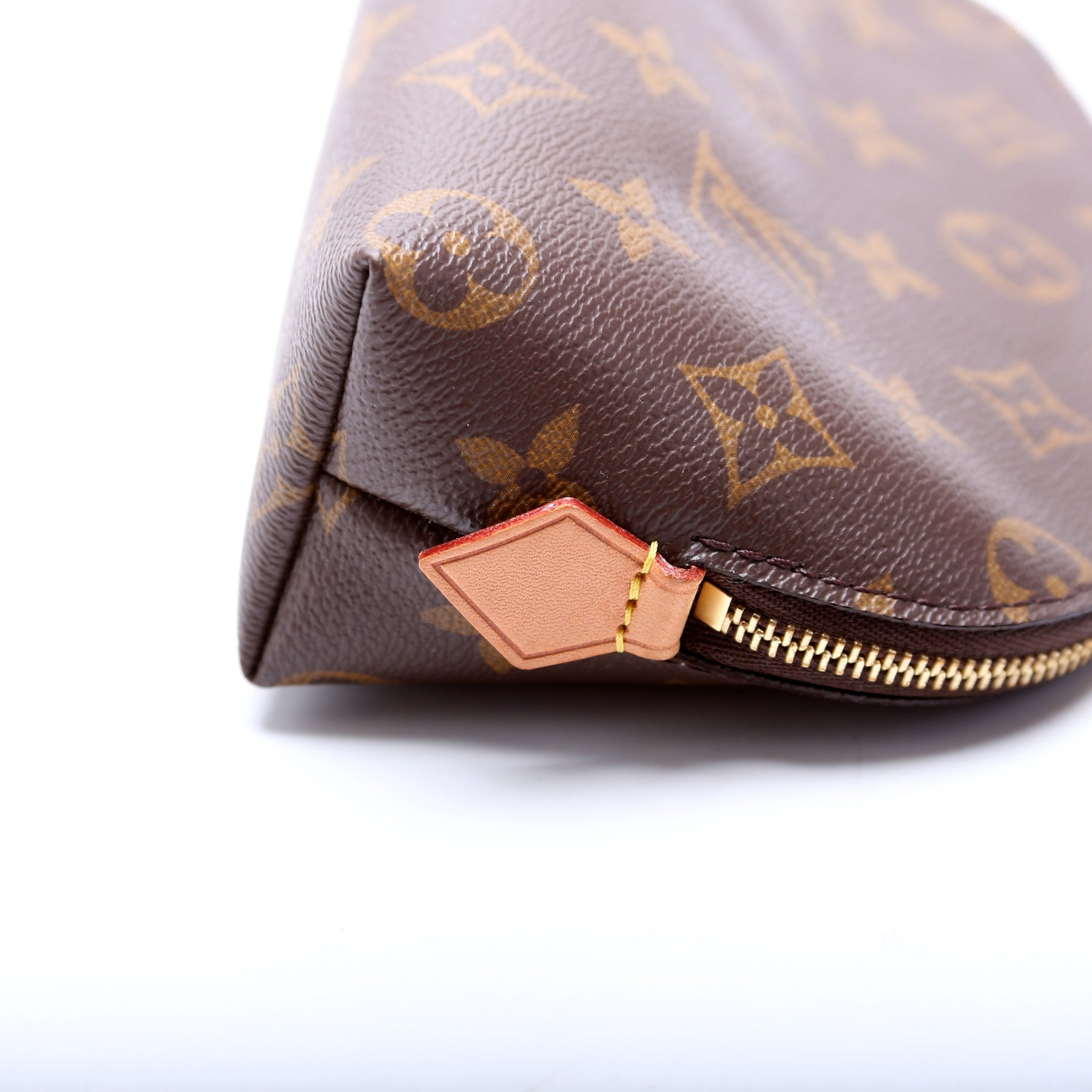 This pre-owned Louis Vuitton Cosmetic Pouch PM is guaranteed 100% authentic. The exterior is in the classic Louis Vuitton Monogram coated canvas.