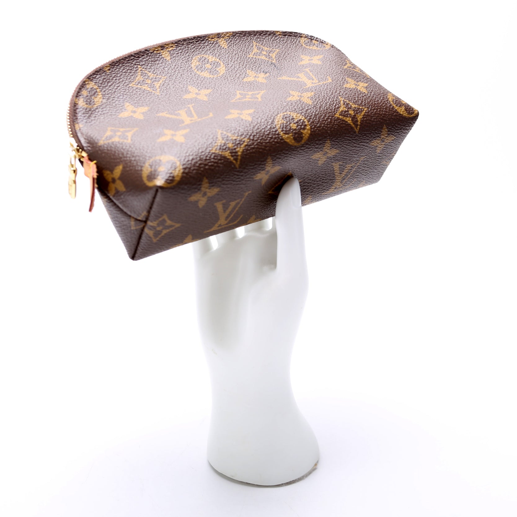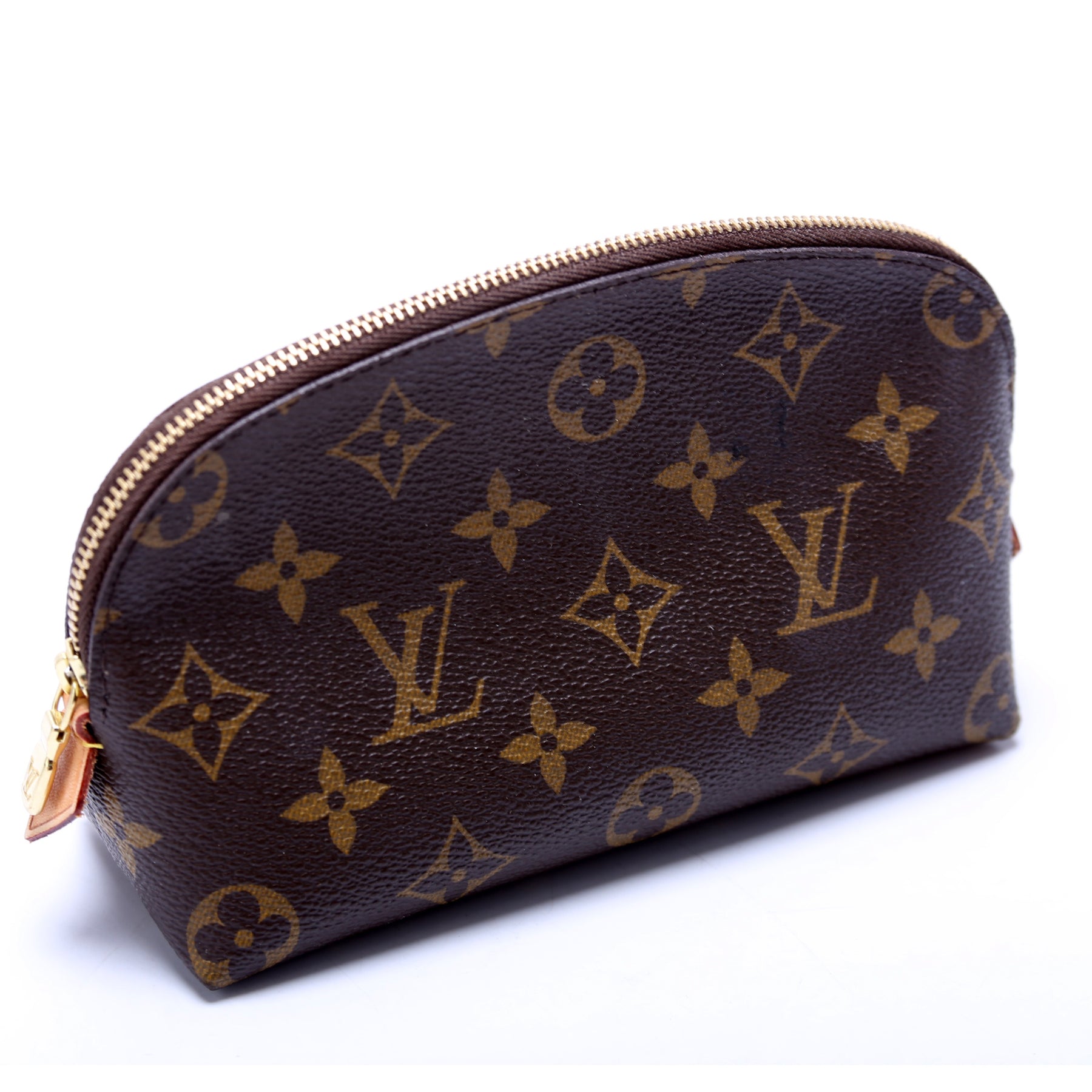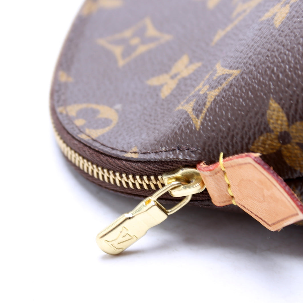 This pre-owned Louis Vuitton Cosmetic Pouch PM is guaranteed 100% authentic. The exterior is in the classic Louis Vuitton Monogram coated canvas.