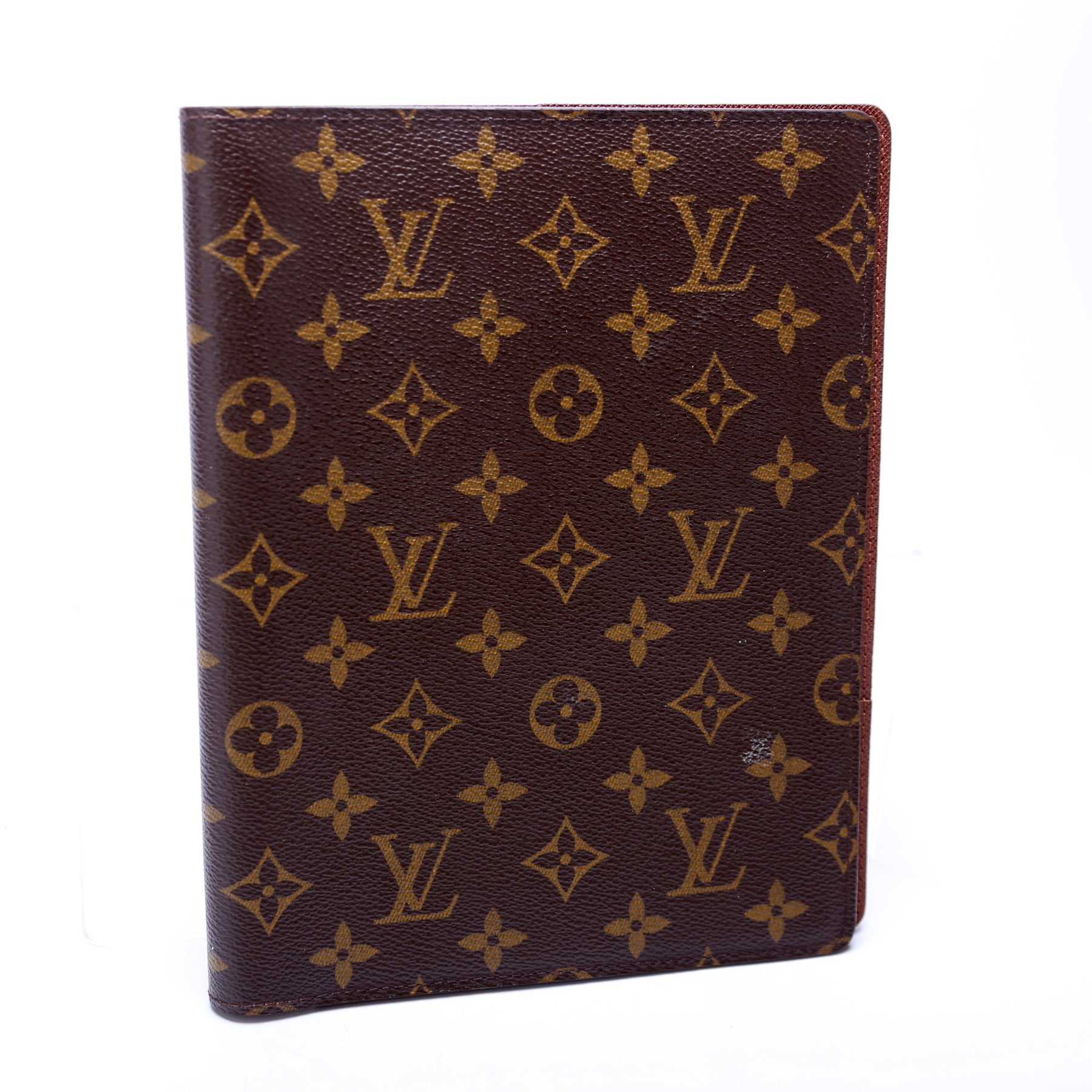 This pre-owned Louis Vuitton Desk Agenda is guaranteed 100% authentic. The exterior is in the classic Louis Vuitton Monogram coated canvas.