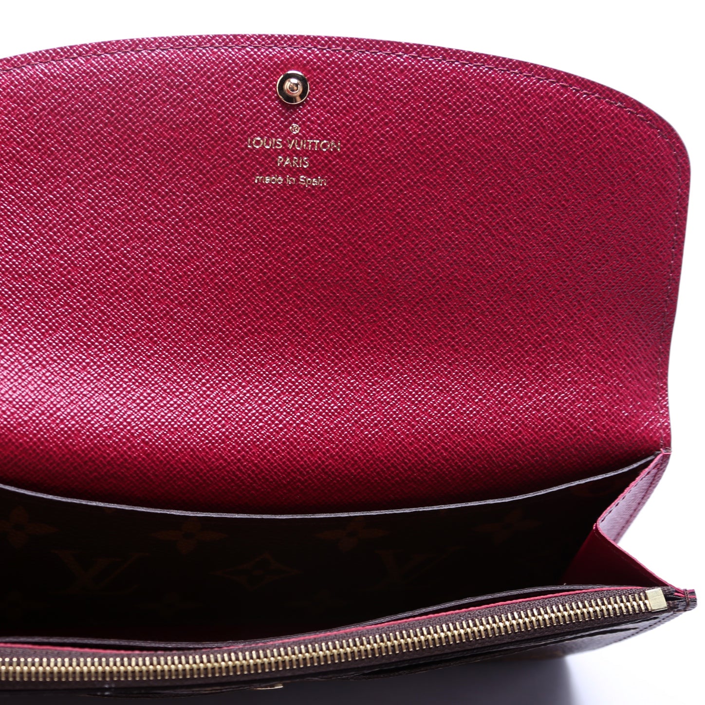 This pre-owned Louis Vuitton Emilie Wallet is guaranteed 100% authentic. The exterior is in the classic Louis Vuitton Monogram coated canvas.