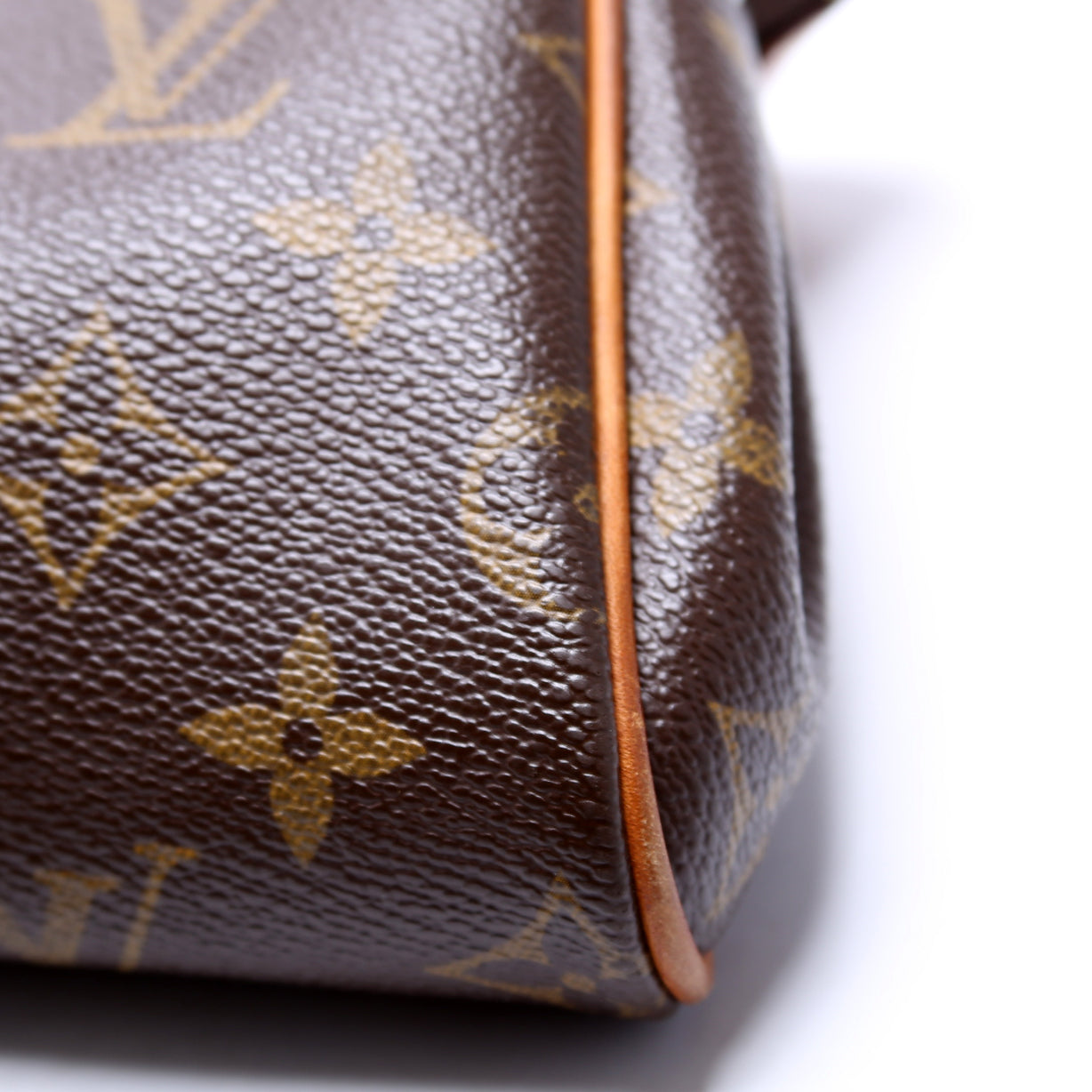 This pre-owned Louis Vuitton Eva Clutch is guaranteed 100% authentic. The exterior is in the classic Monogram coated canvas.