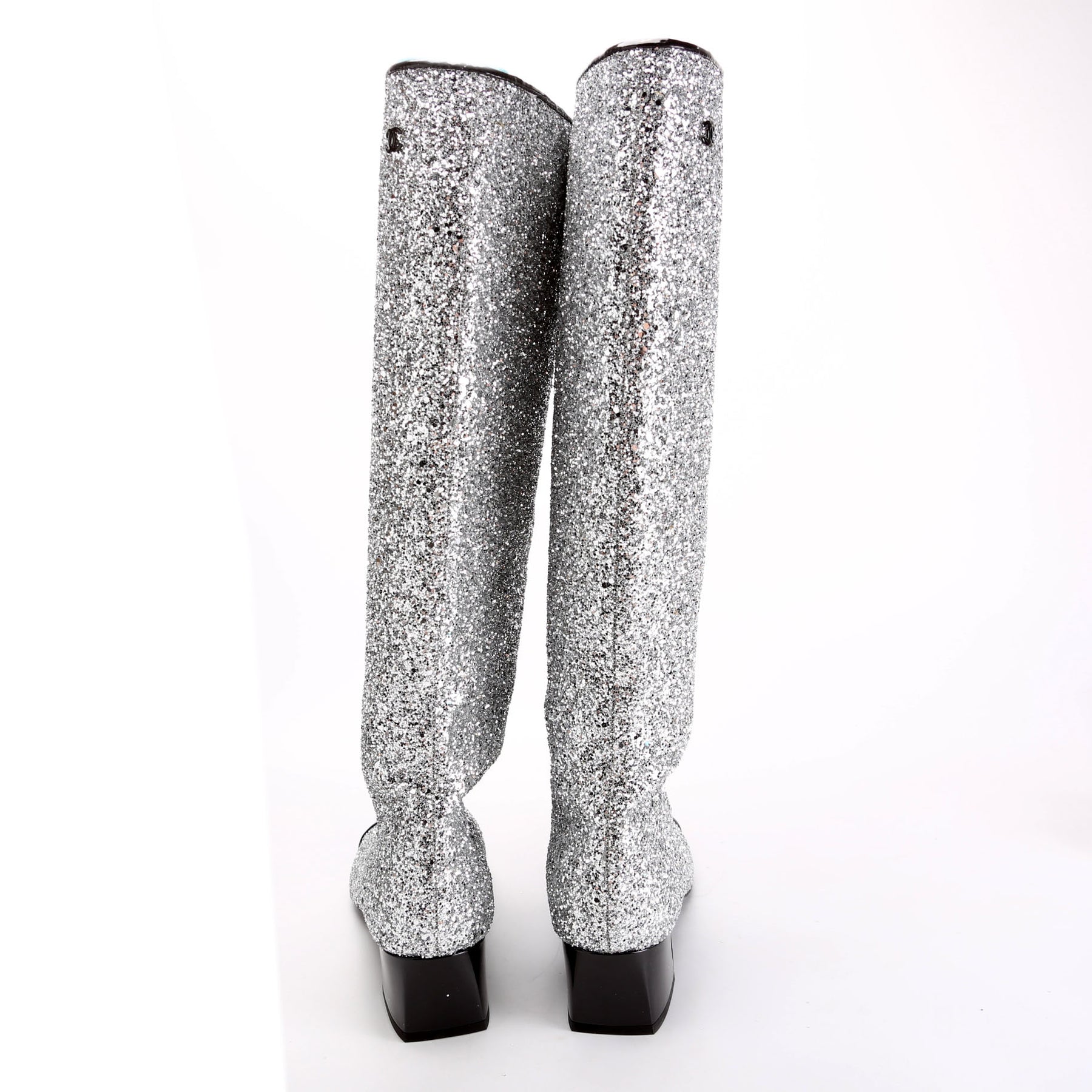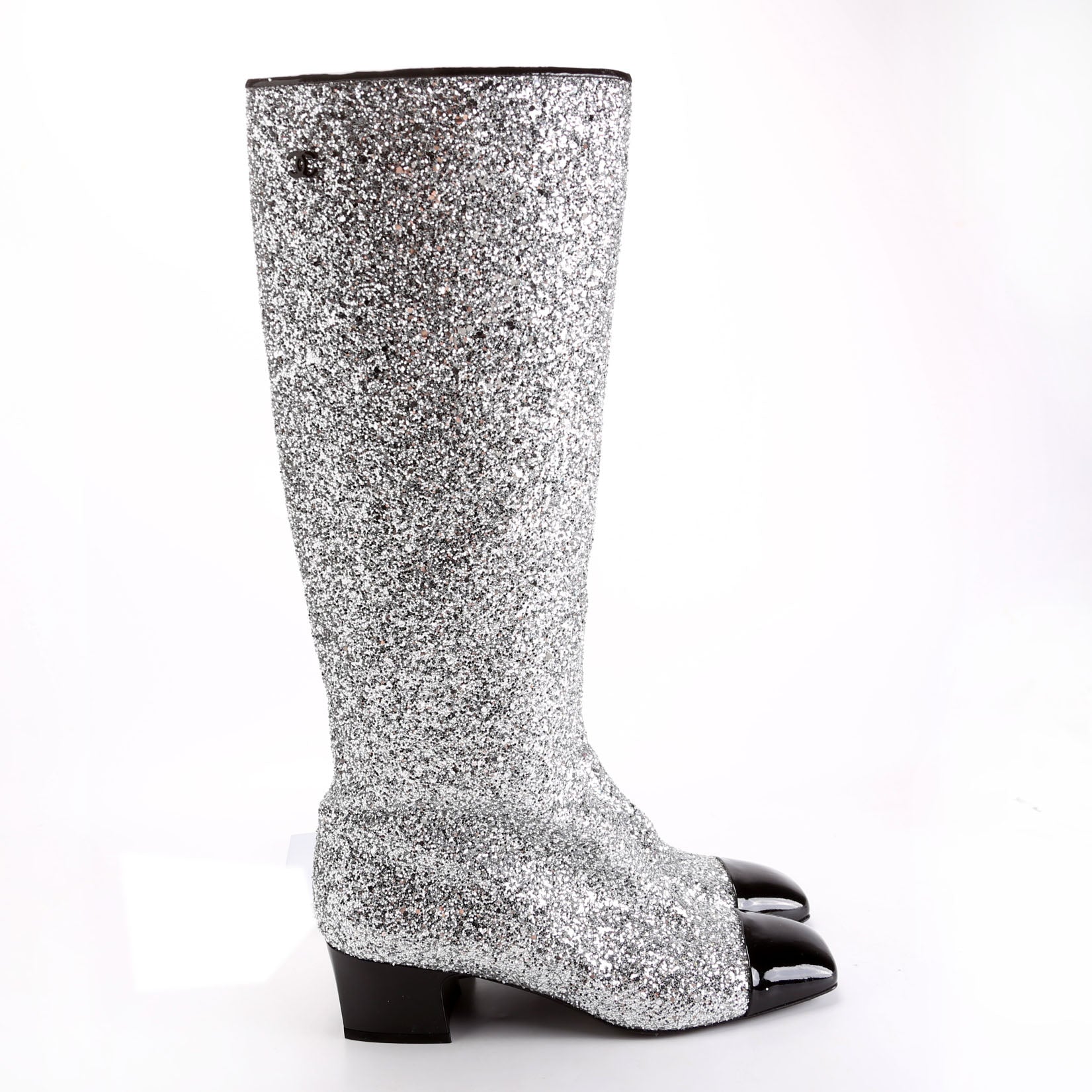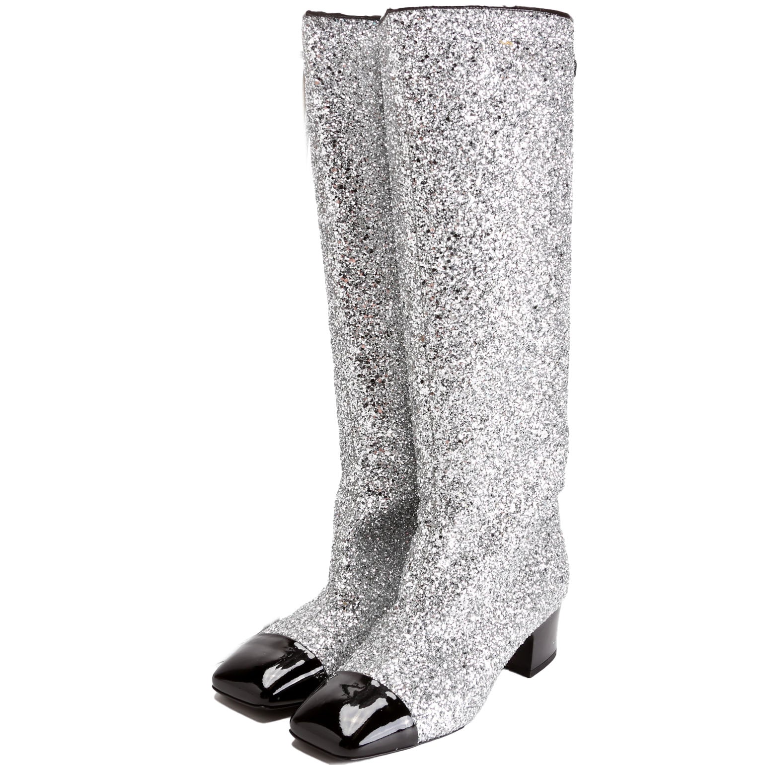 These pre-owned Chanel Fantasy Glitter High Boots are guaranteed 100% authentic.