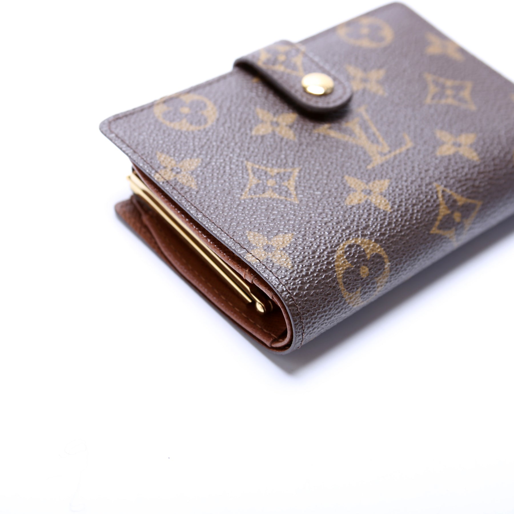 This pre-owned Louis Vuitton French Purse Wallet is guaranteed 100% authentic. The exterior is in the classic Louis Vuitton Monogram coated canvas.