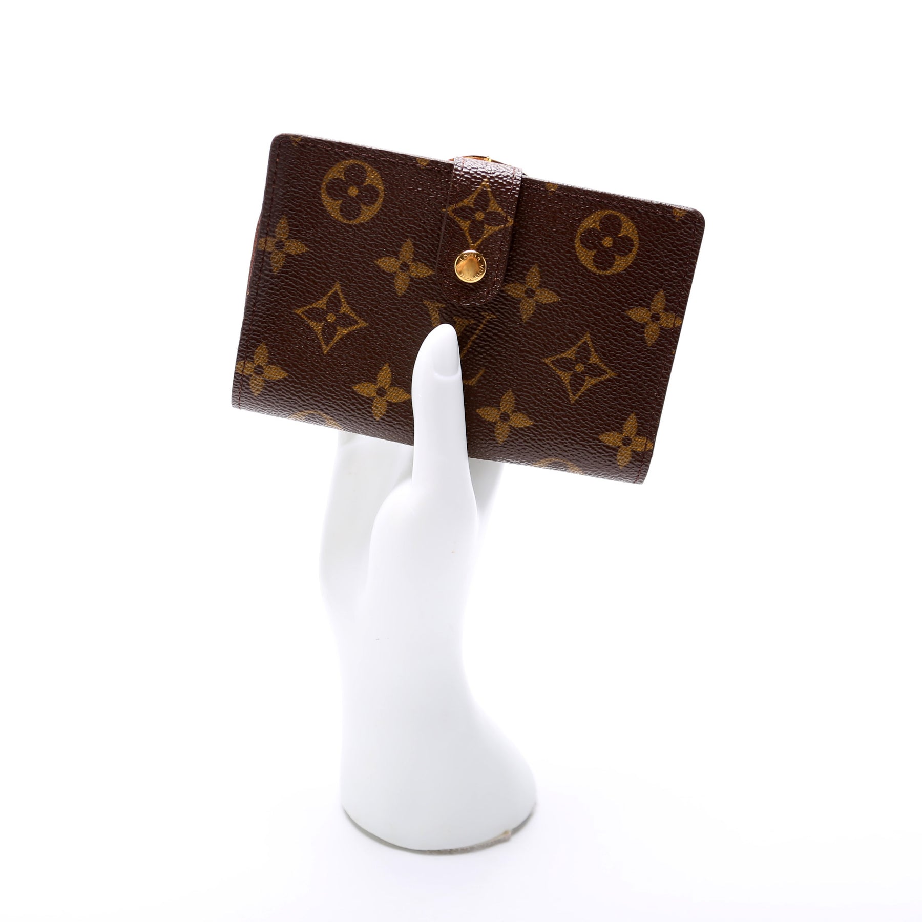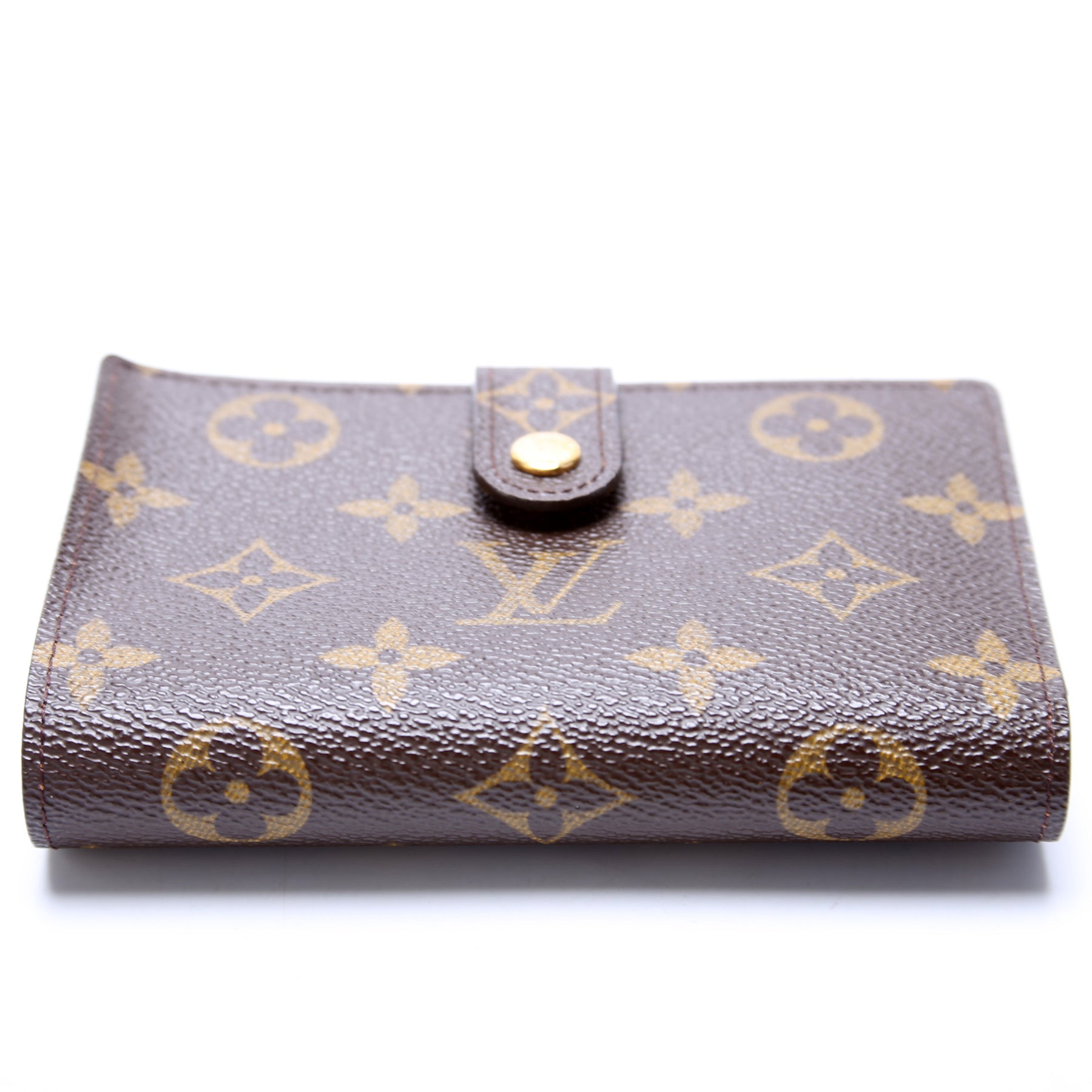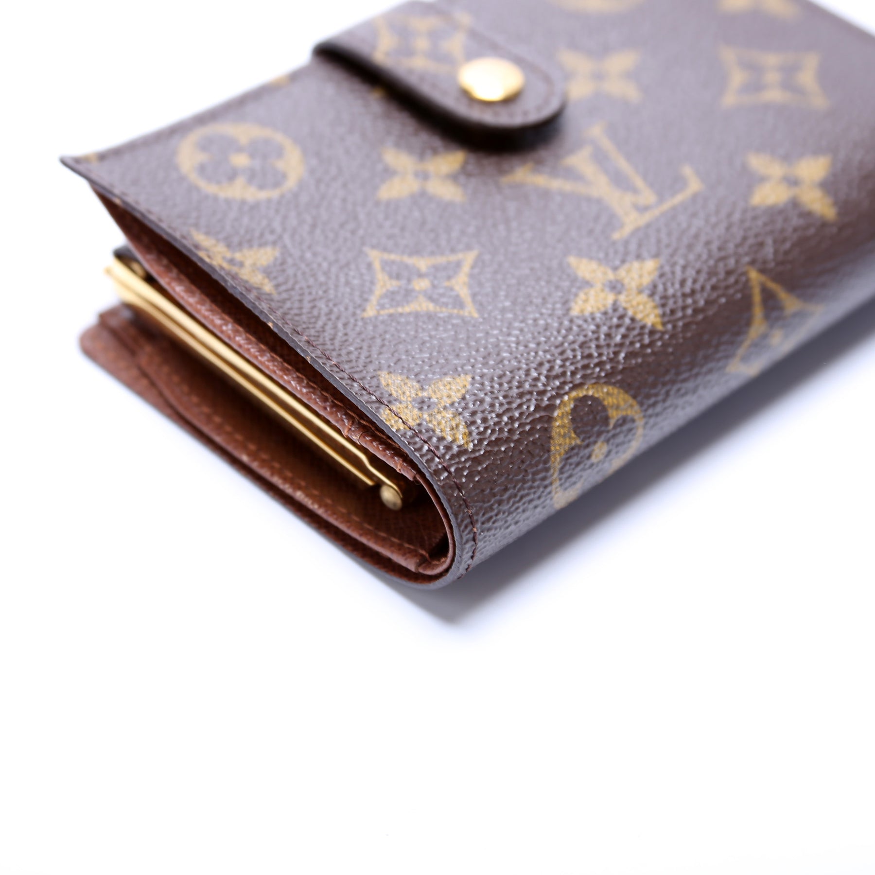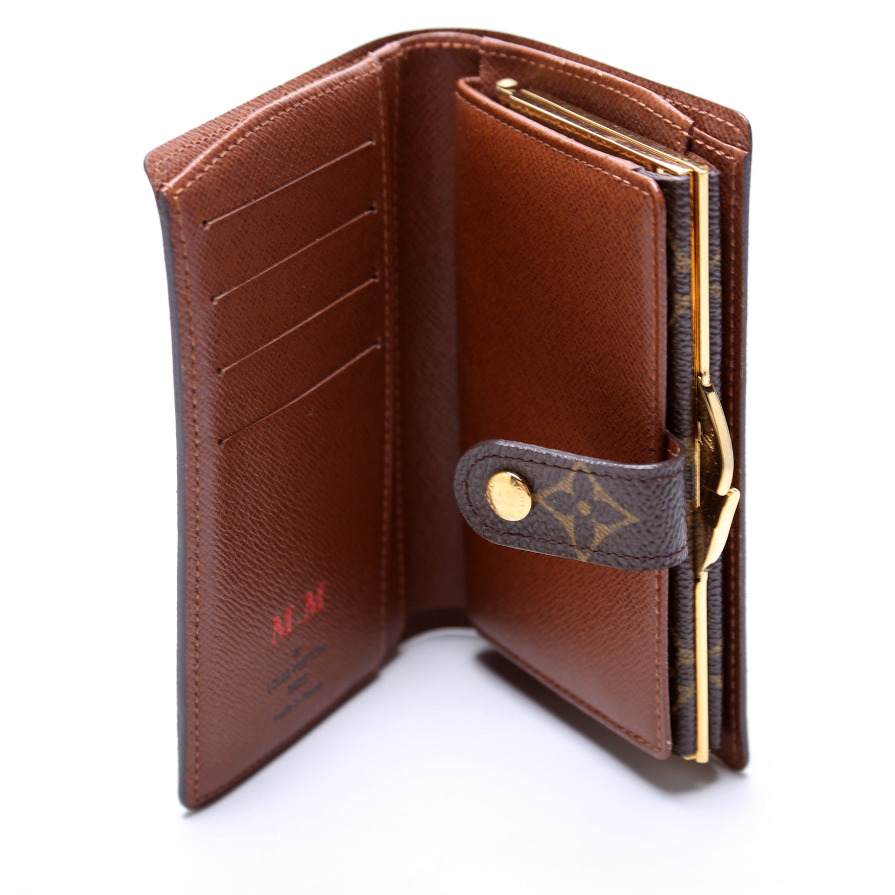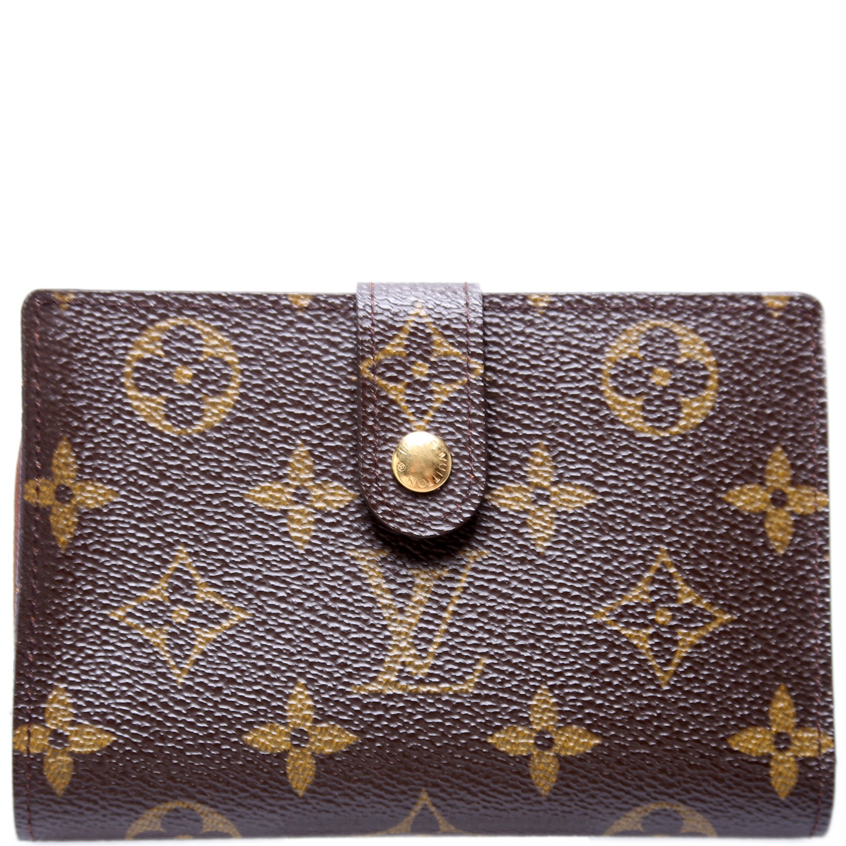 This pre-owned Louis Vuitton French Purse Wallet is guaranteed 100% authentic. The exterior is in the classic Louis Vuitton Monogram coated canvas.