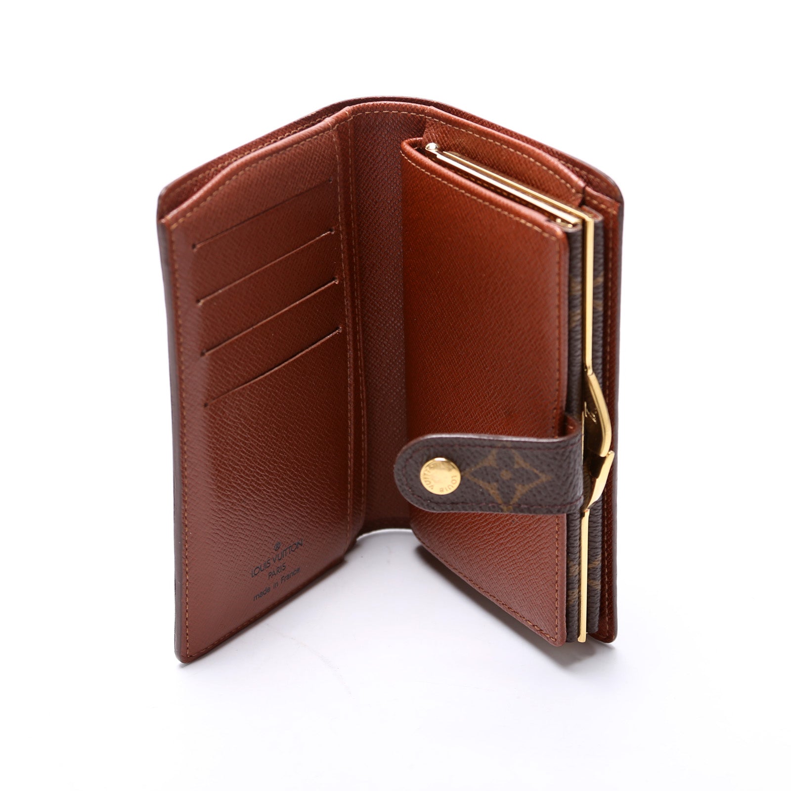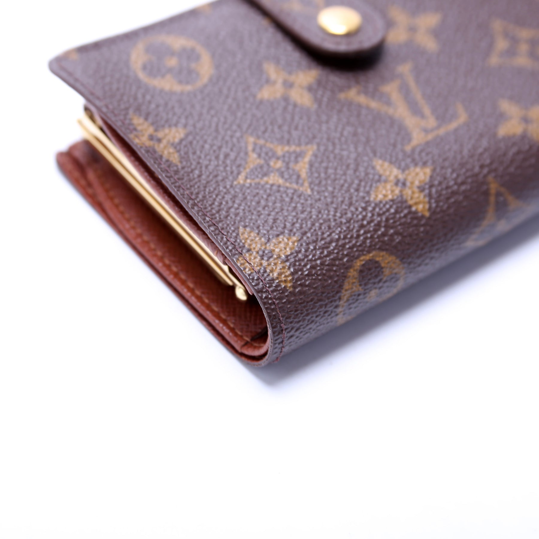 This pre-owned Louis Vuitton French Purse Wallet is guaranteed 100% authentic. The exterior is in the classic Louis Vuitton Monogram coated canvas.