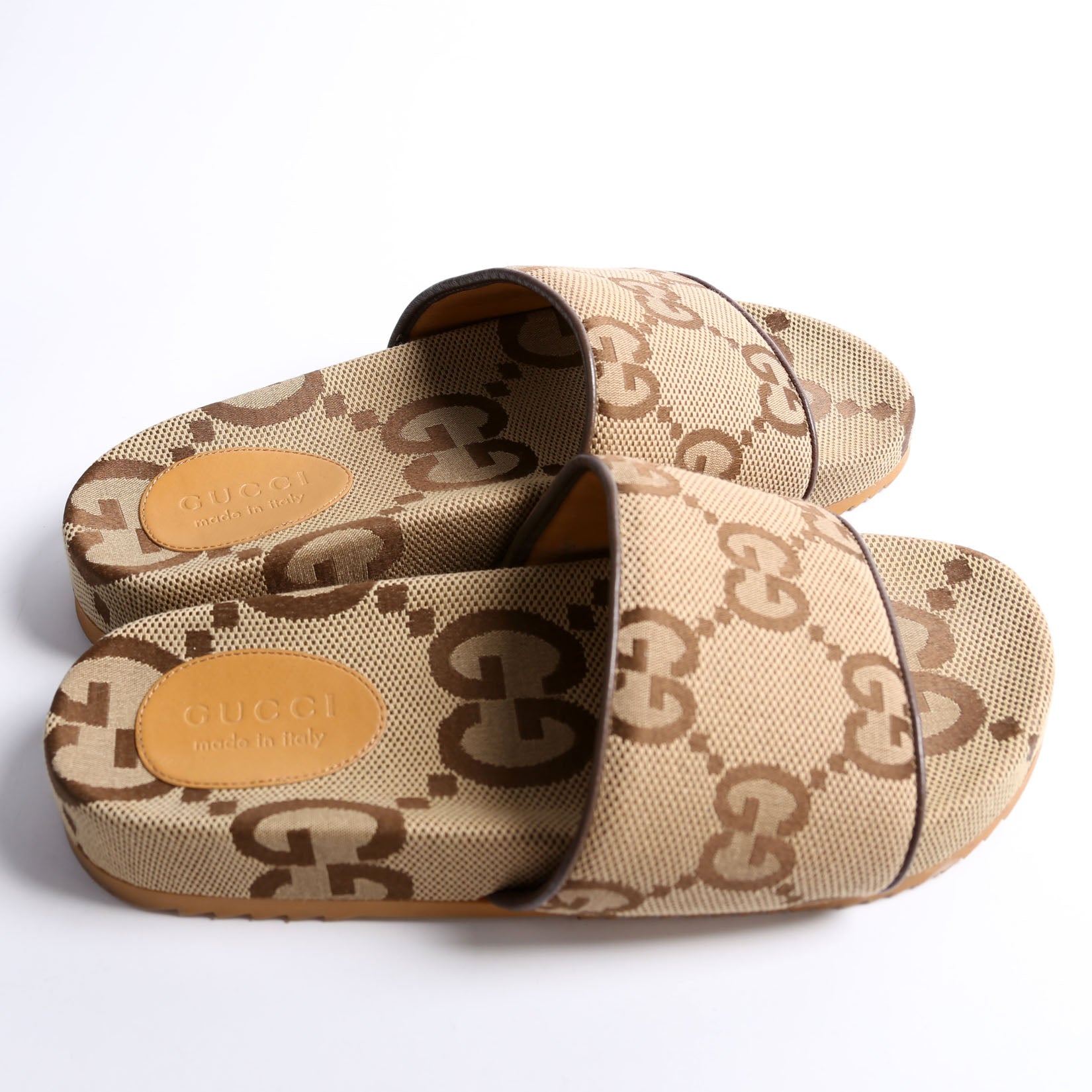 These pre-owned Gucci GG Maxi Canvas Slides are guaranteed 100% authentic.