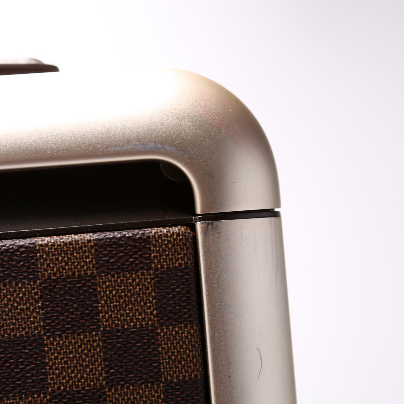 Leather Handle: The handles have minor wear throughout. The leather luggage tag shows minor wear.
