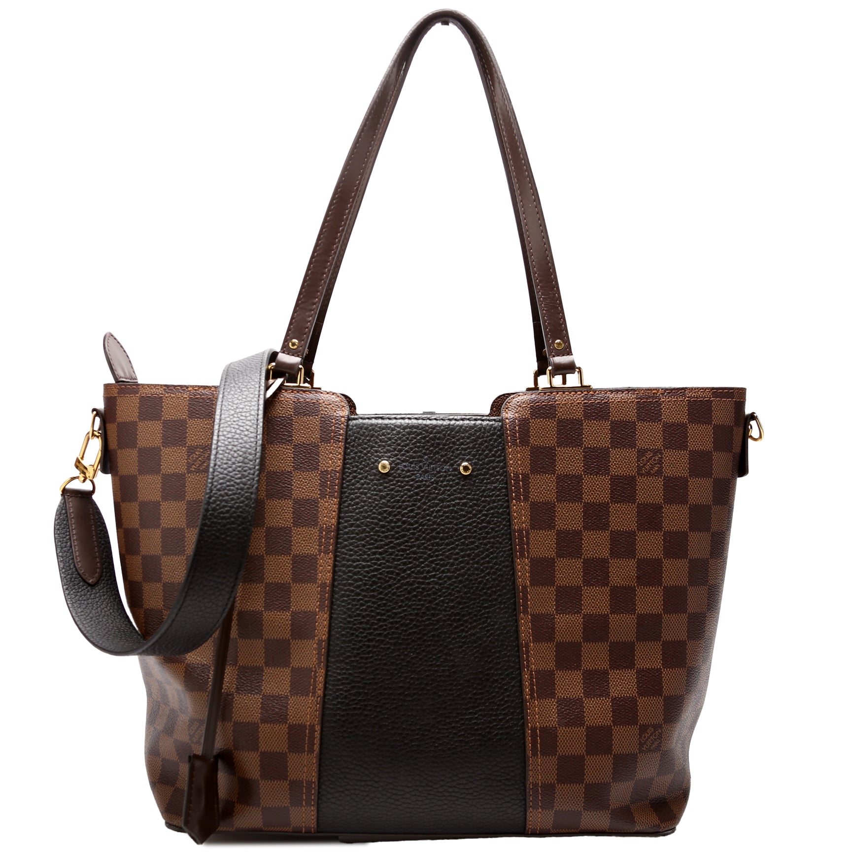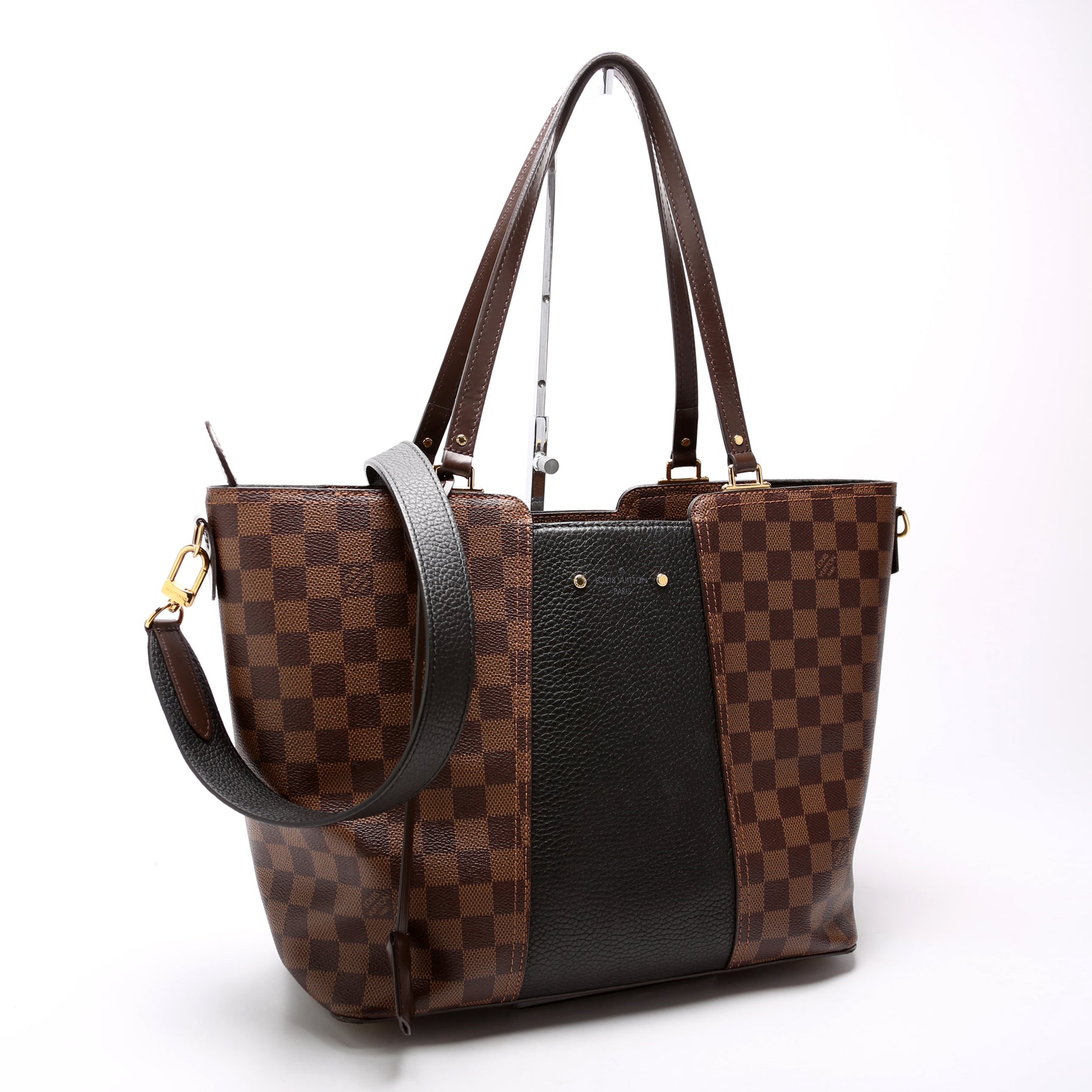 This pre-owned Louis Vuitton Jersey Bag is guaranteed 100% authentic. The exterior is in the classic Louis Vuitton Damier Ebene coated canvas.