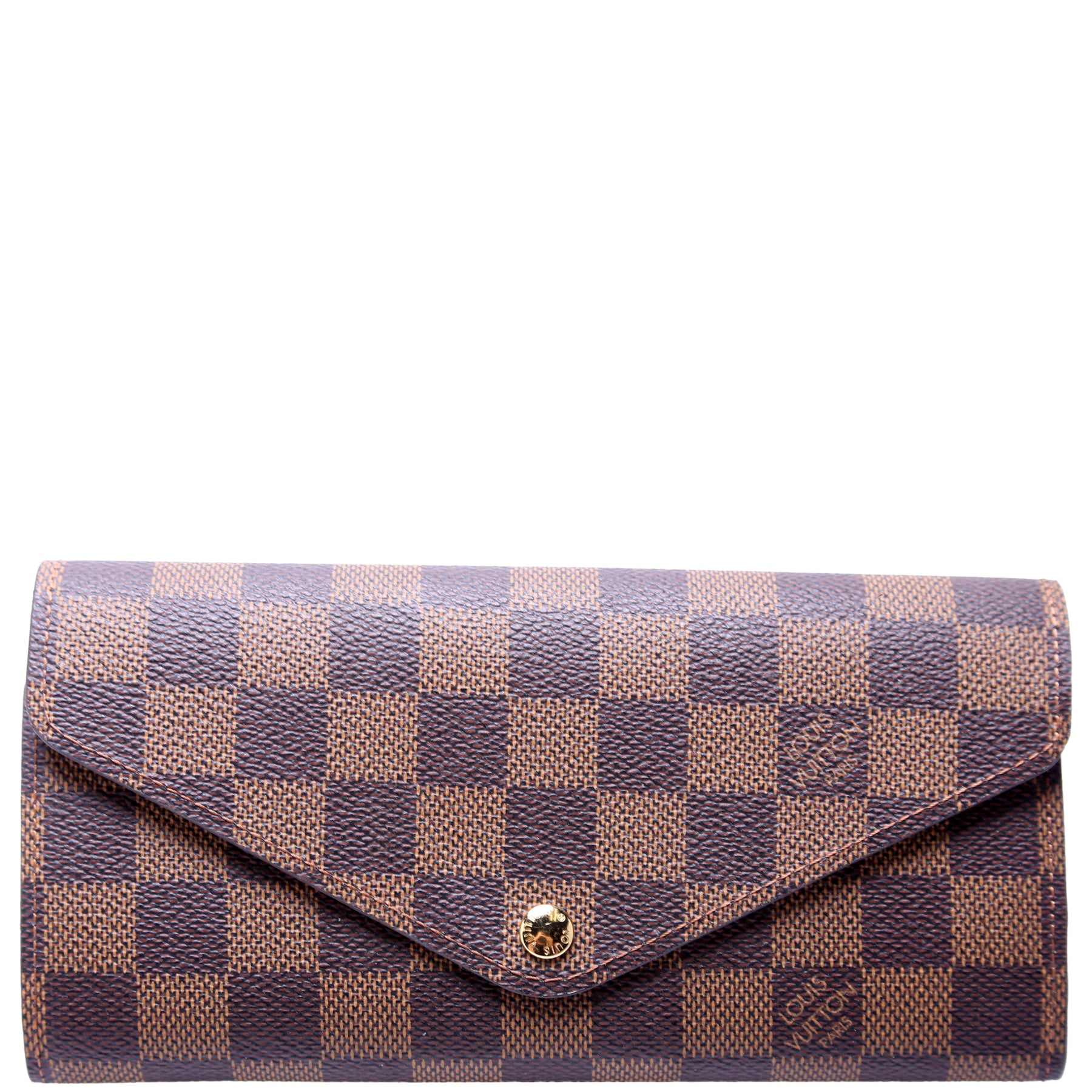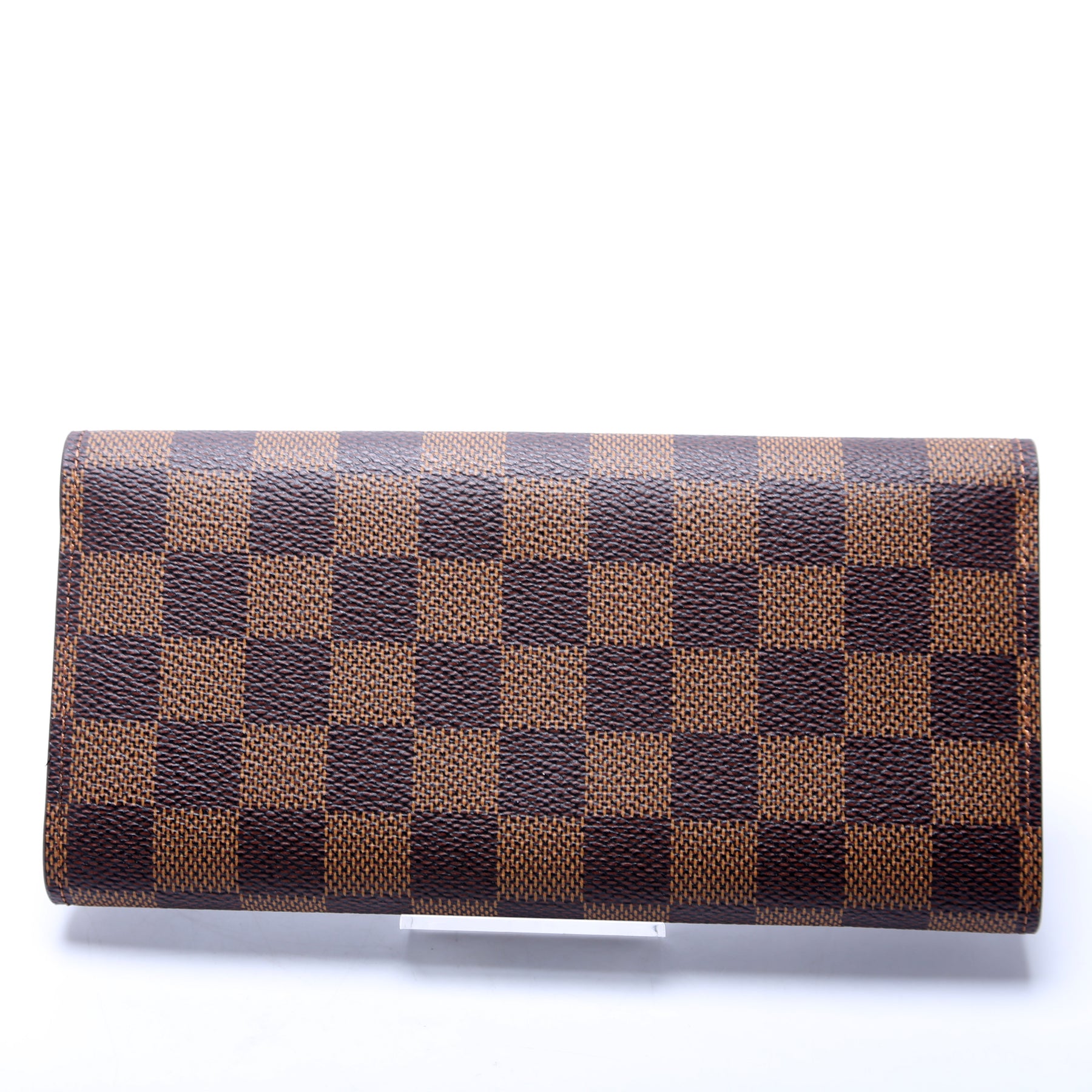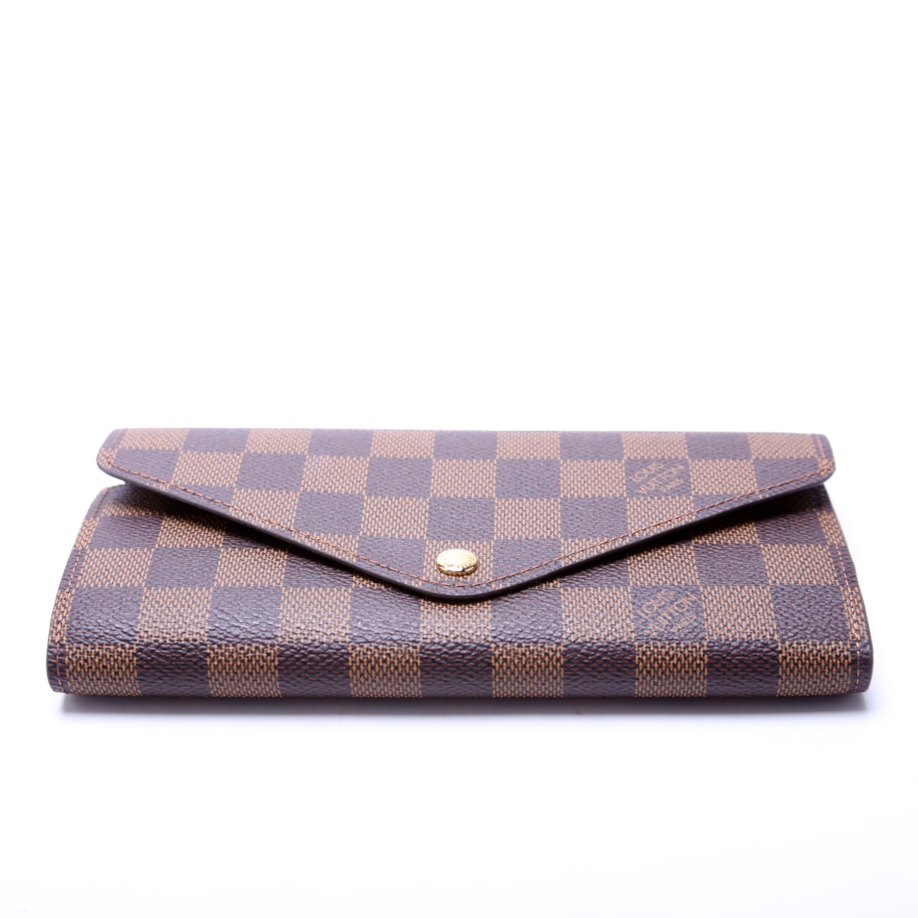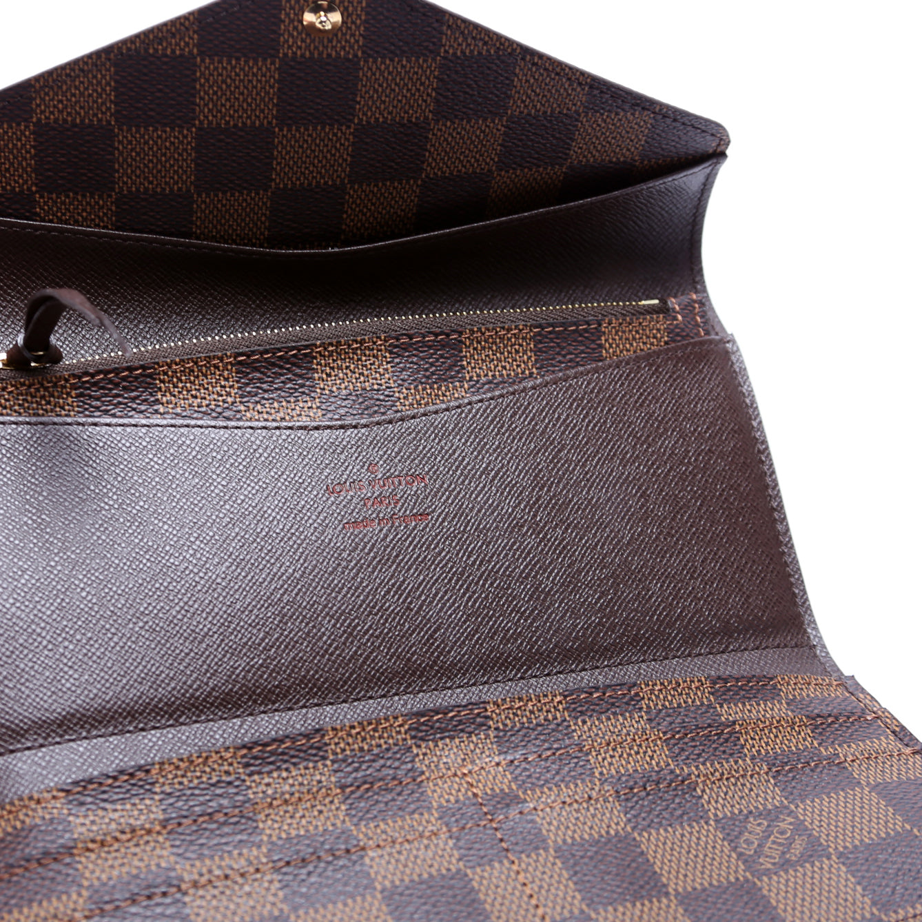 This pre-owned Louis Vuitton Josephine Wallet is guaranteed 100% authentic. The exterior is in the classic Louis Vuitton Damier Ebene coated canvas.