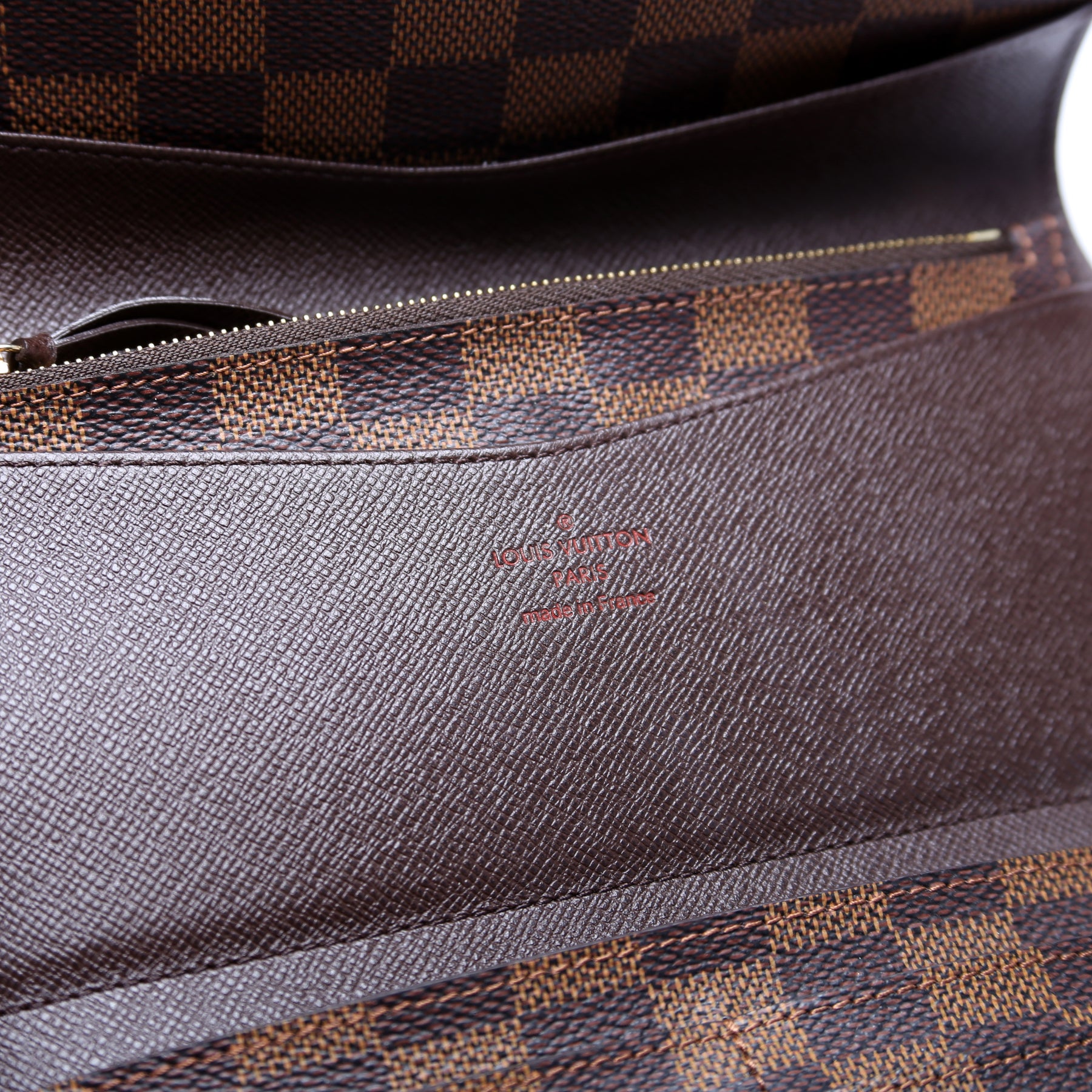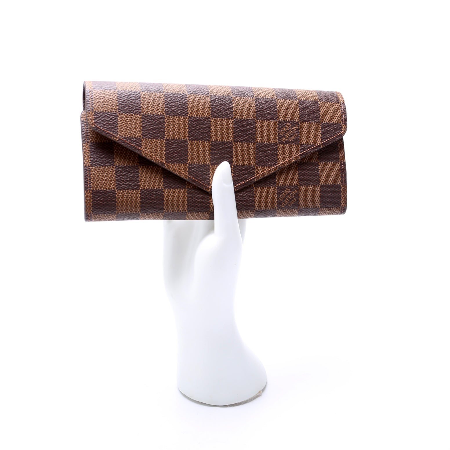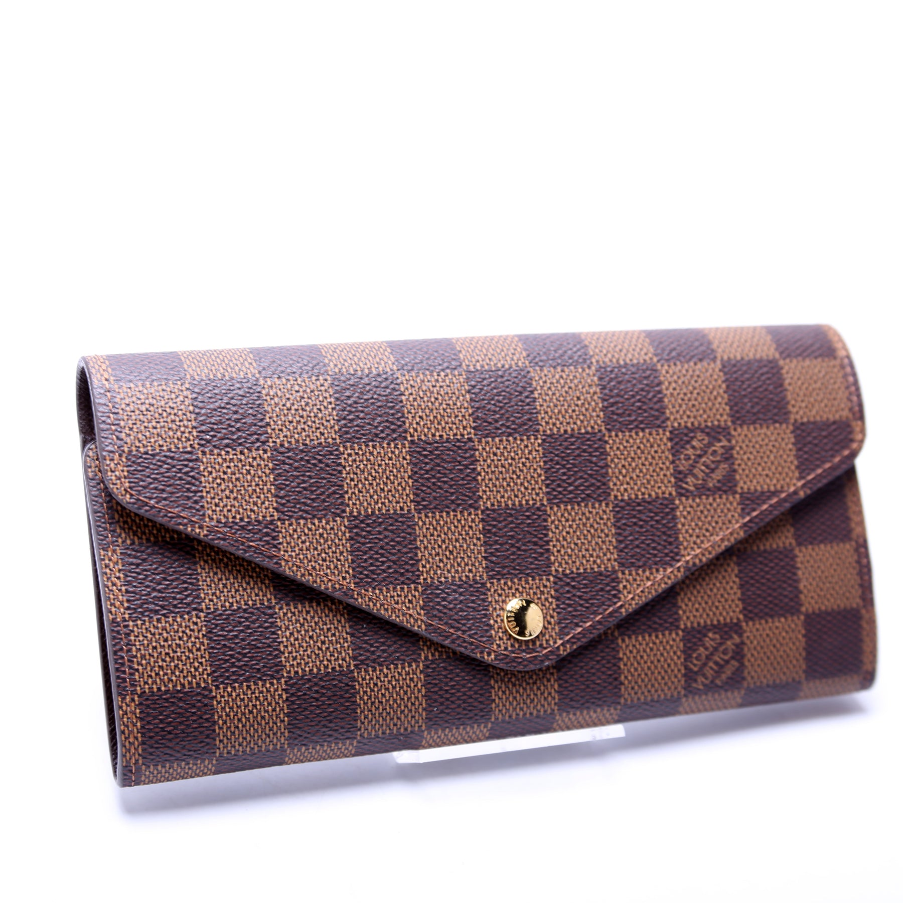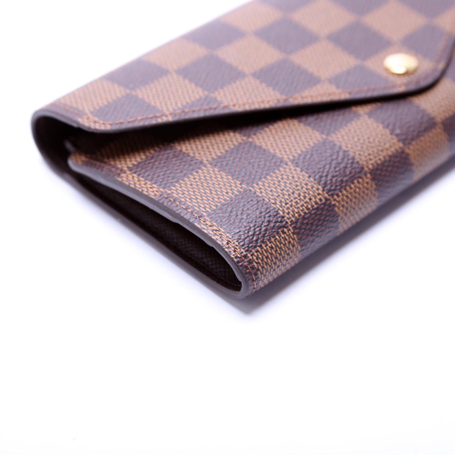 This pre-owned Louis Vuitton Josephine Wallet is guaranteed 100% authentic. The exterior is in the classic Louis Vuitton Damier Ebene coated canvas.