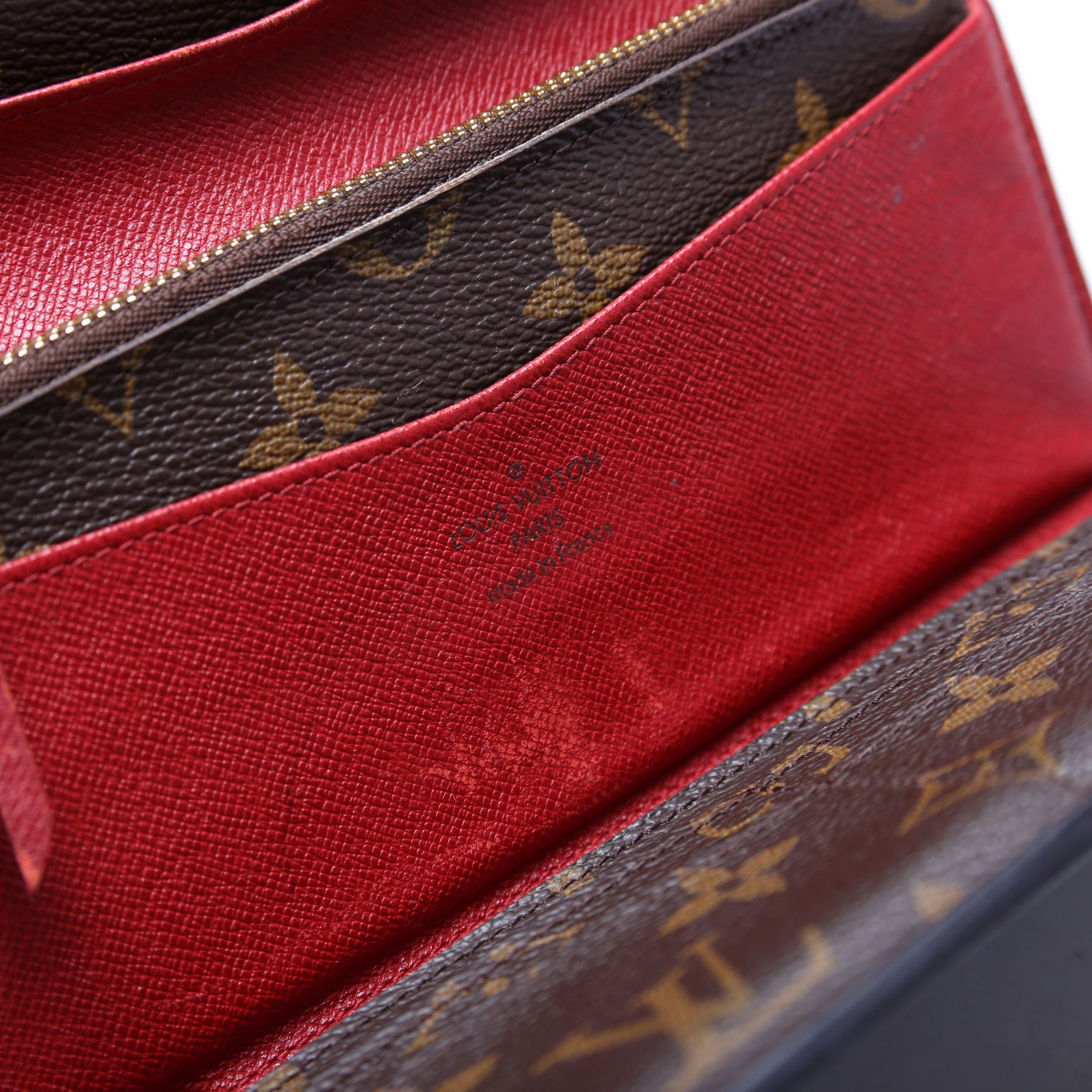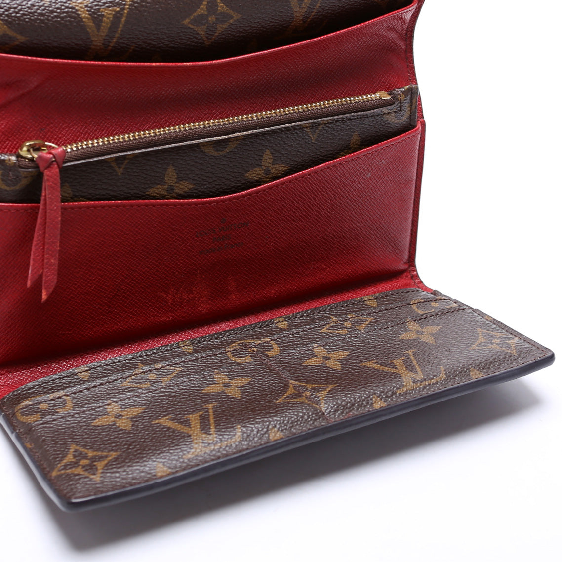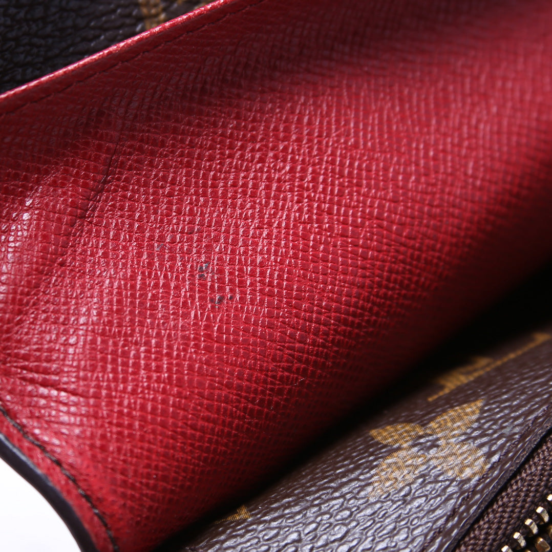 This pre-owned Louis Vuitton Josephine Wallet is guaranteed 100% authentic. The exterior is in the classic Louis Vuitton Monogram coated canvas.
