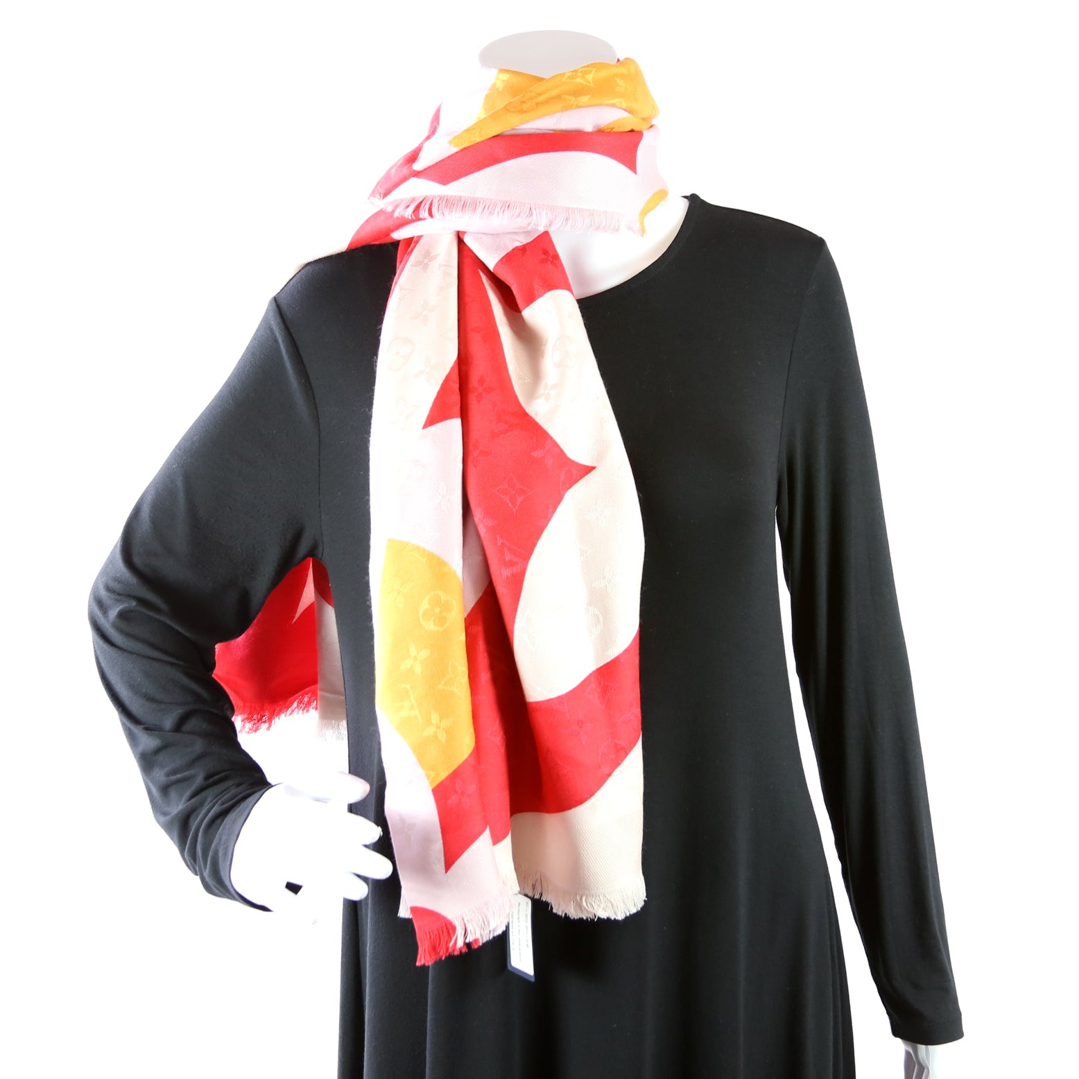 This pre-owned Louis Vuitton Kaleidogram Shawl Silk/Wool Scarf is guaranteed 100% authentic.