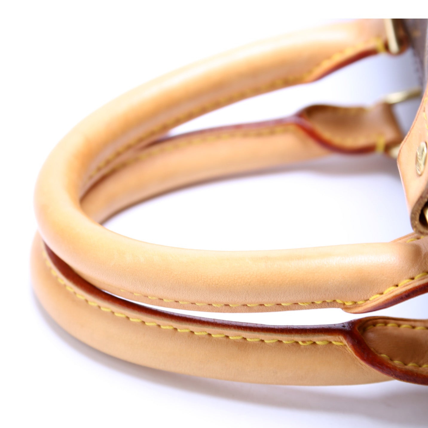 Handle: The leather handles show minor wear and discoloration.