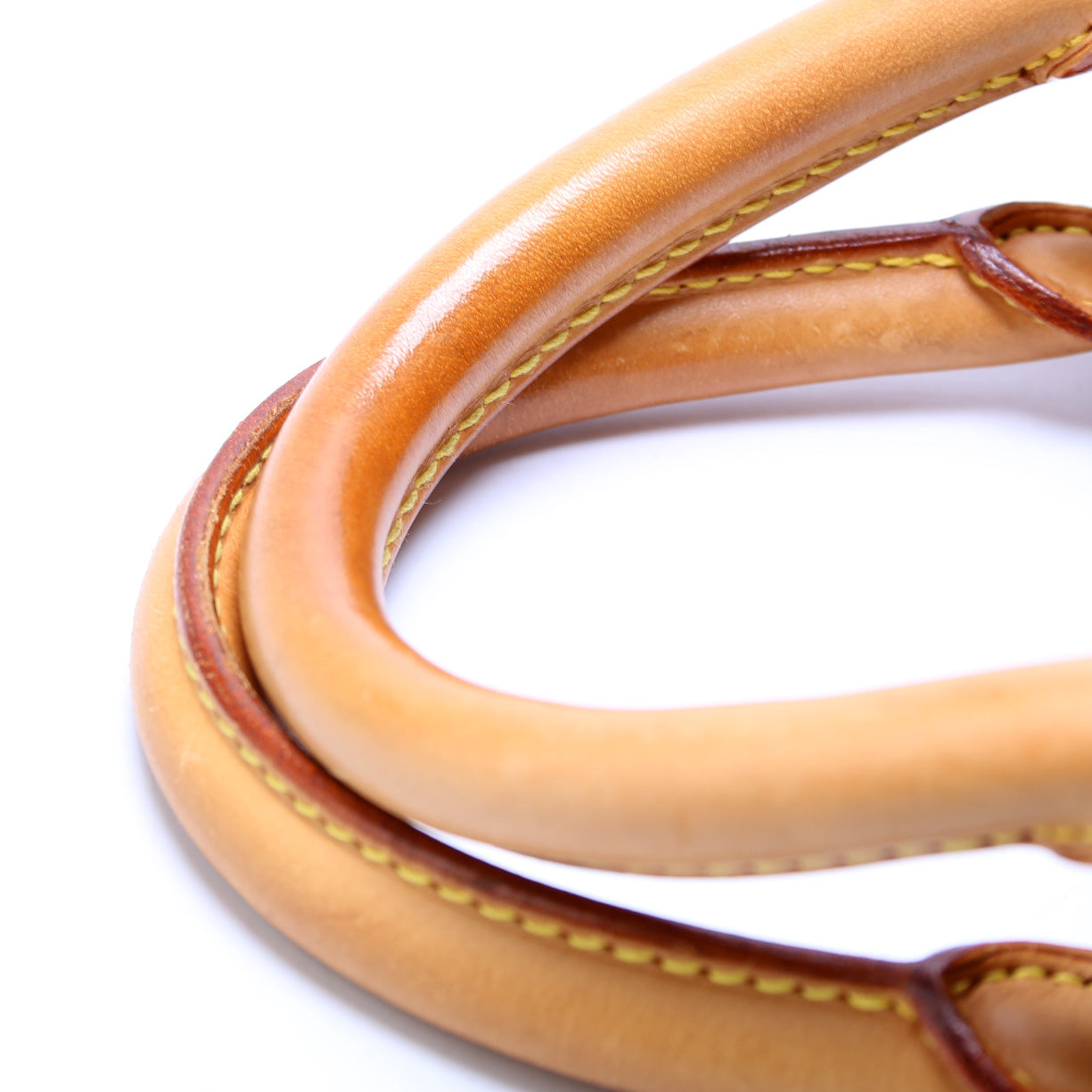 Exterior: The exterior coated canvas is free of any rips or cracks. The corners and leather details show minor wear and discoloration.