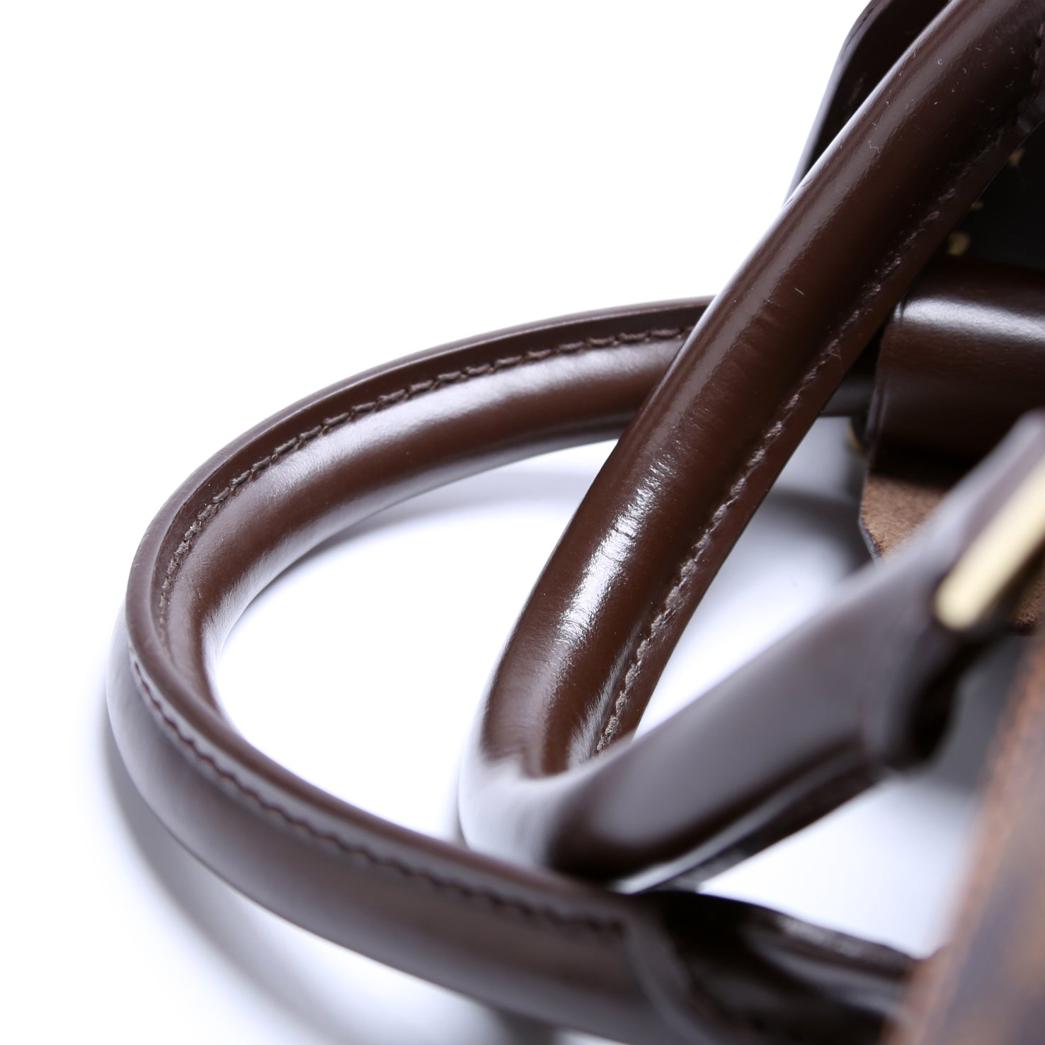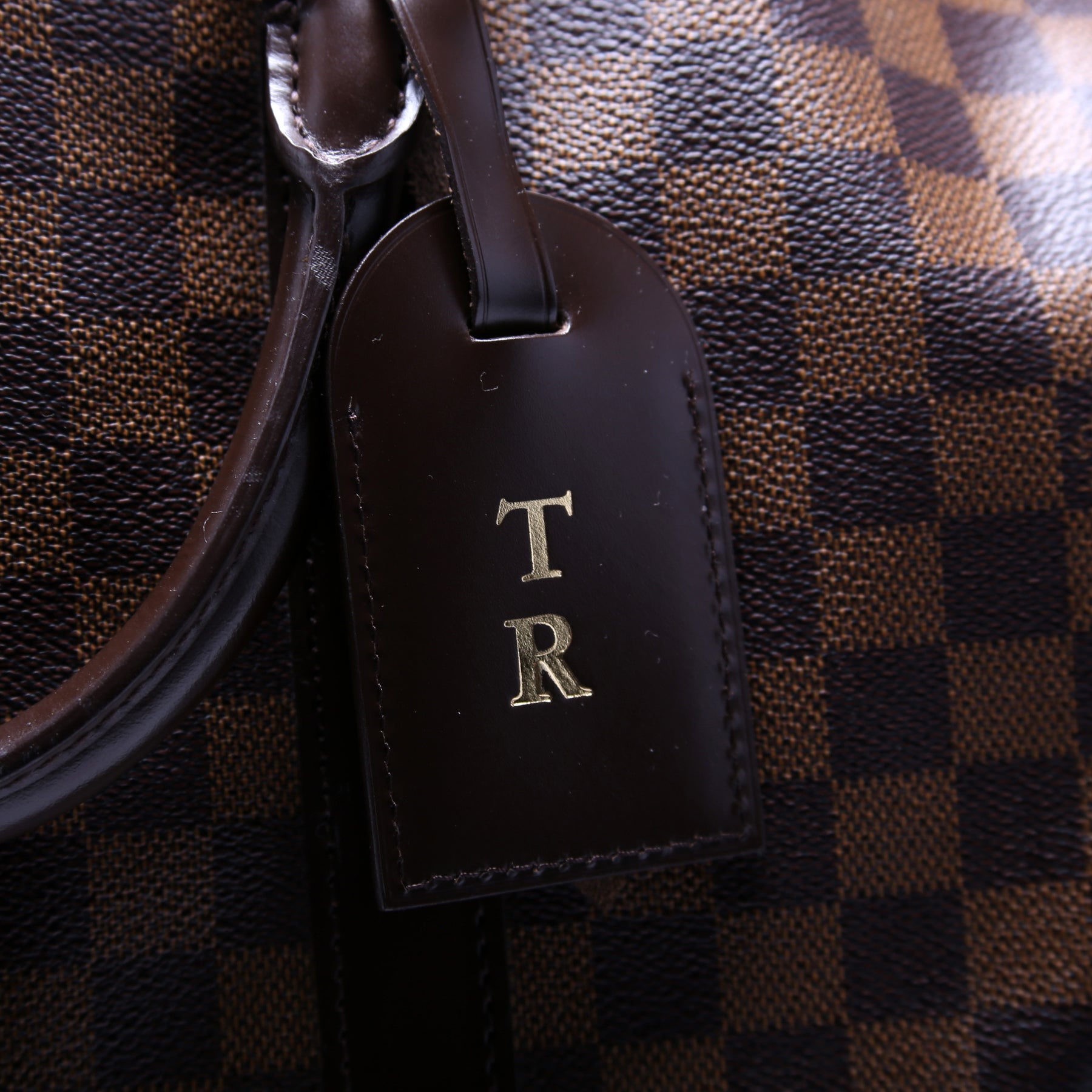 Exterior: The coated canvas is free from major wear. The corners have minor signs of wear. There is a monogrammed heat stamp 'TR' on the luggage tag as pictured.