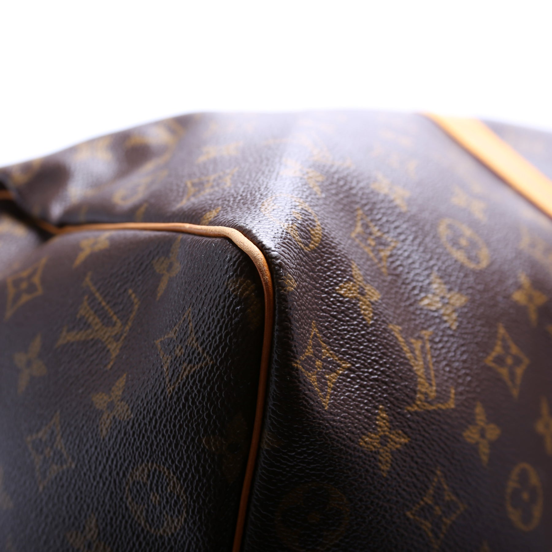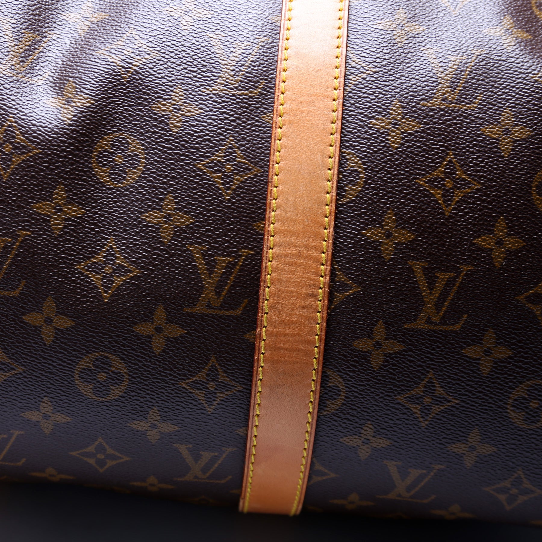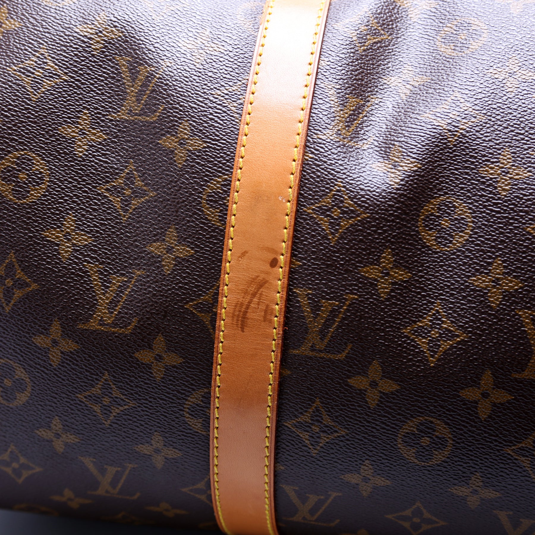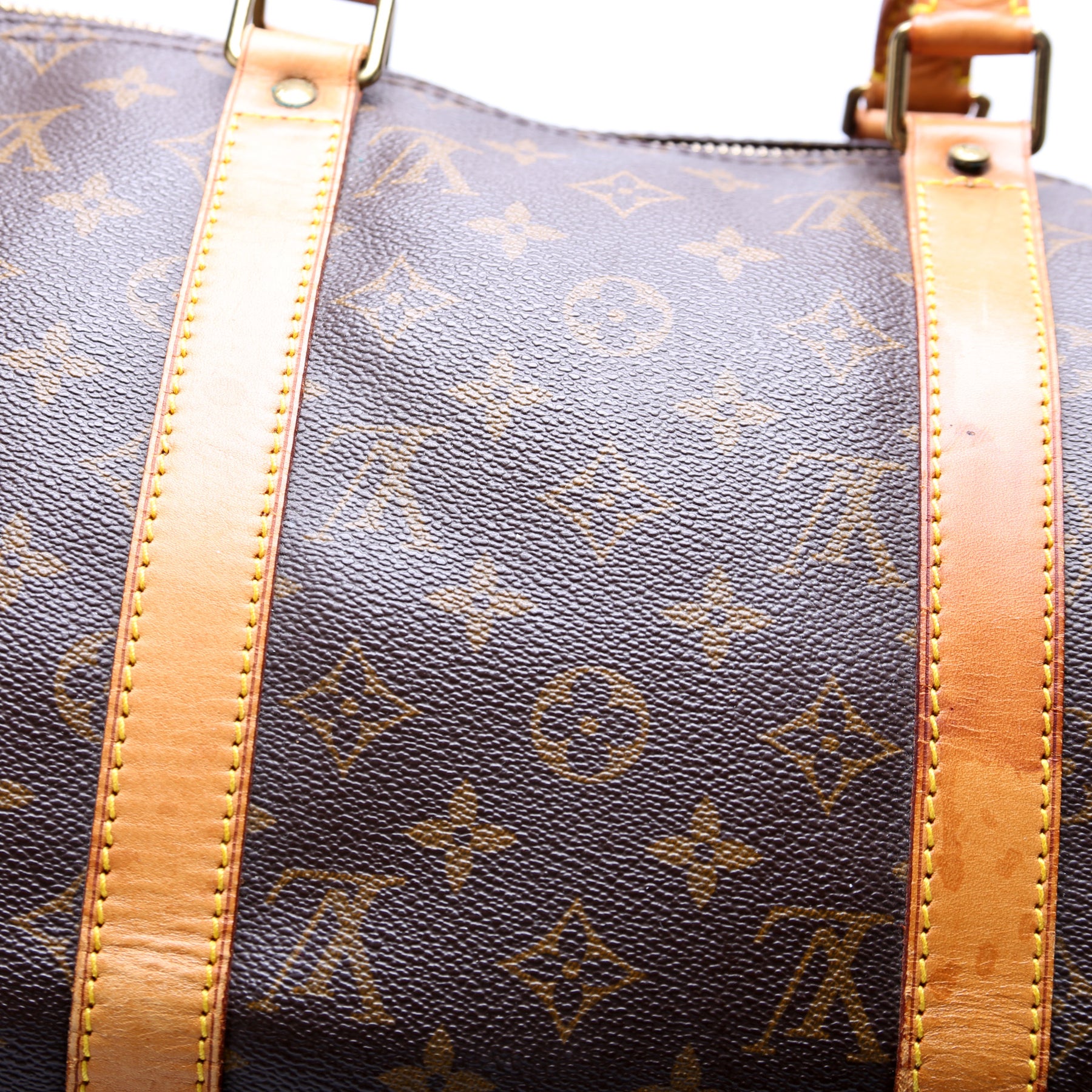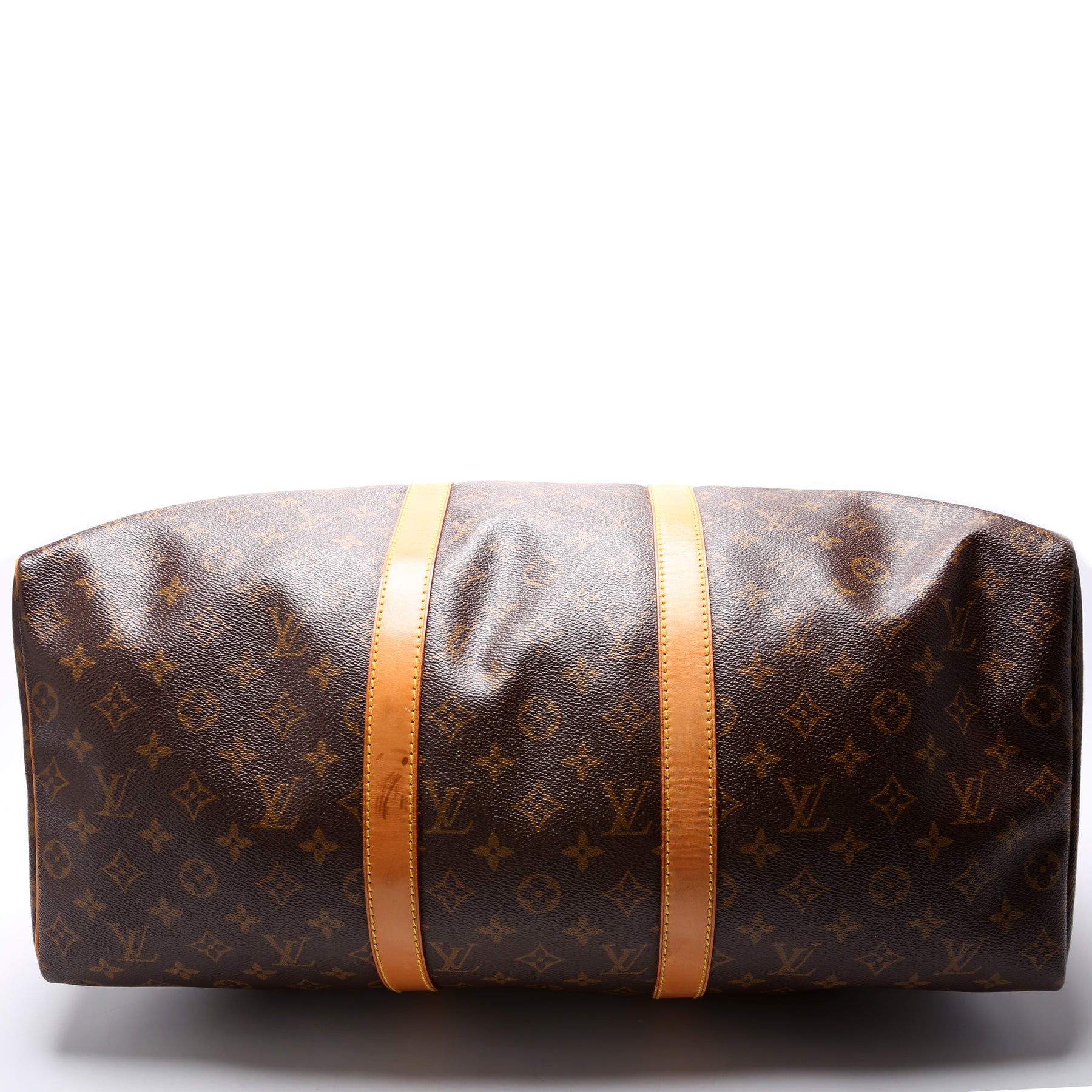 This pre-owned Louis Vuitton Keepall 50 is guaranteed 100% authentic. The exterior is in the classic Louis Vuitton Monogram coated canvas.