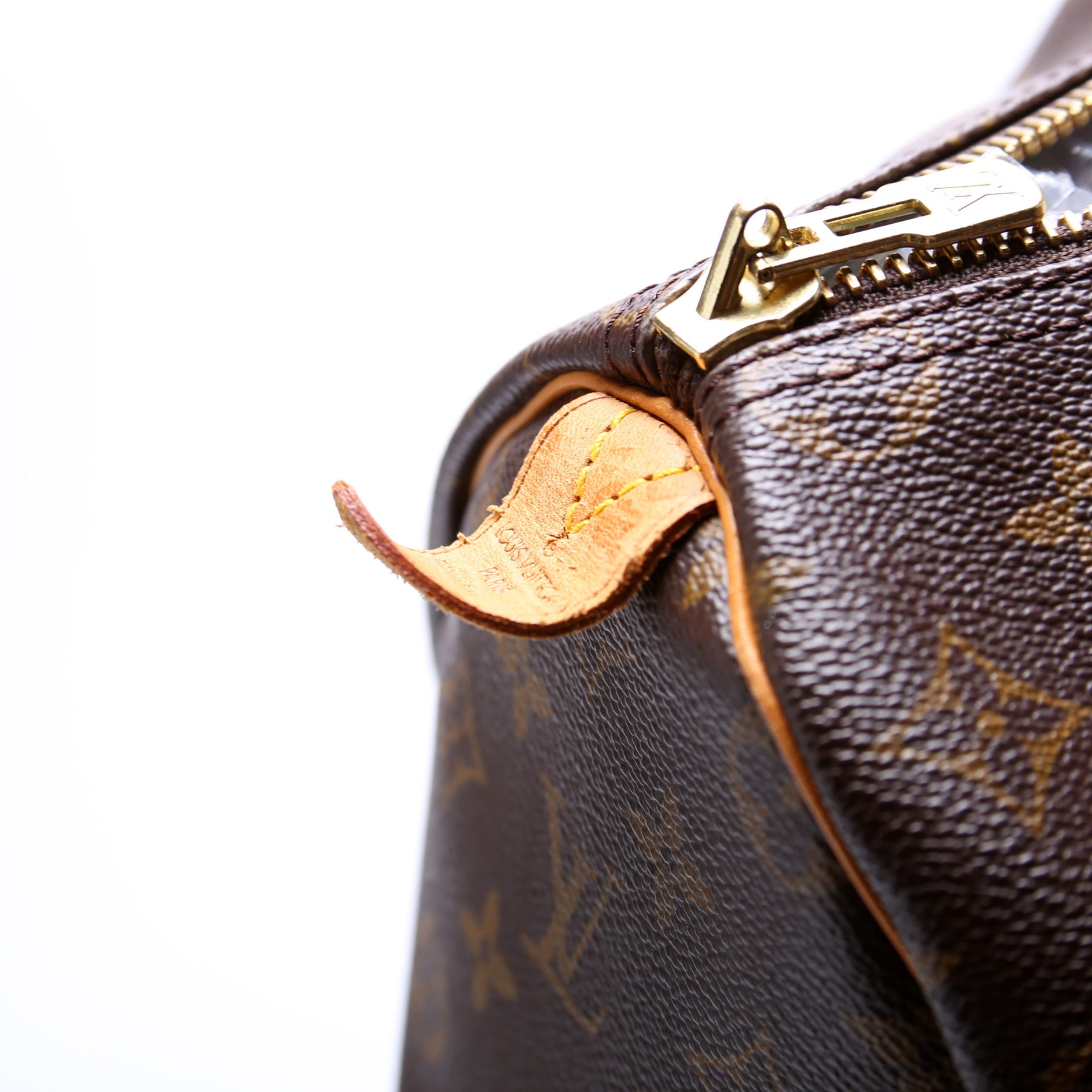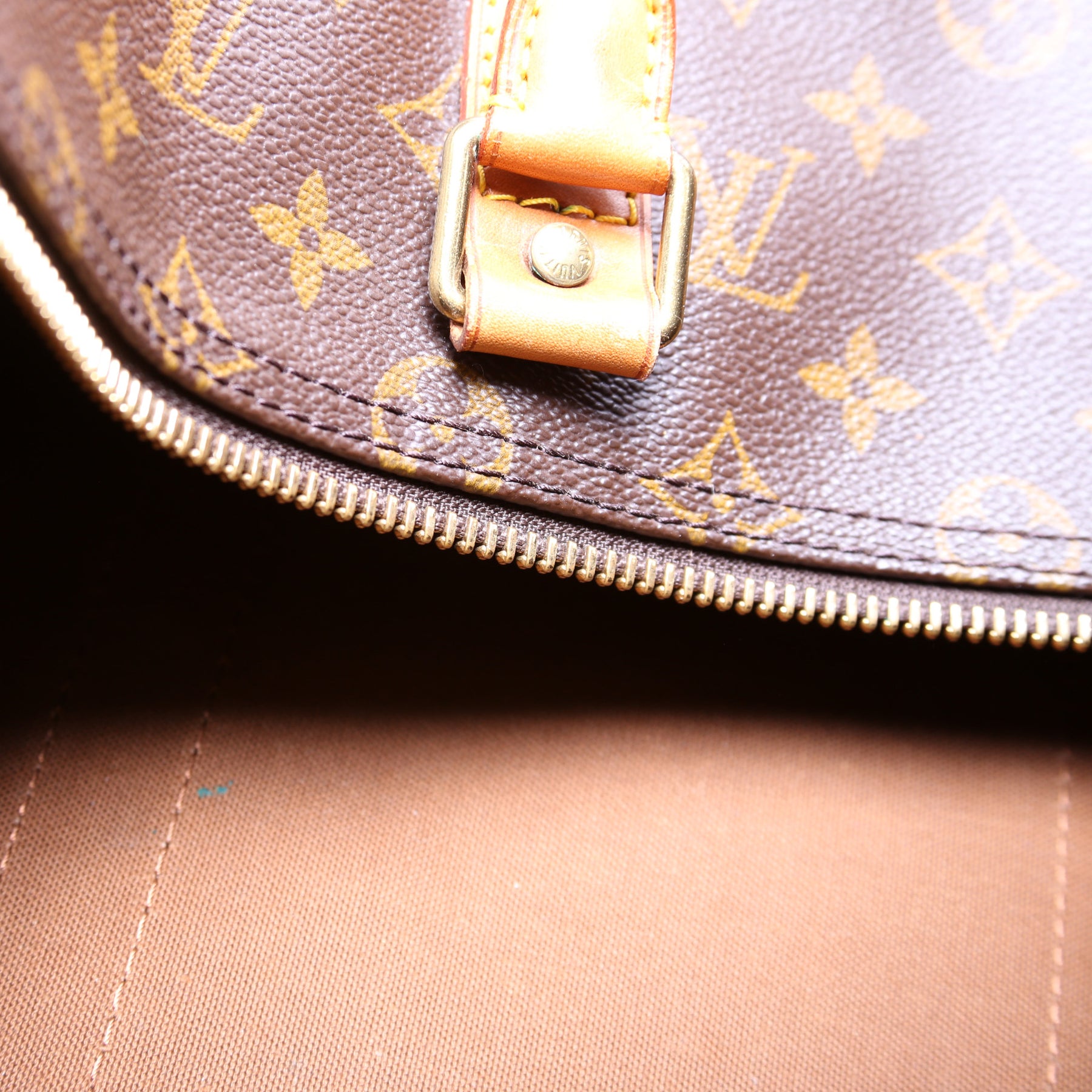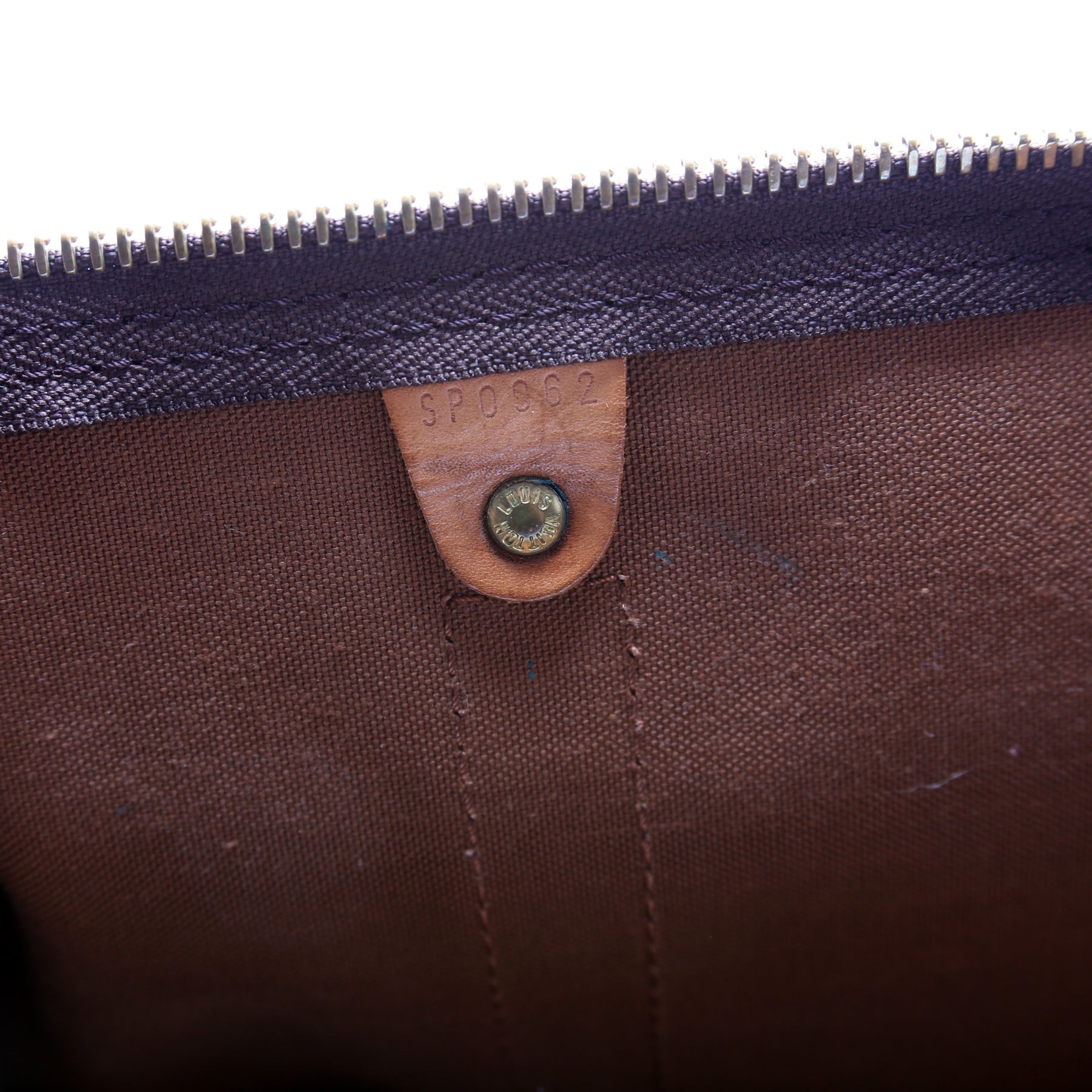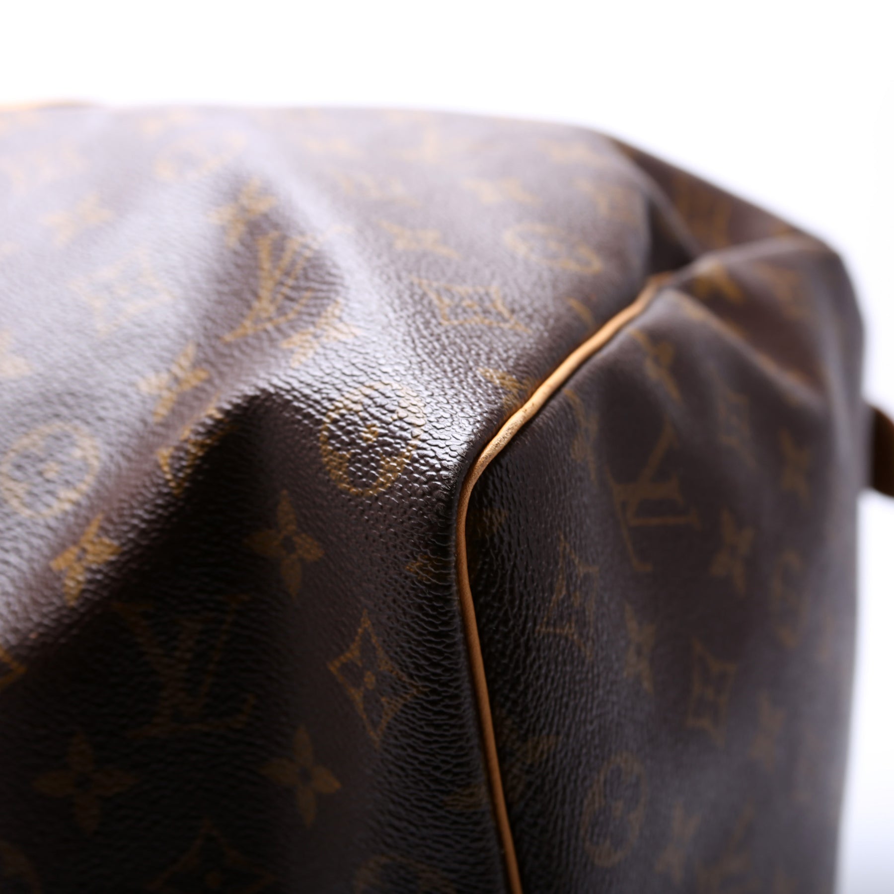 This pre-owned Louis Vuitton Keepall 50 is guaranteed 100% authentic. The exterior is in the classic Louis Vuitton Monogram coated canvas.