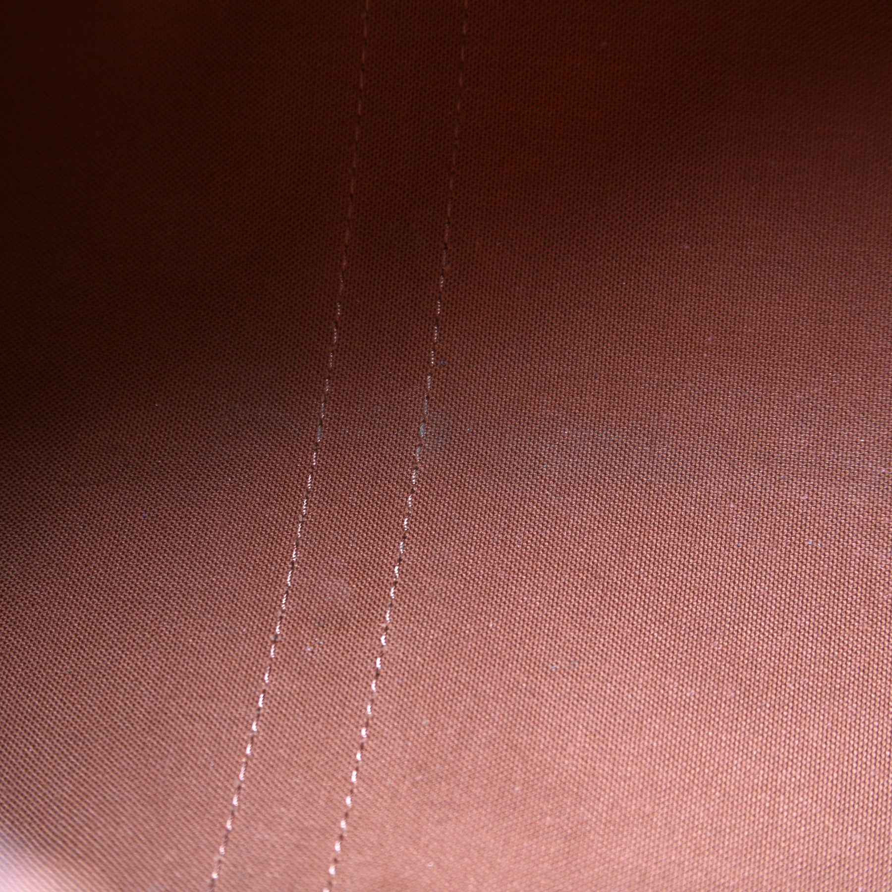 Exterior: The exterior coated canvas is free of any rips or cracks. The leather details show wear and discoloration throughout.