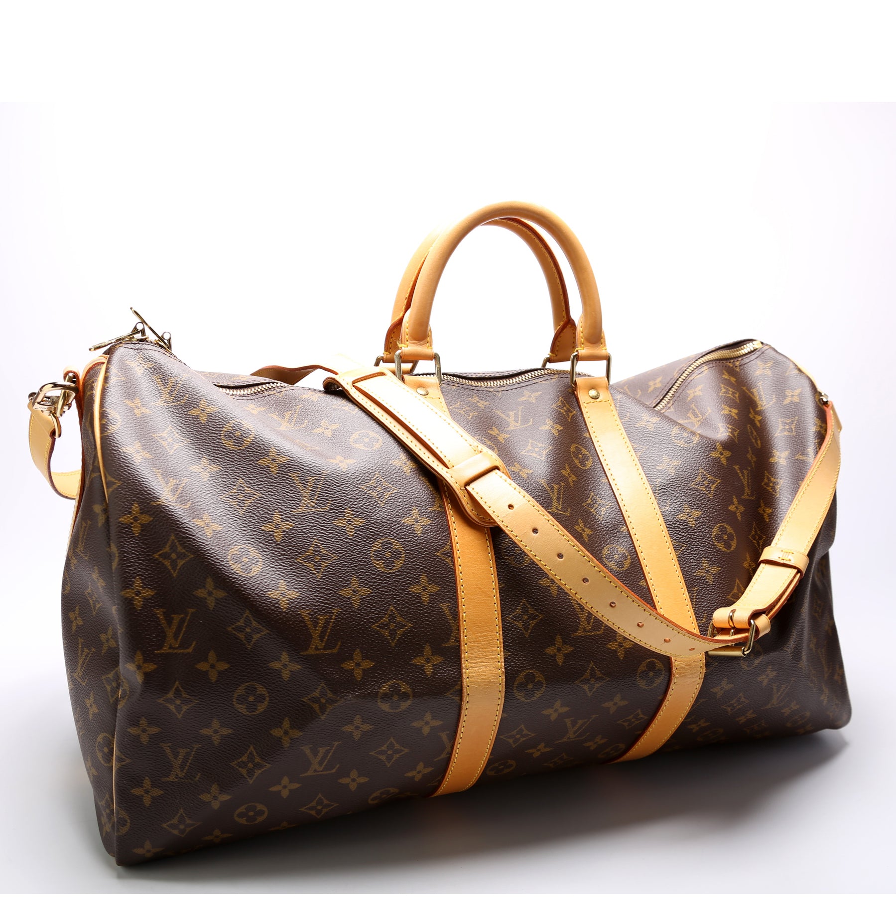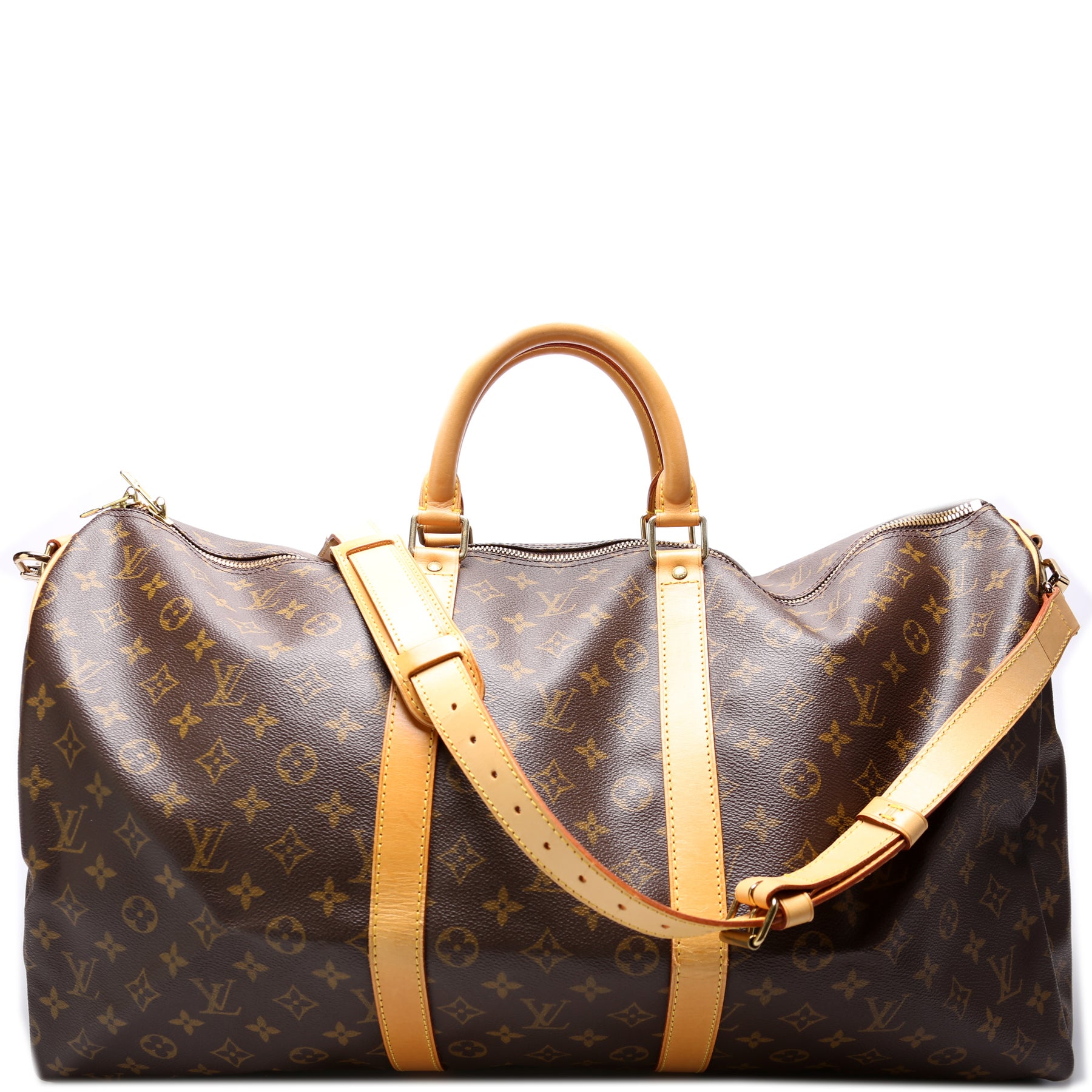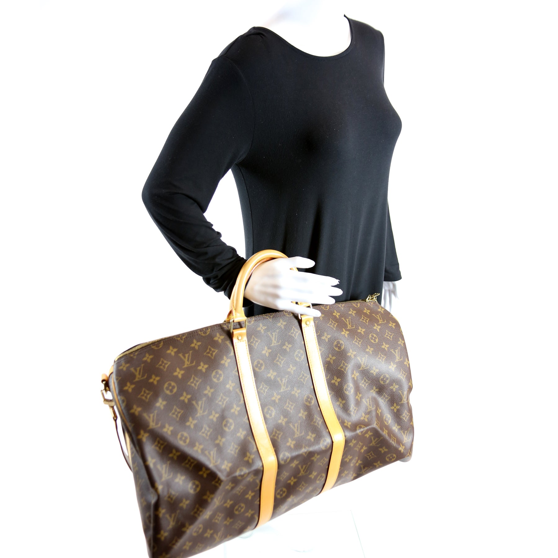 This pre-owned Louis Vuitton Keepall 55 Bandouliere without Strap is guaranteed 100% authentic. The exterior is in the classic Louis Vuitton Monogram coated canvas.