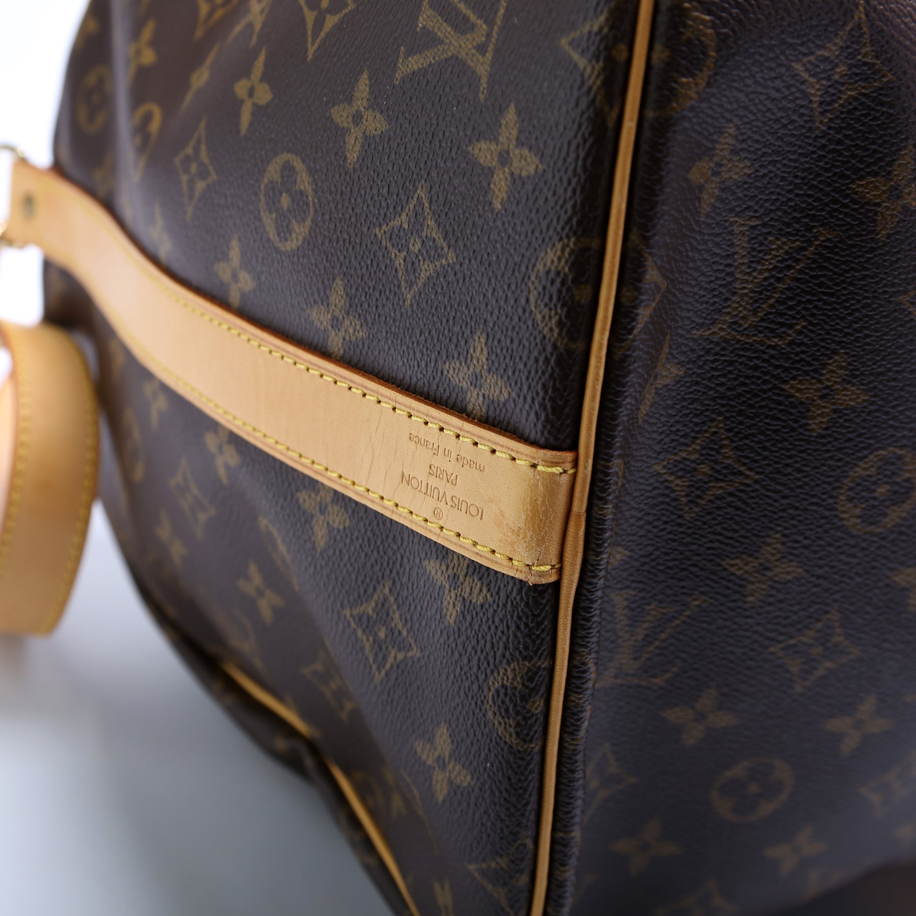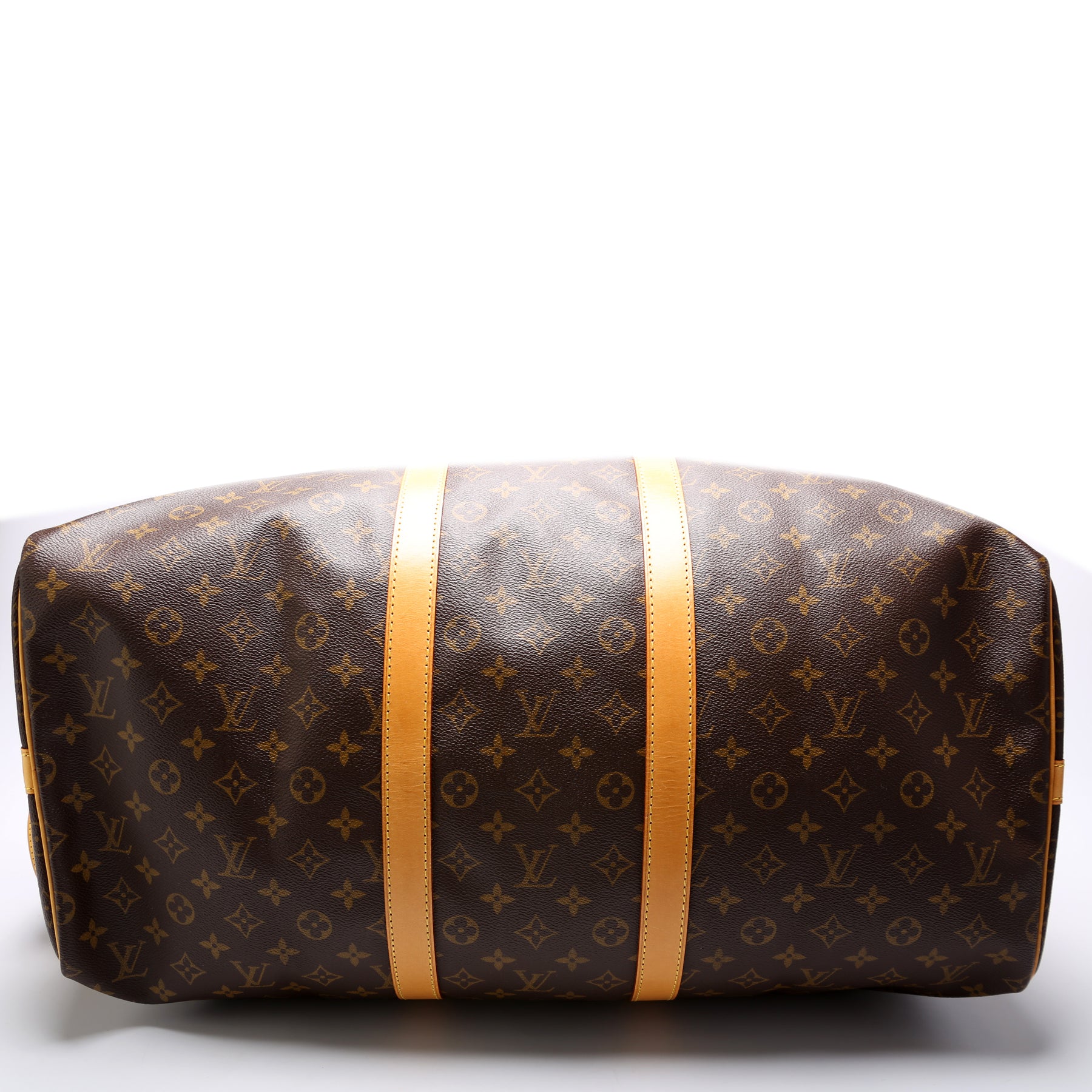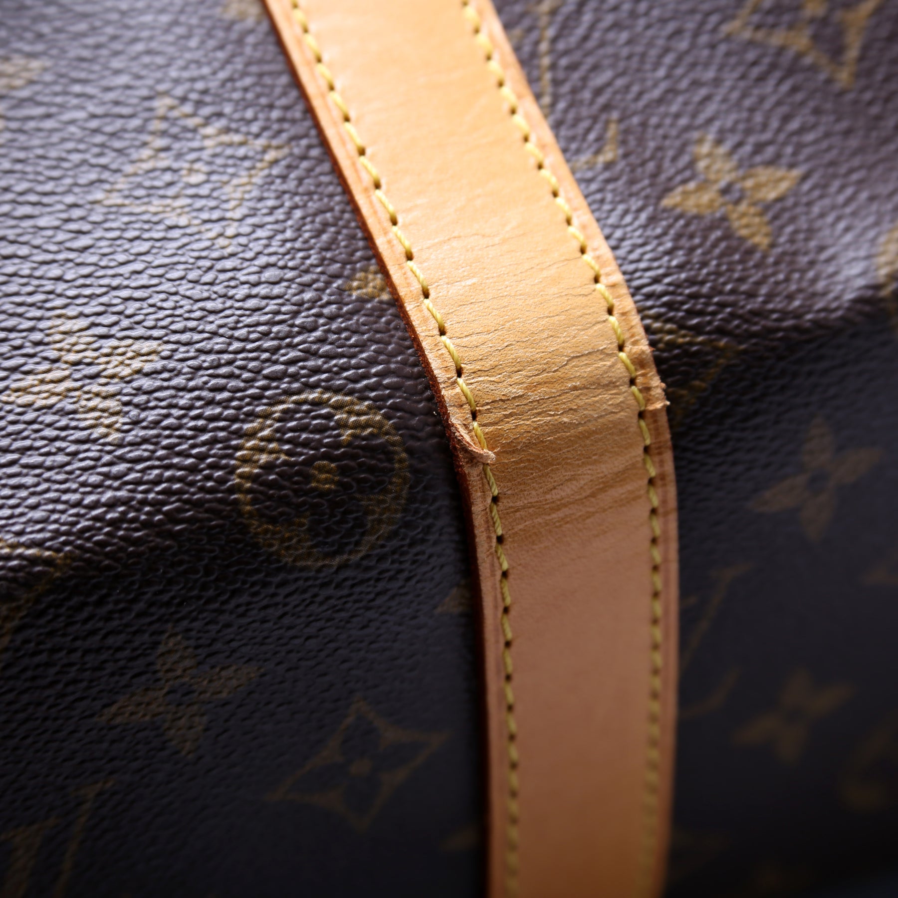 This pre-owned Louis Vuitton Keepall 55 Bandouliere without Strap is guaranteed 100% authentic. The exterior is in the classic Louis Vuitton Monogram coated canvas.