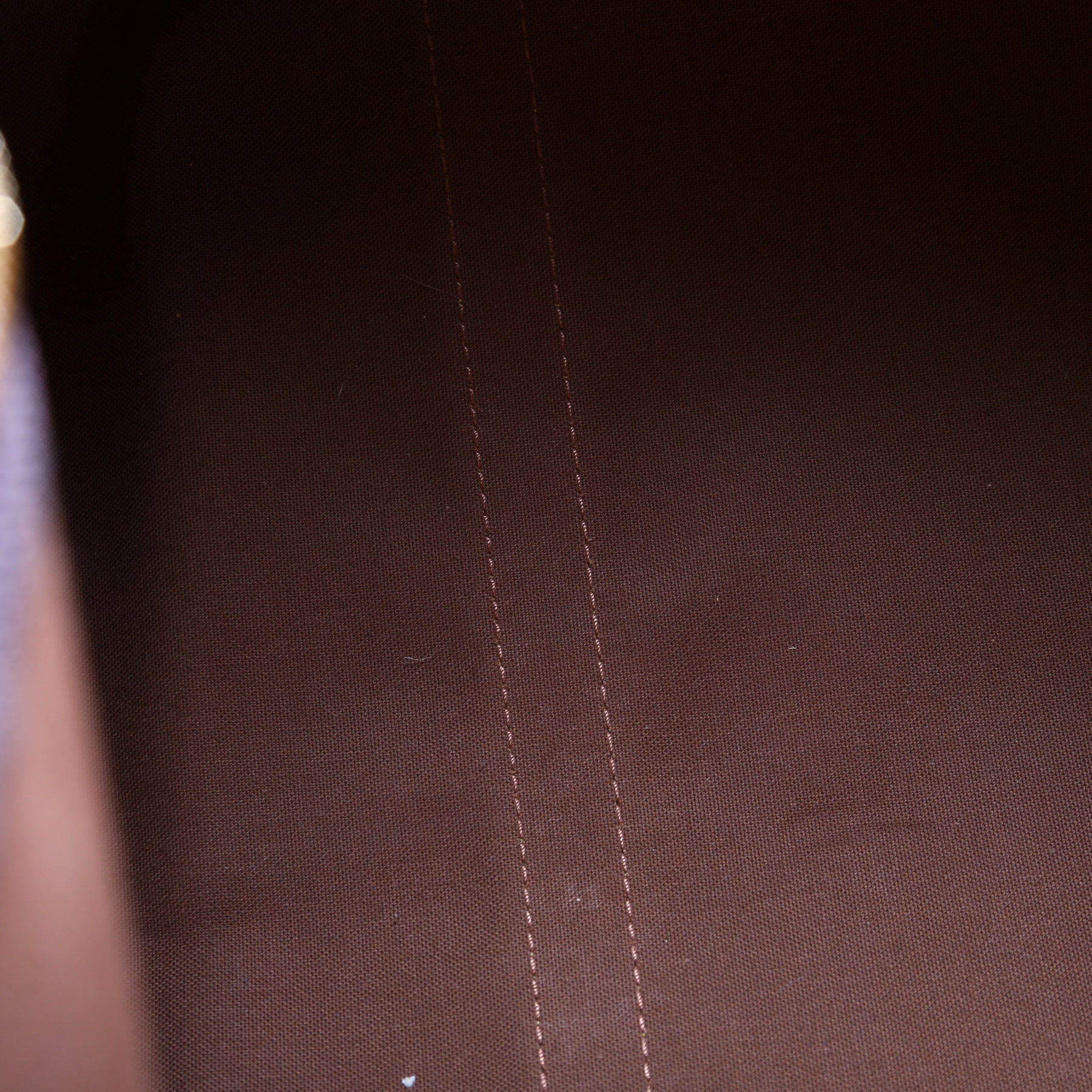 Exterior: The exterior coated canvas is free of any rips or cracks. The leather trim shows minor cracks and wear throughout.
