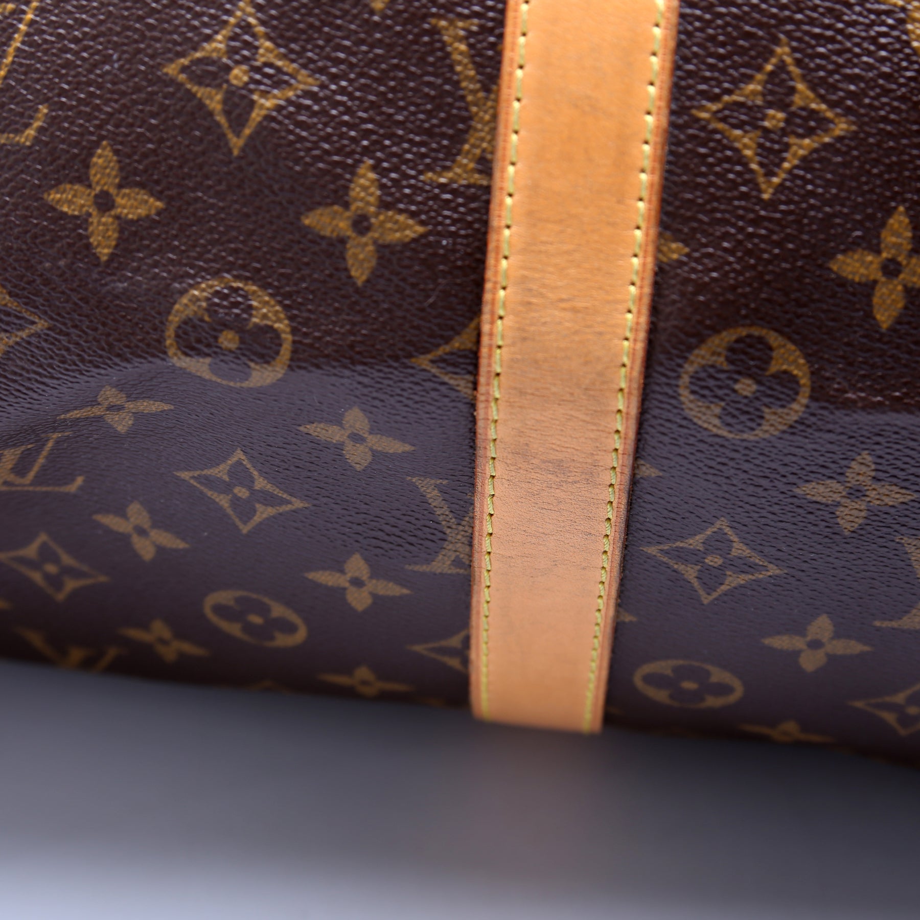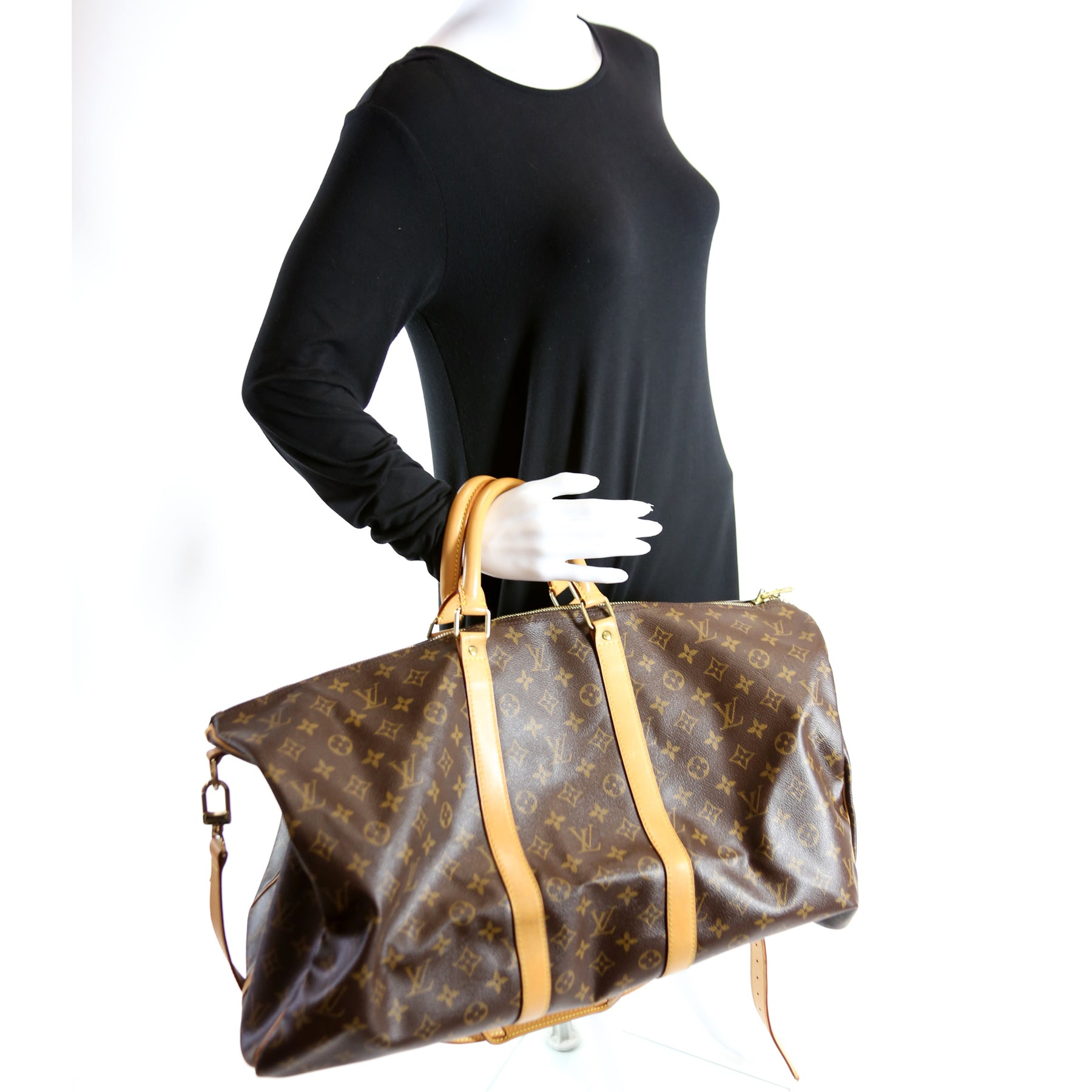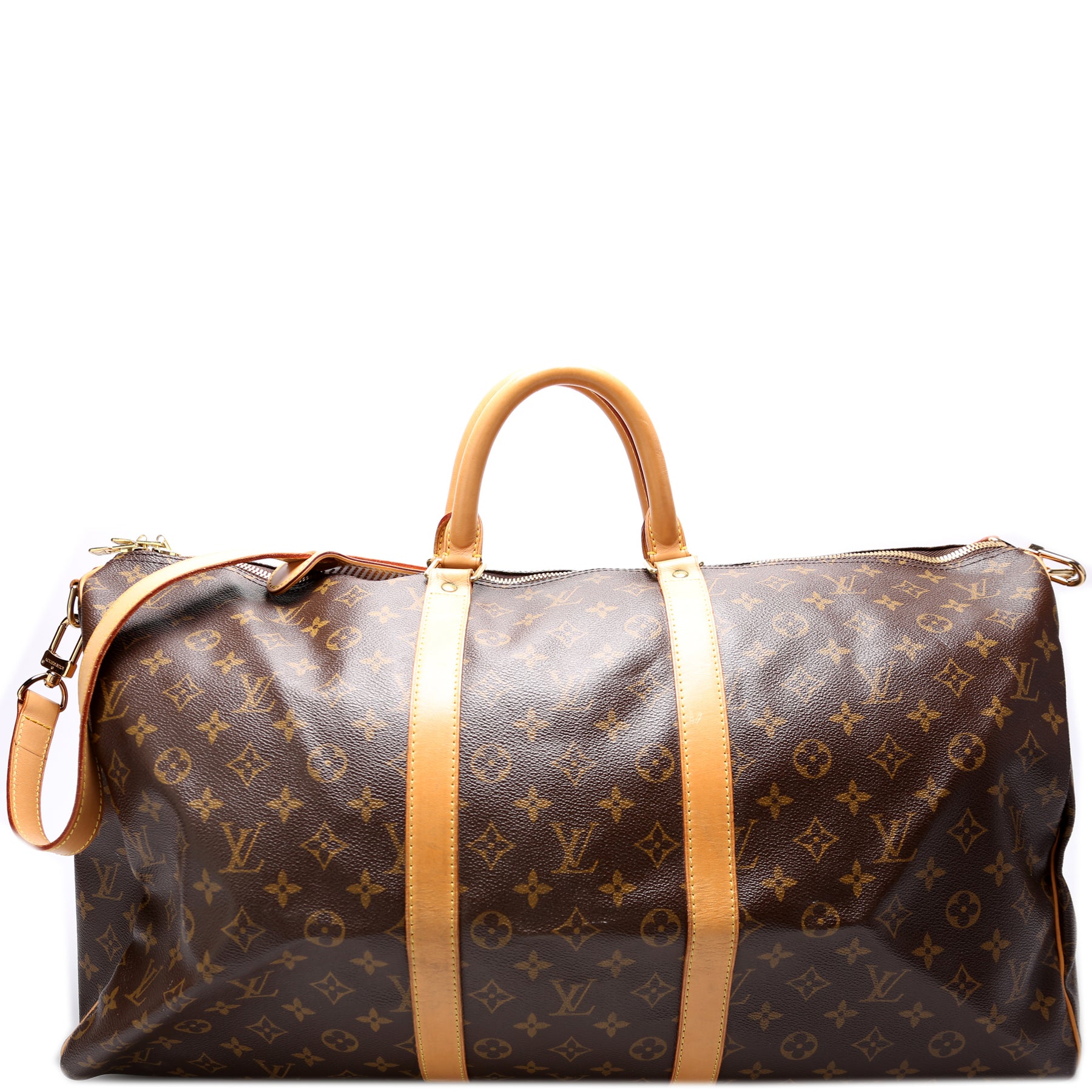 This pre-owned Louis Vuitton Keepall 55 Bandouliere without Strap is guaranteed 100% authentic. The exterior is in the classic Louis Vuitton Monogram coated canvas.